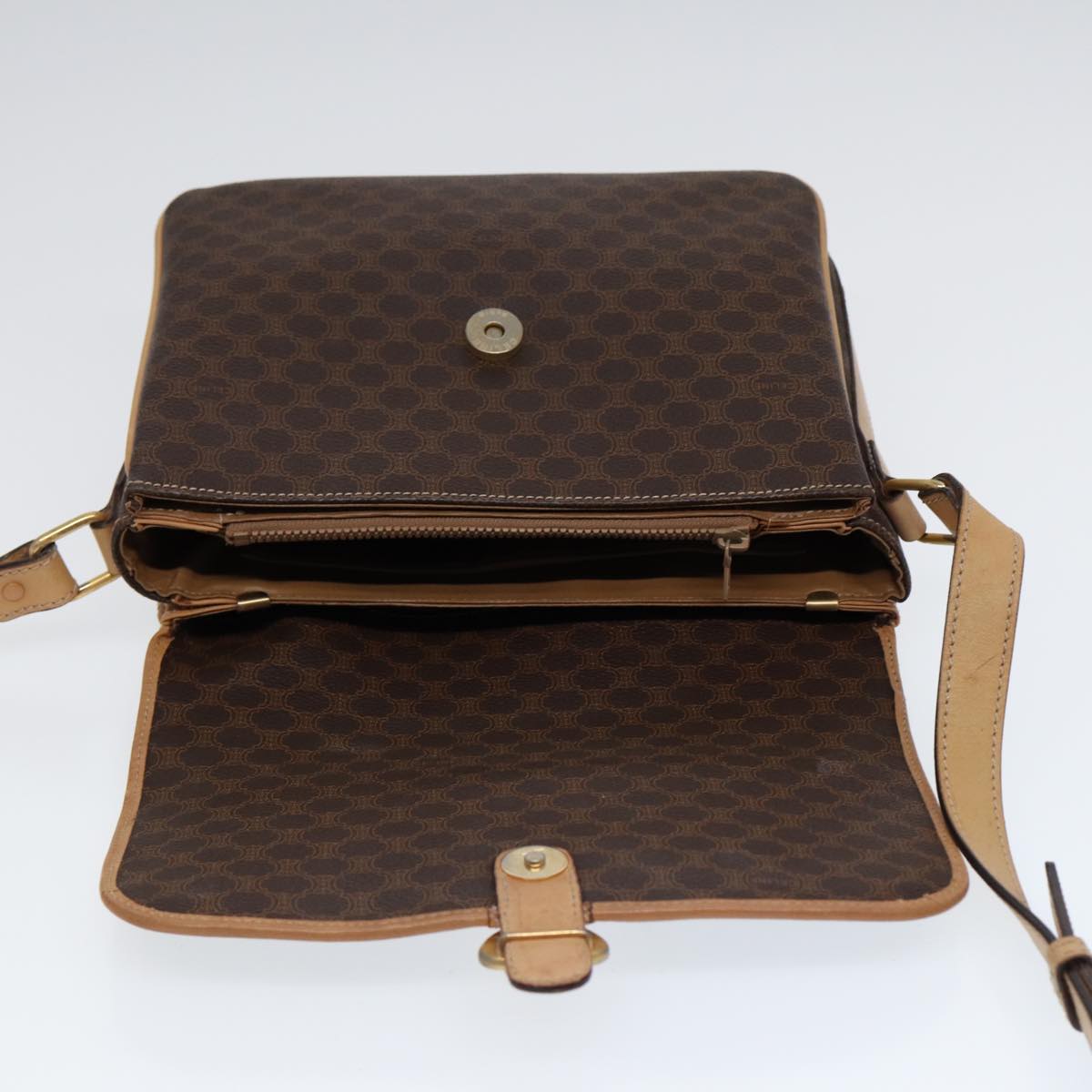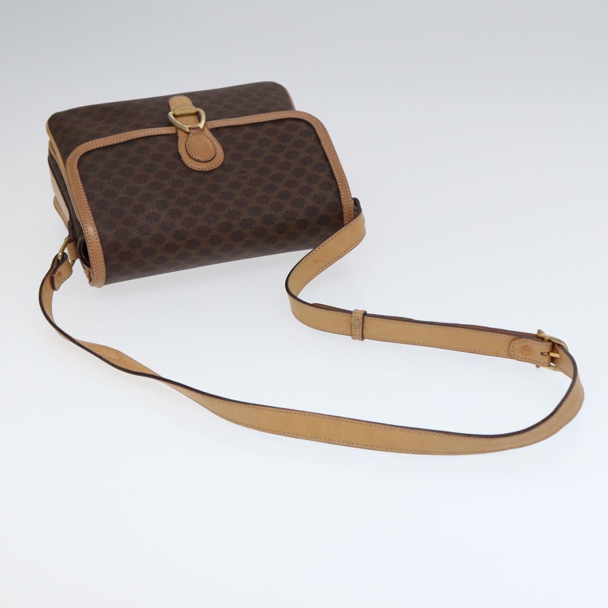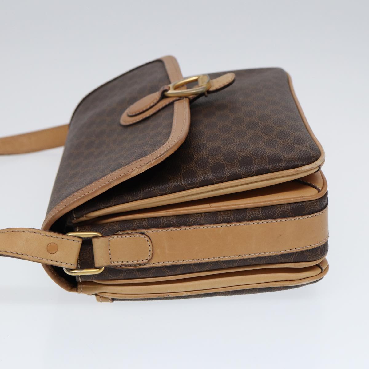 CELINE Macadam Canvas Shoulder Bag PVC Leather Brown Gold Auth bs17401