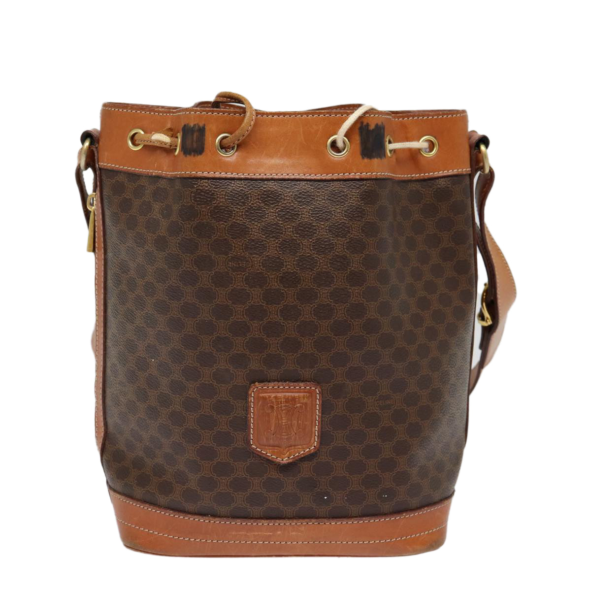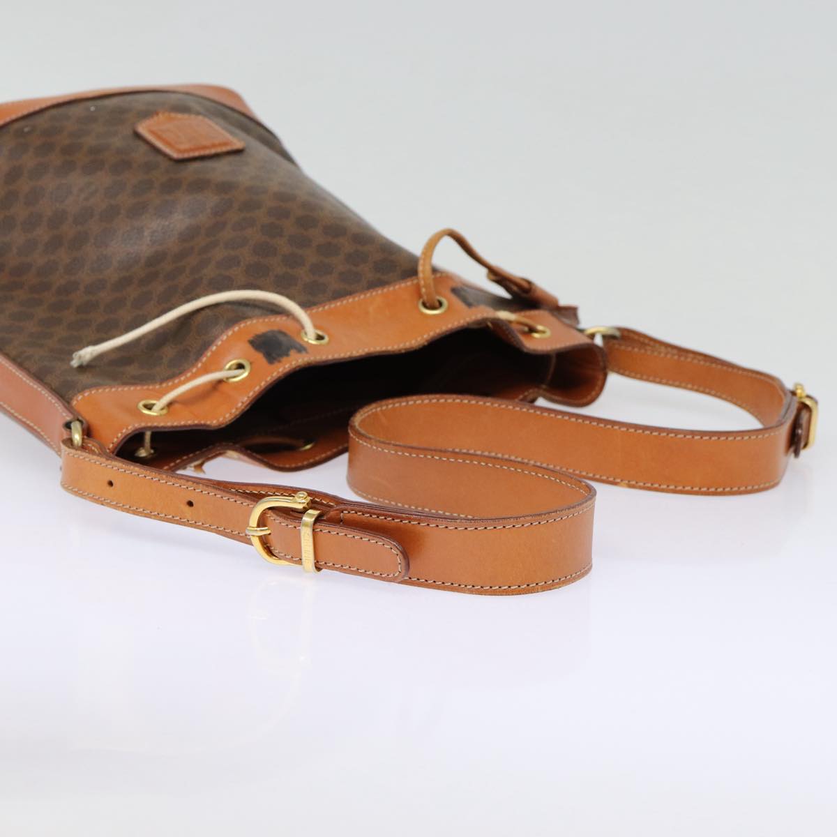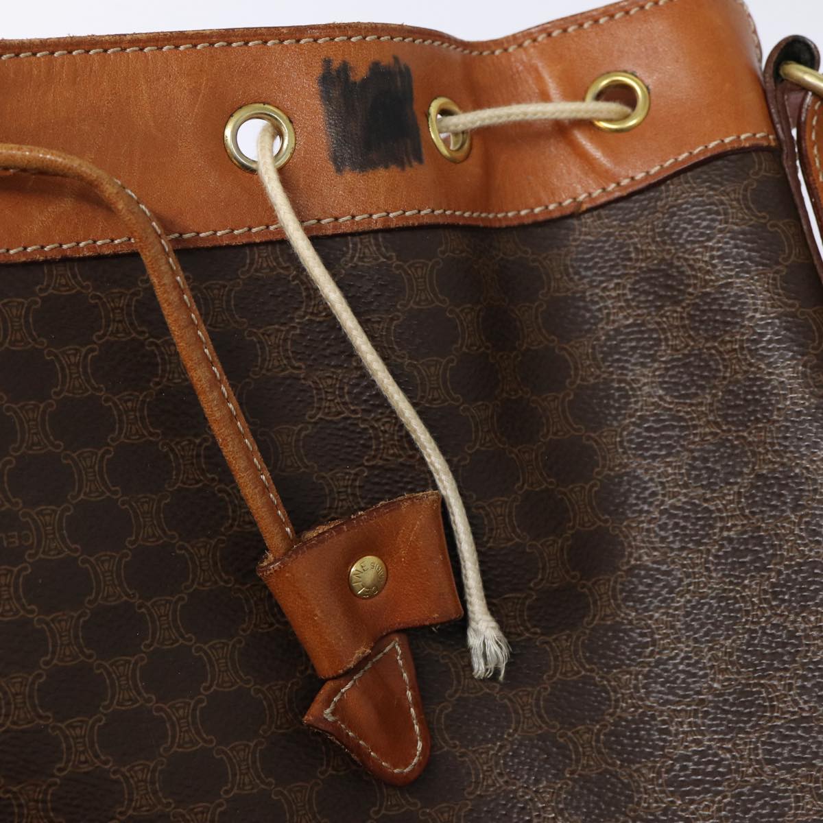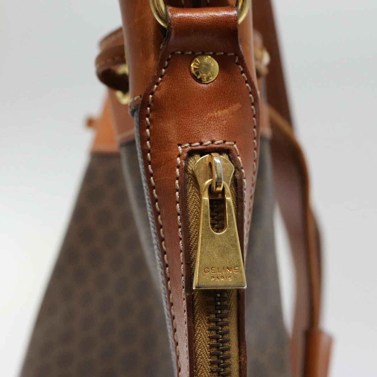 CELINE Macadam Canvas Shoulder Bag PVC Leather Brown Gold Auth mr436