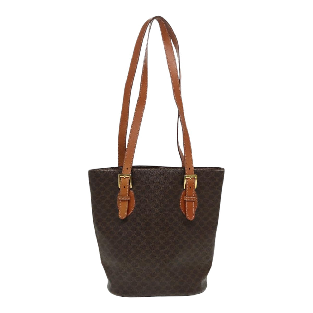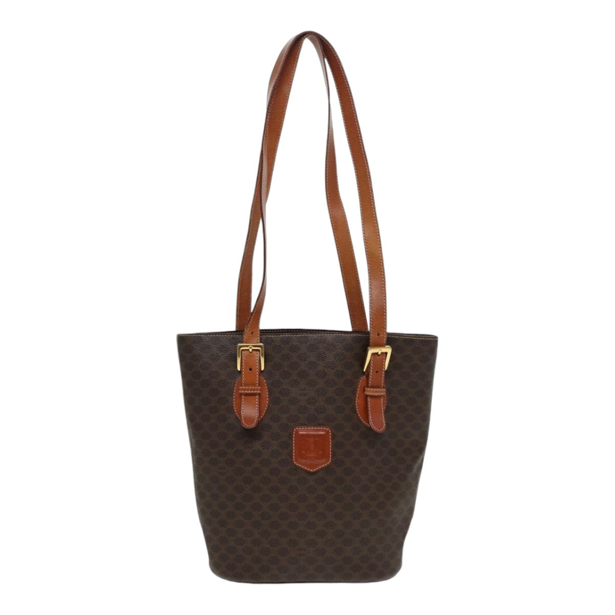 CELINE Macadam Canvas Shoulder Bag PVC Leather Brown Gold Auth yk14269