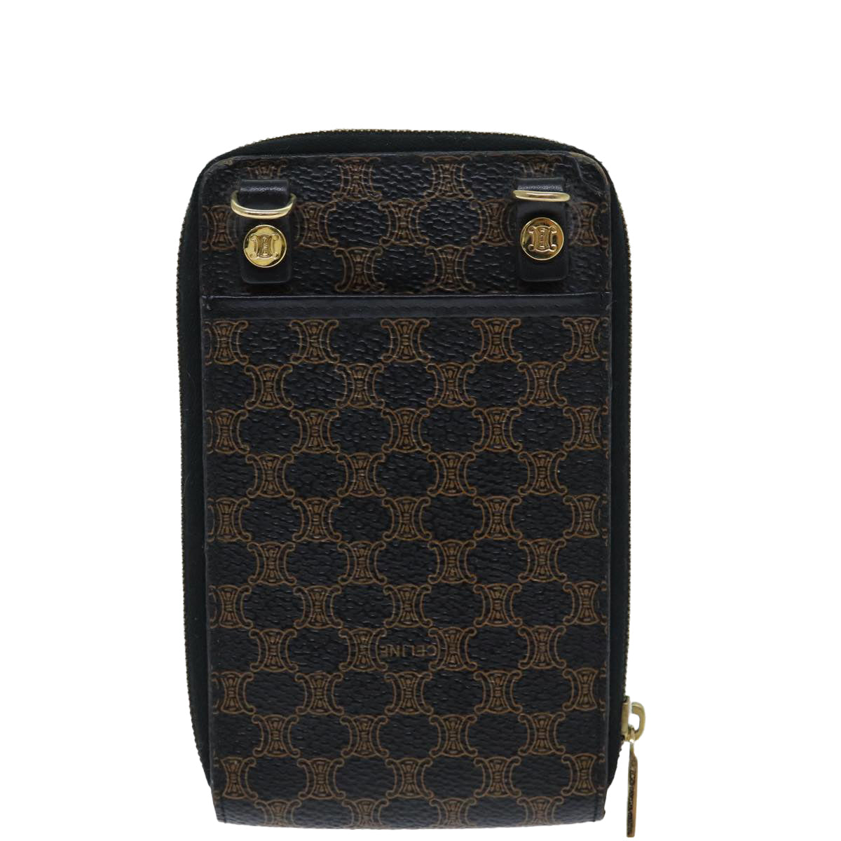 CELINE Macadam Canvas Shoulder Wallet PVC Brown Auth 79811