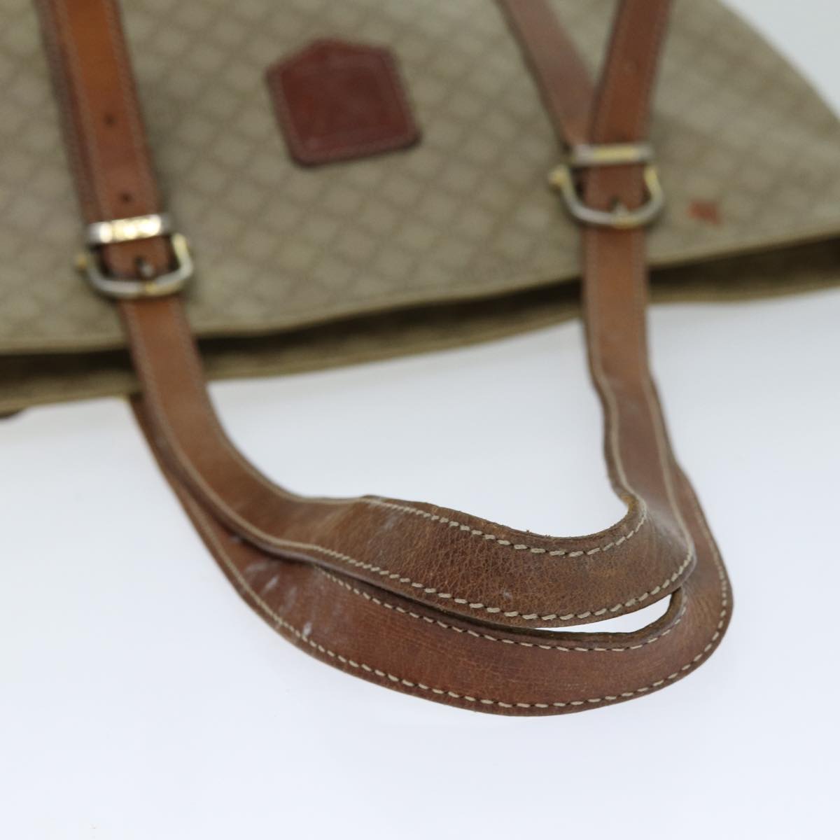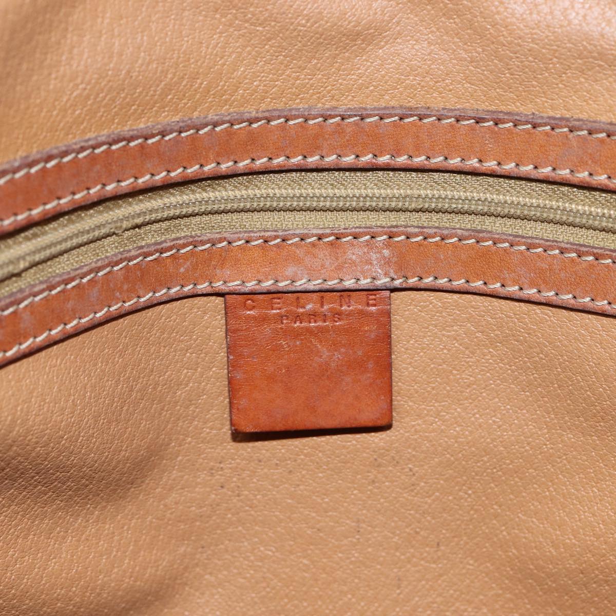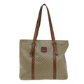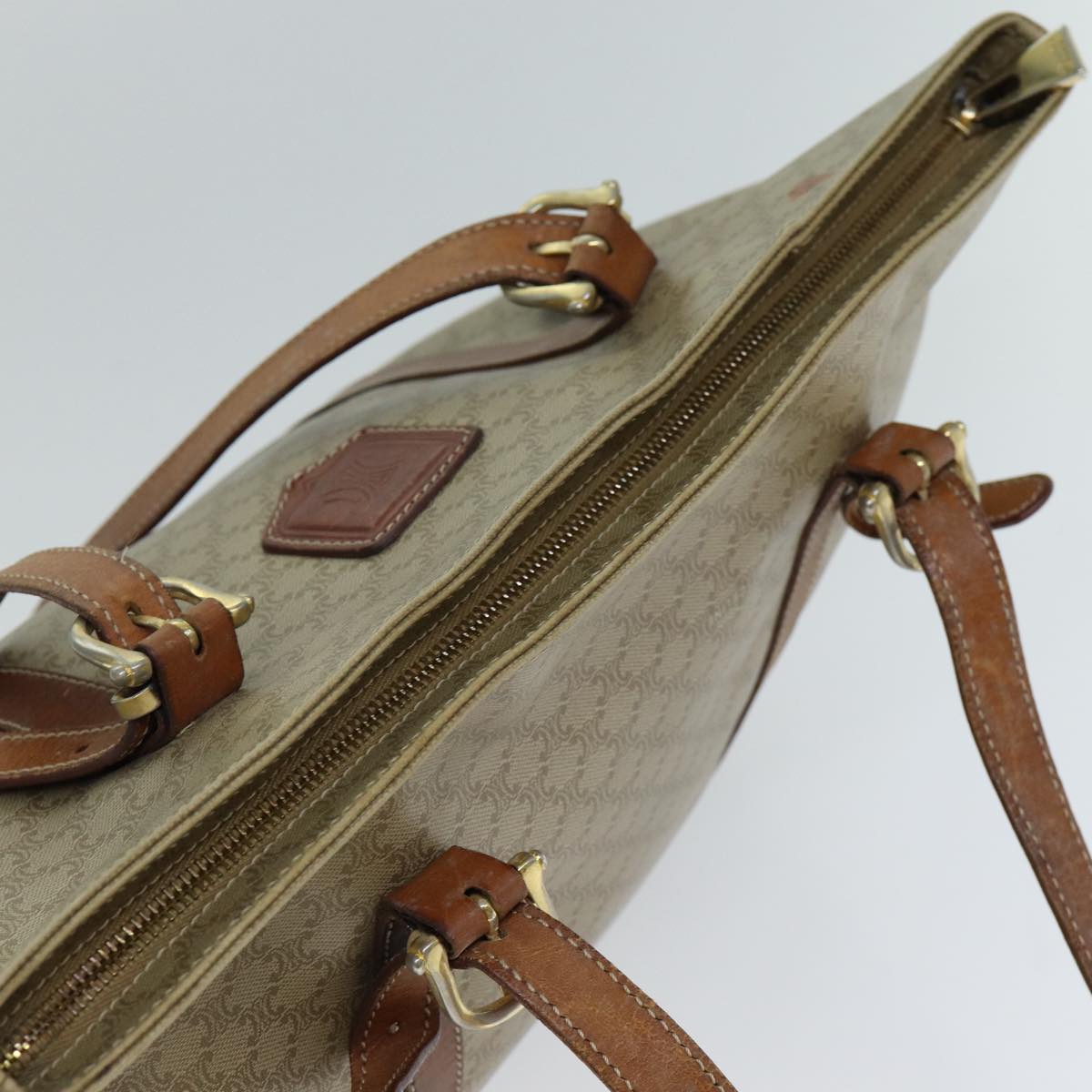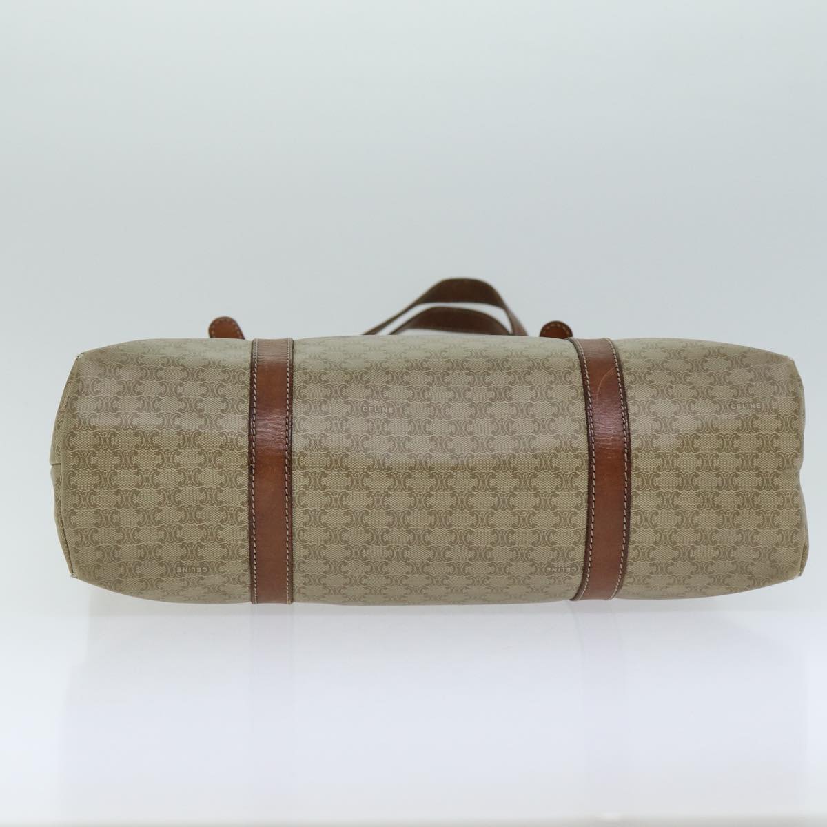 CELINE Macadam Canvas Tote Bag Leather Beige Auth bs15312