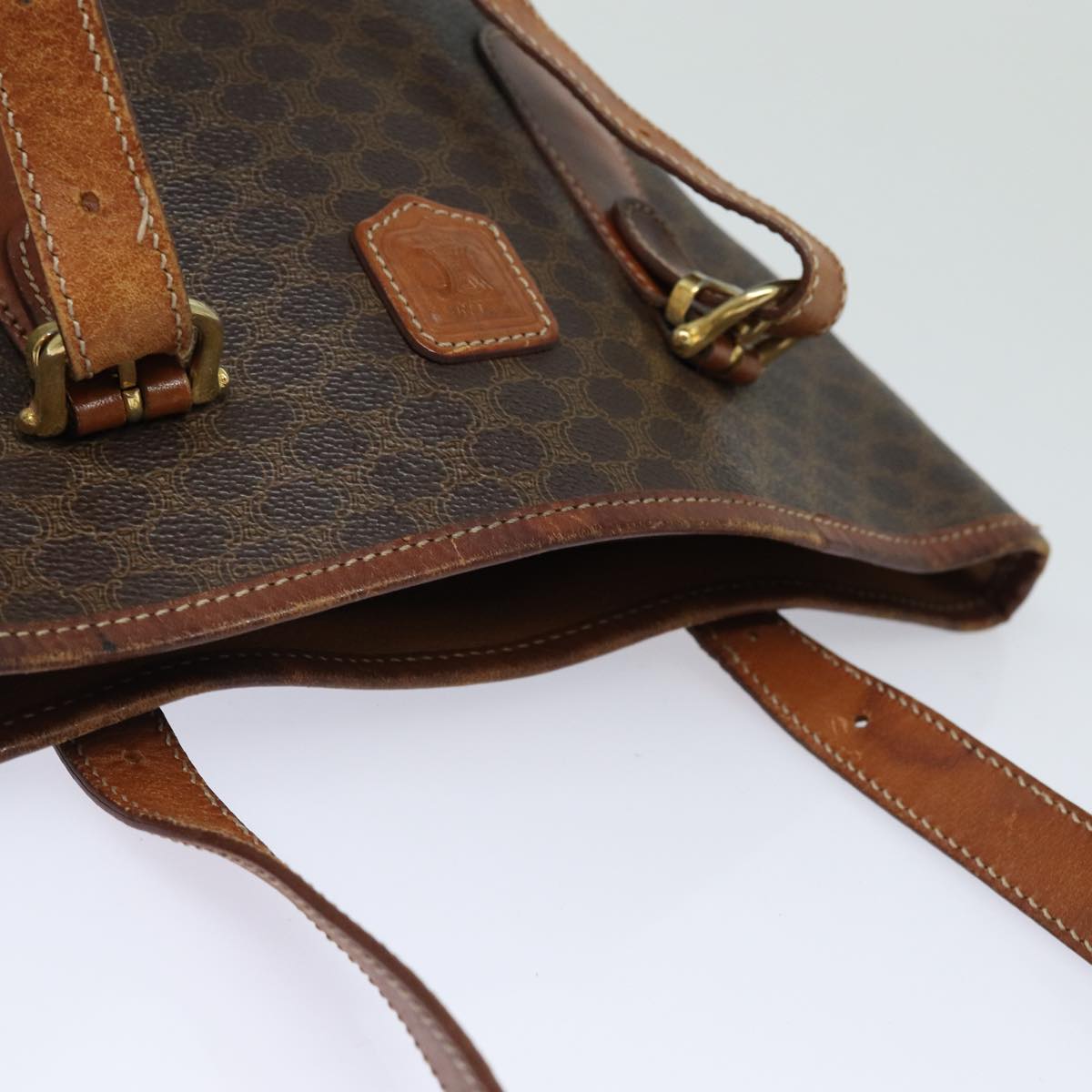 CELINE Macadam Canvas Tote Bag PVC Leather Brown Auth mr371