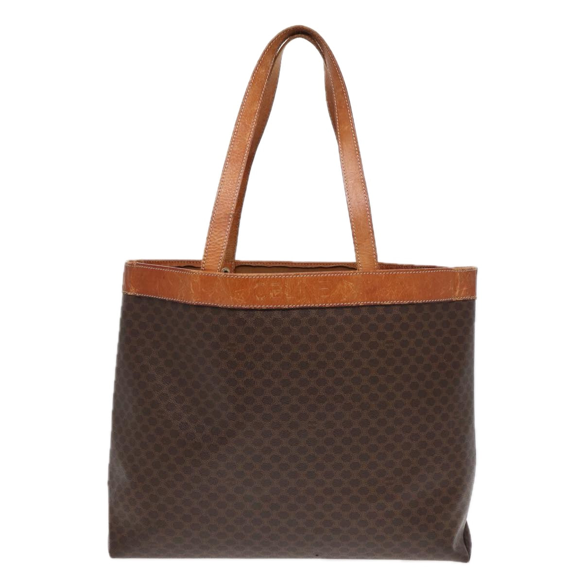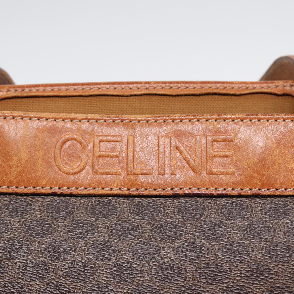 CELINE Macadam Canvas Tote Bag PVC Leather Brown Gold Auth 88503