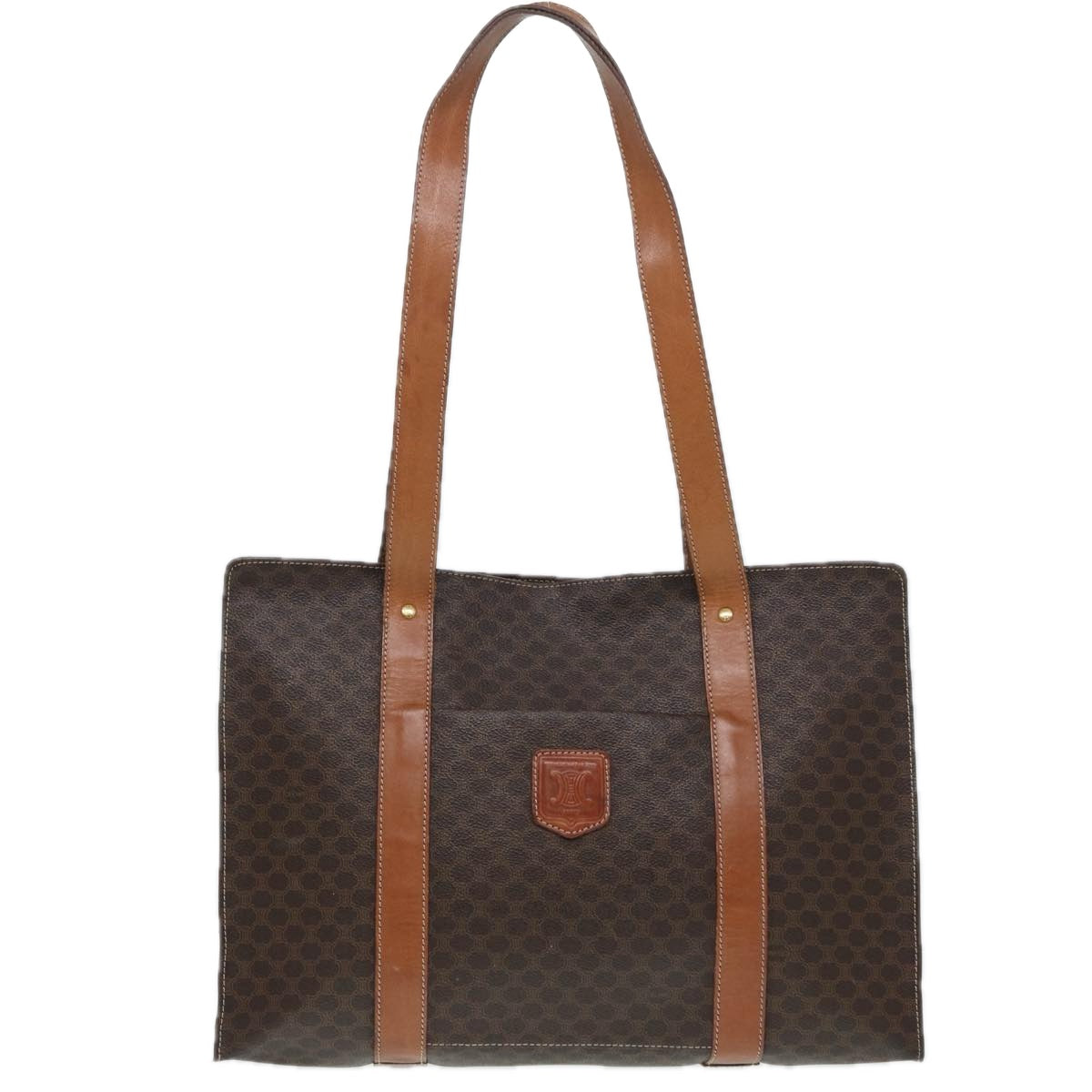 CELINE Macadam Canvas Tote Bag PVC Leather Brown Gold Auth bs17006