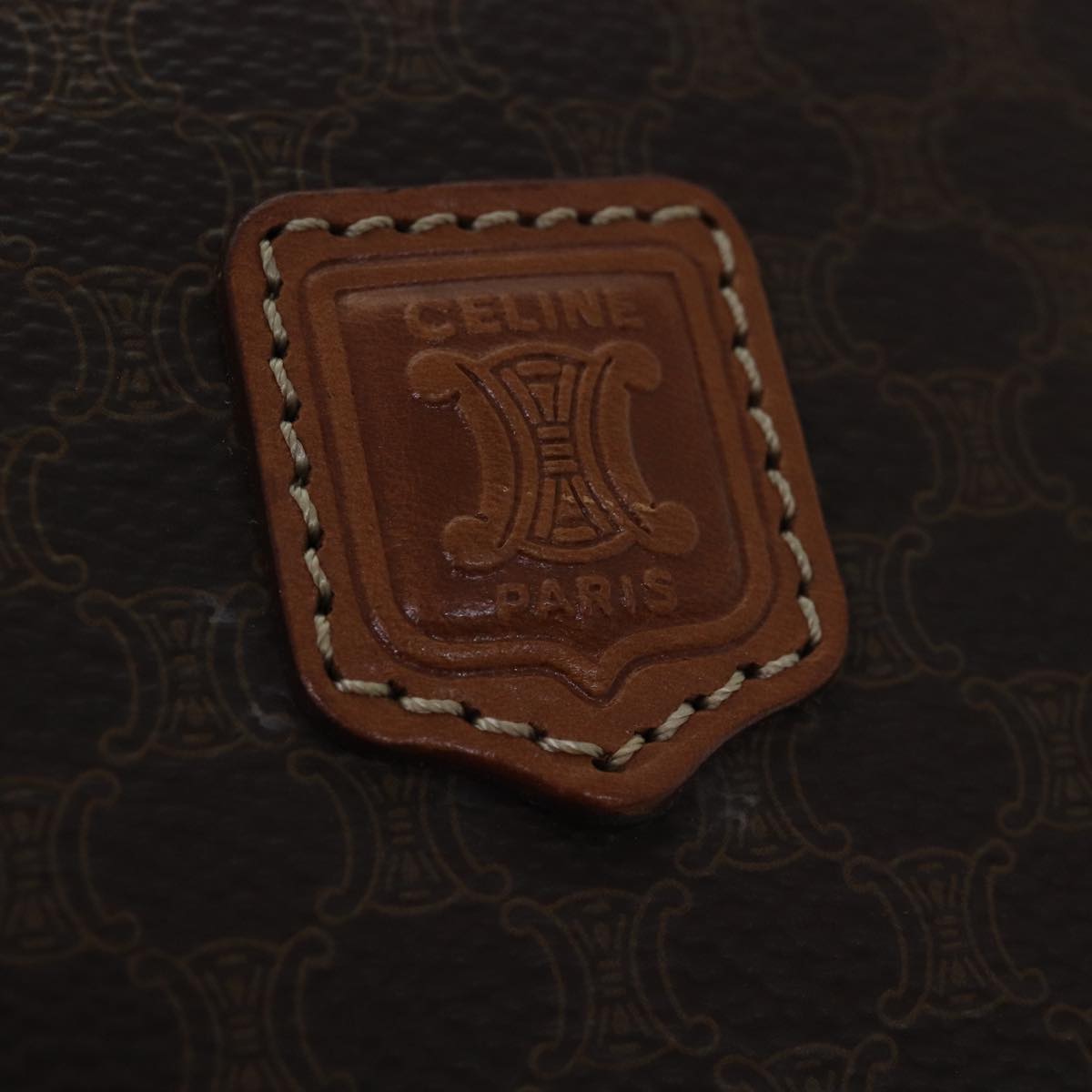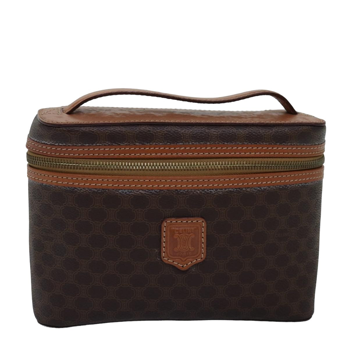 CELINE Macadam Canvas Vanity Hand Bag PVC Brown Auth mr247