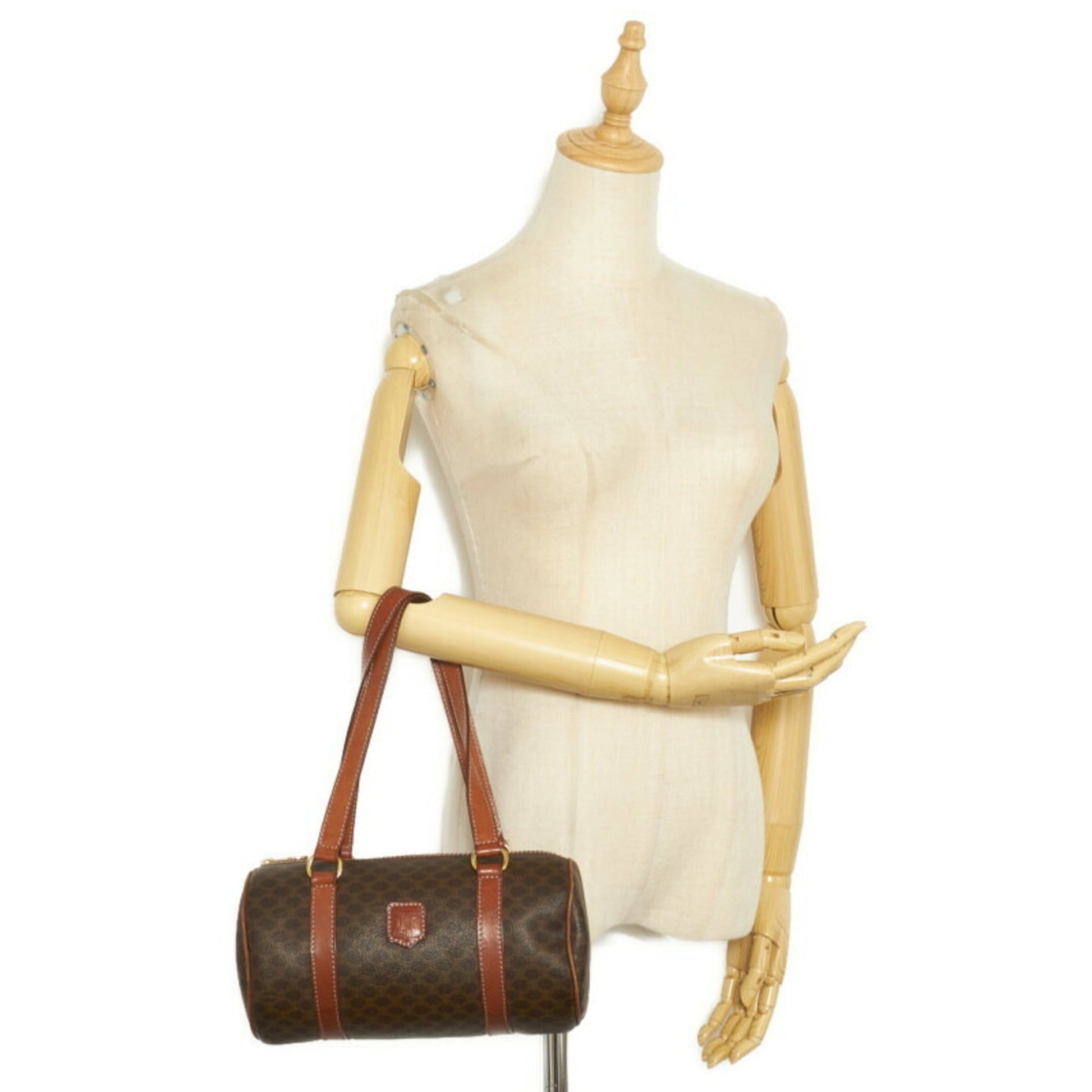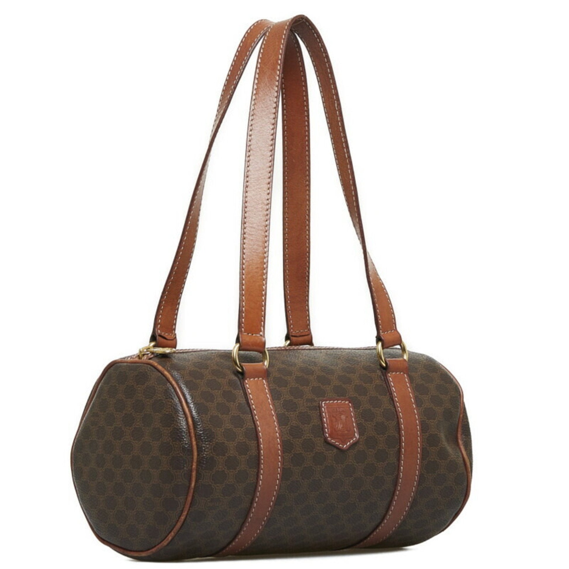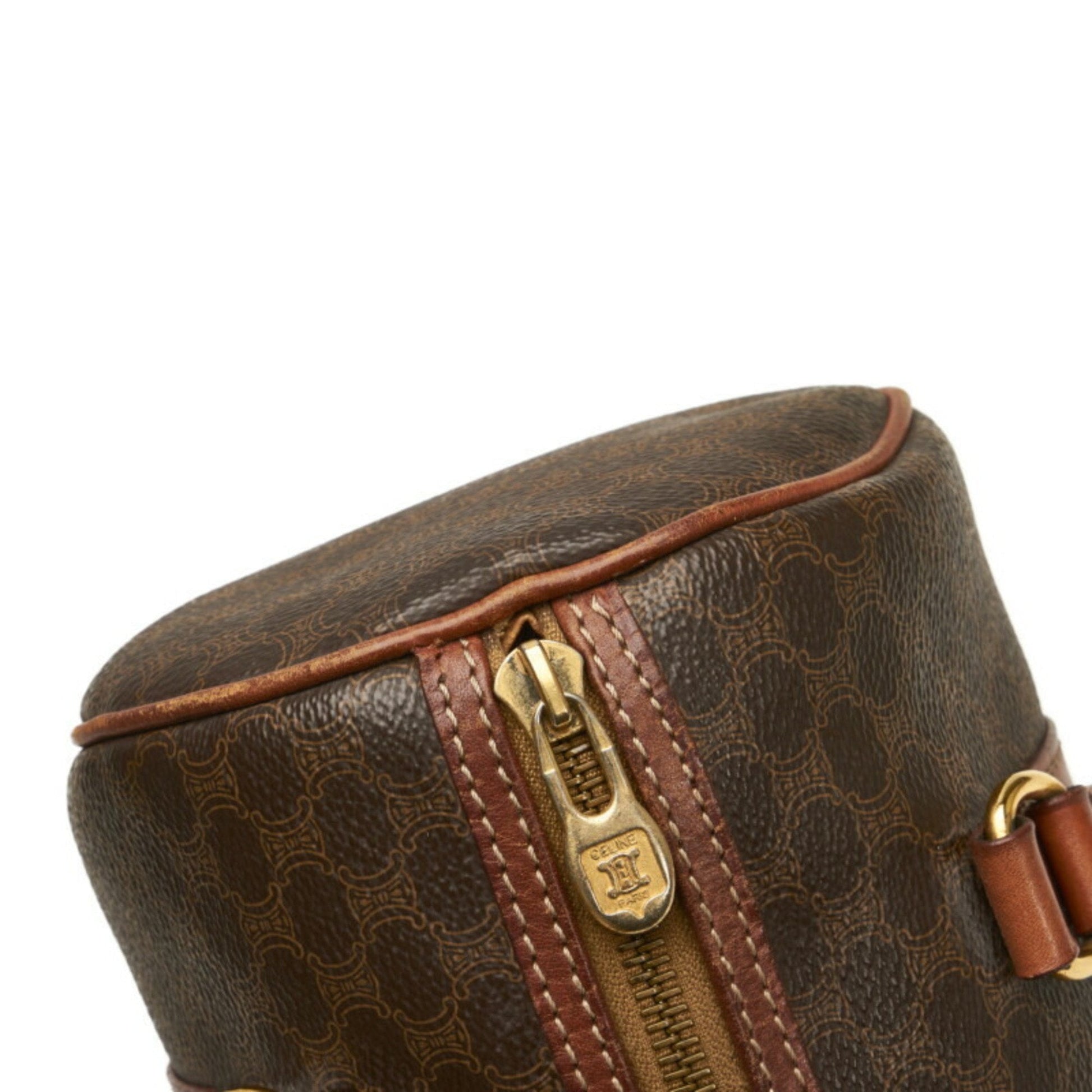 Celine Macadam Cylinder Handbag Boston Bag Brown PVC Leather Ladies