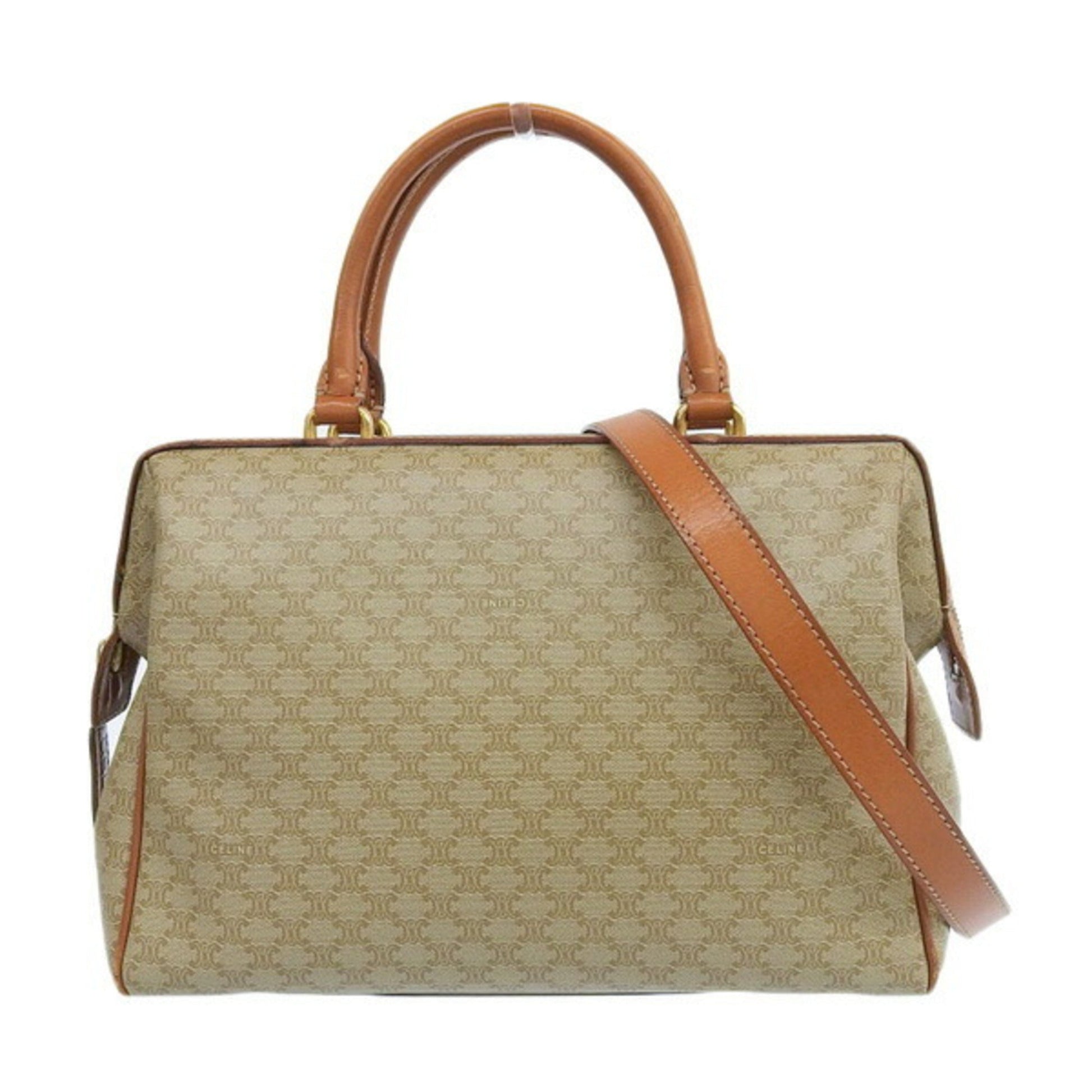 Celine Macadam Handbag Boston Bag Beige Brown Ladies