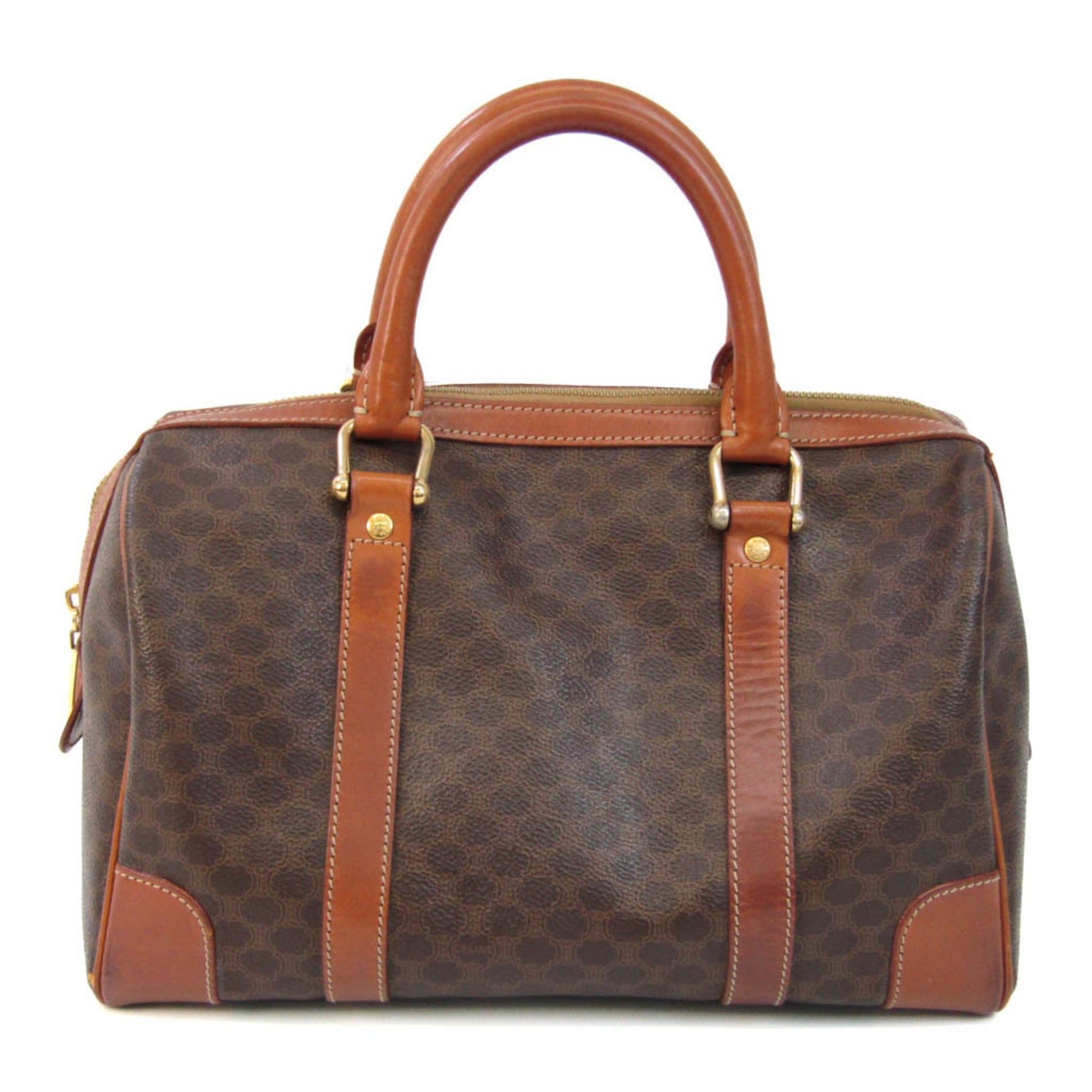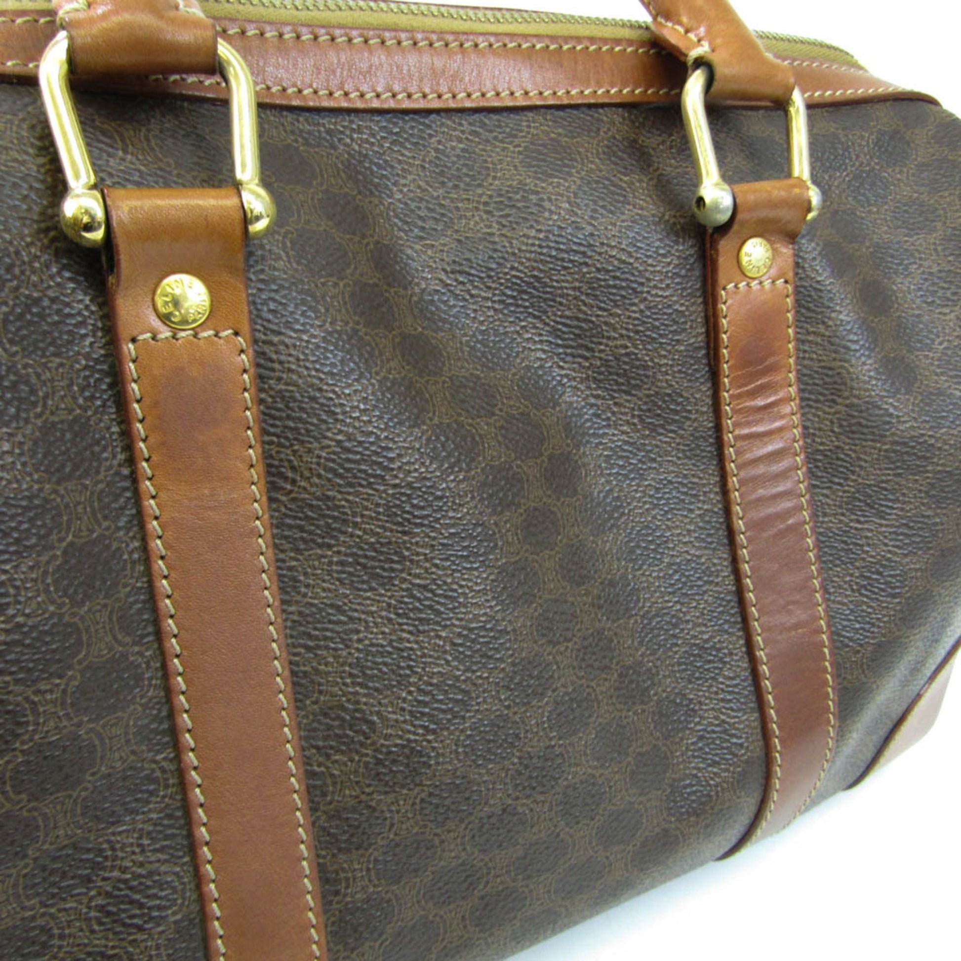 Celine Macadam Men,Women PVC,Leather Boston Bag,Handbag Brown,Dark Brown
