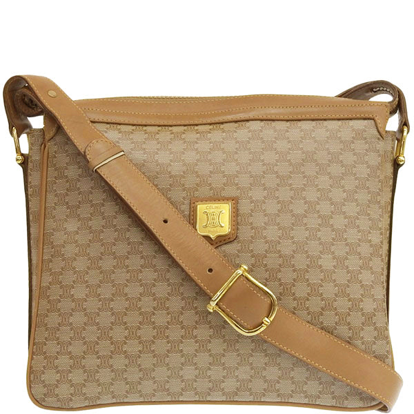 Celine Macadam Pattern Logo Plate Shoulder Bag Beige/Brown
