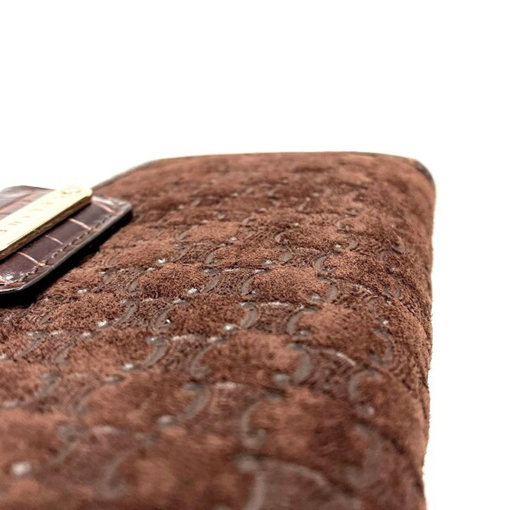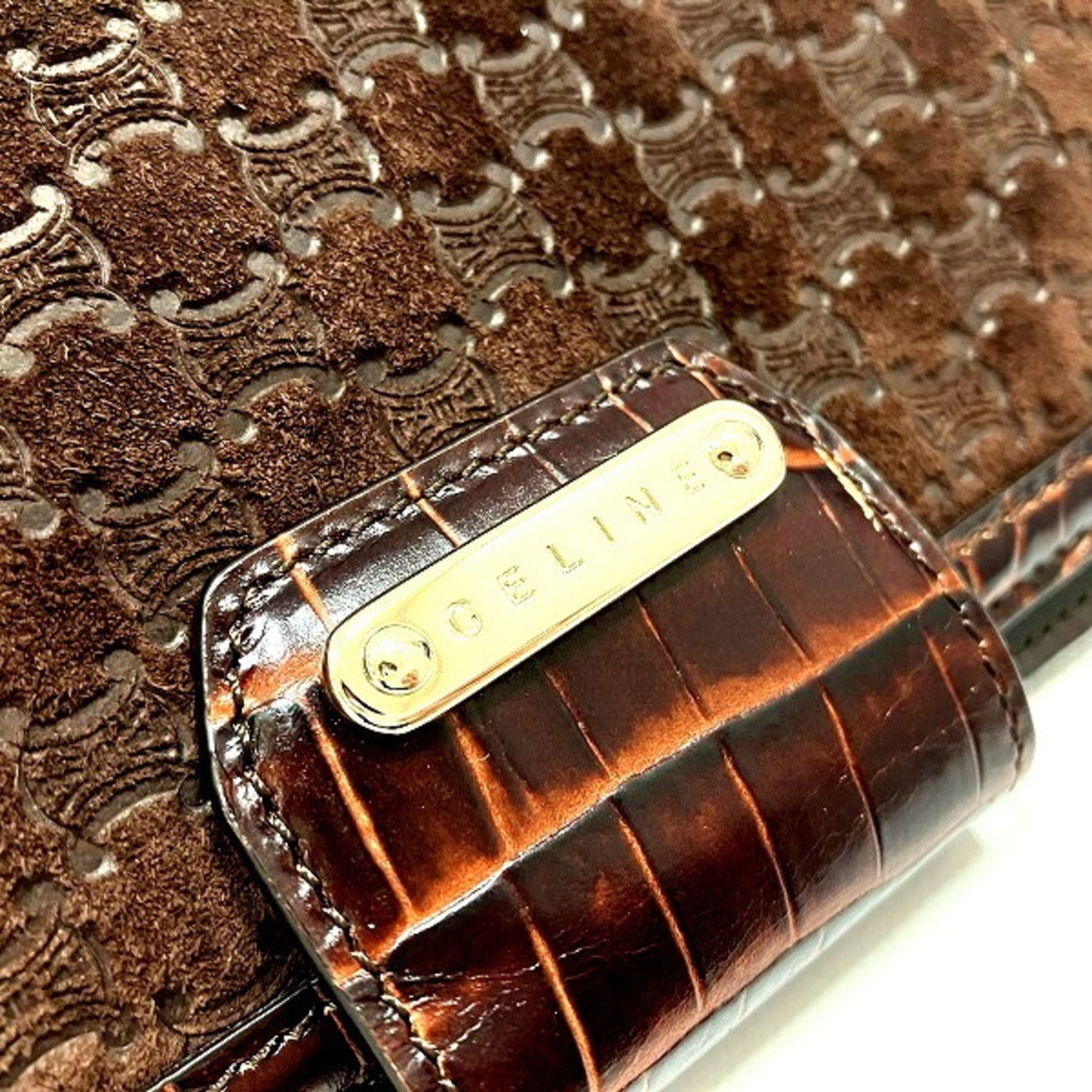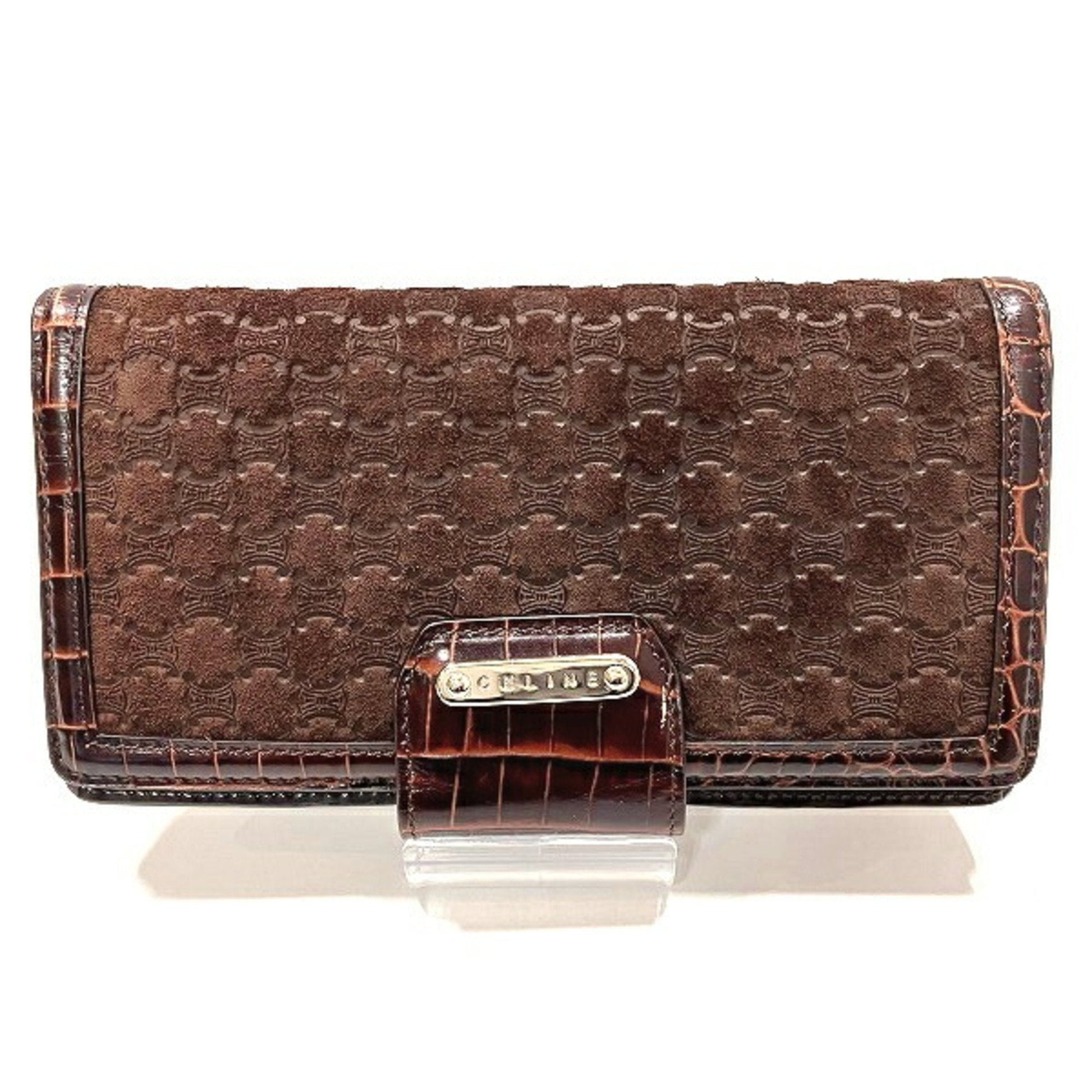 Celine Macadam Pattern Suede Embossed Leather Wallet Bifold Long Unisex