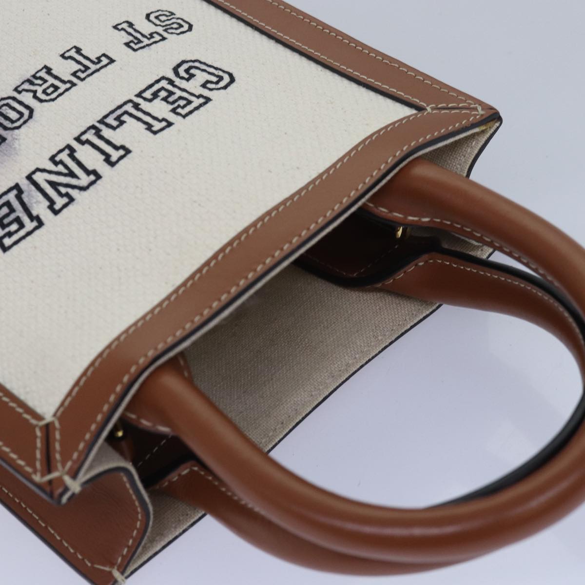 CELINE Mini Vertical Cabas Hand Bag Canvas 2way White Auth 82073