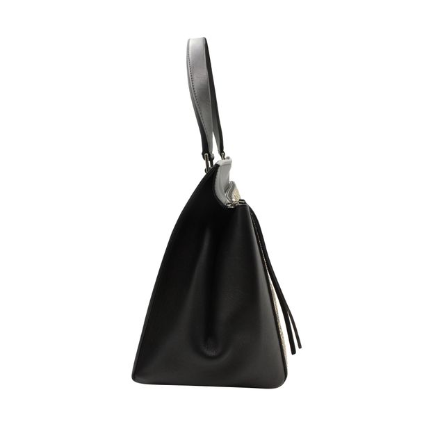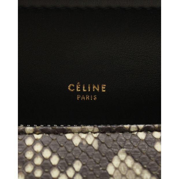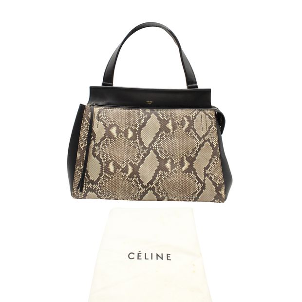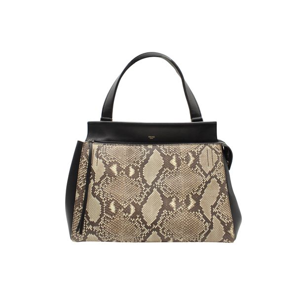 Single handle, top zipper leather shoulder bag with python leather front panel.