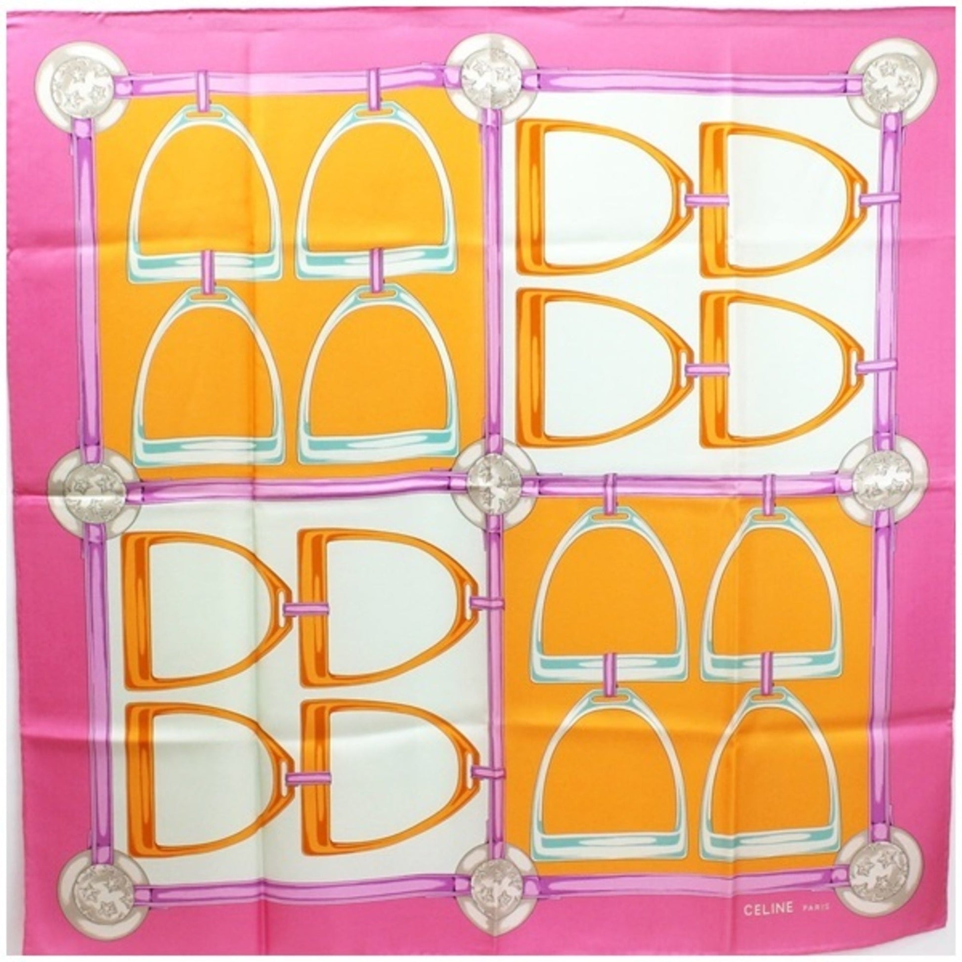 Celine scarf muffler pink x multicolor harness pattern ladies horsebit