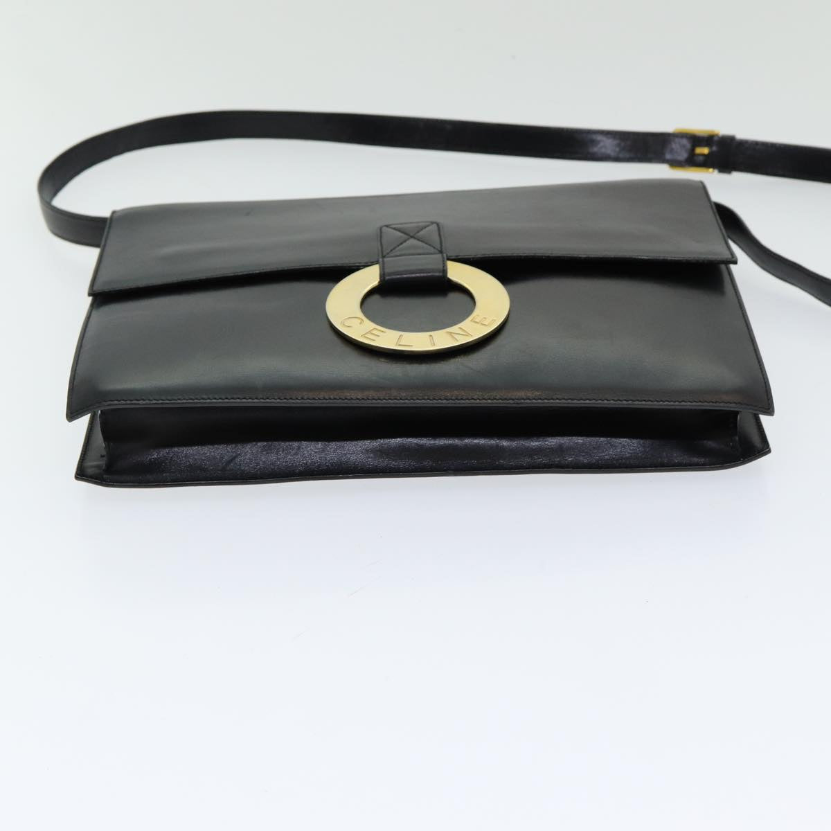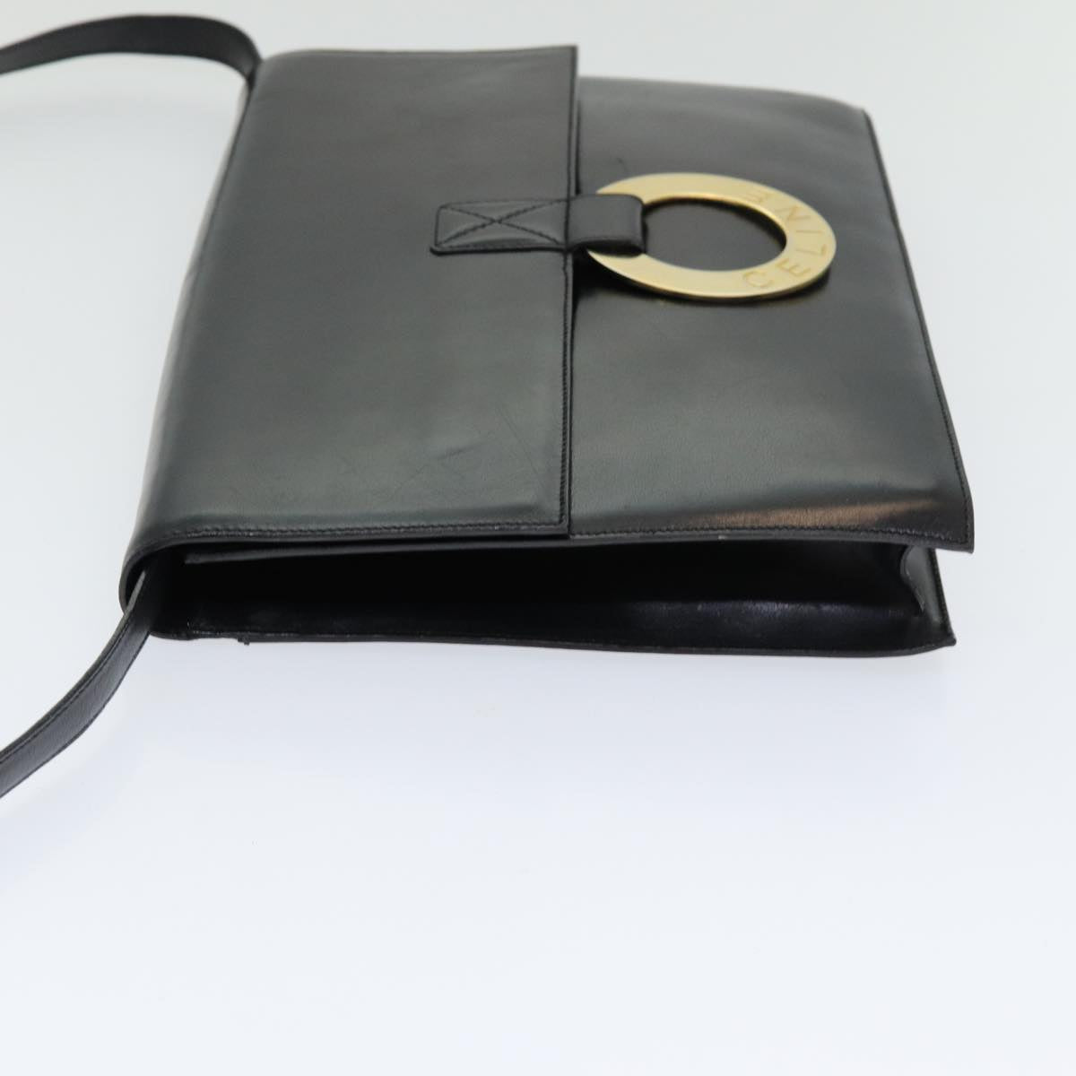 CELINE Shoulder Bag Leather Black Gold Auth 86257