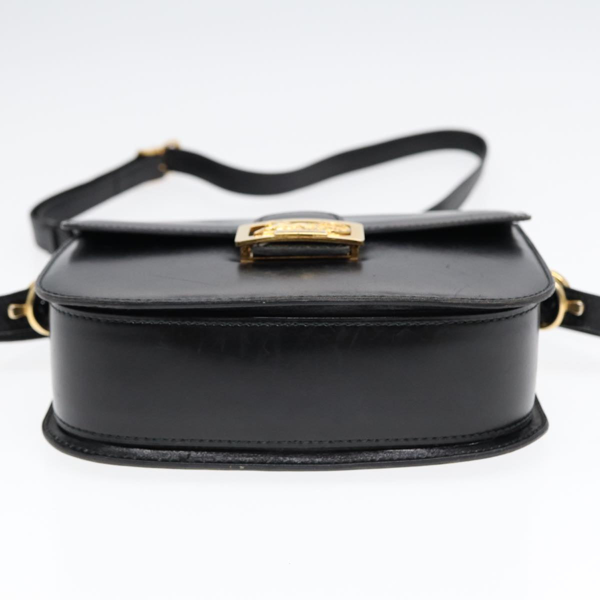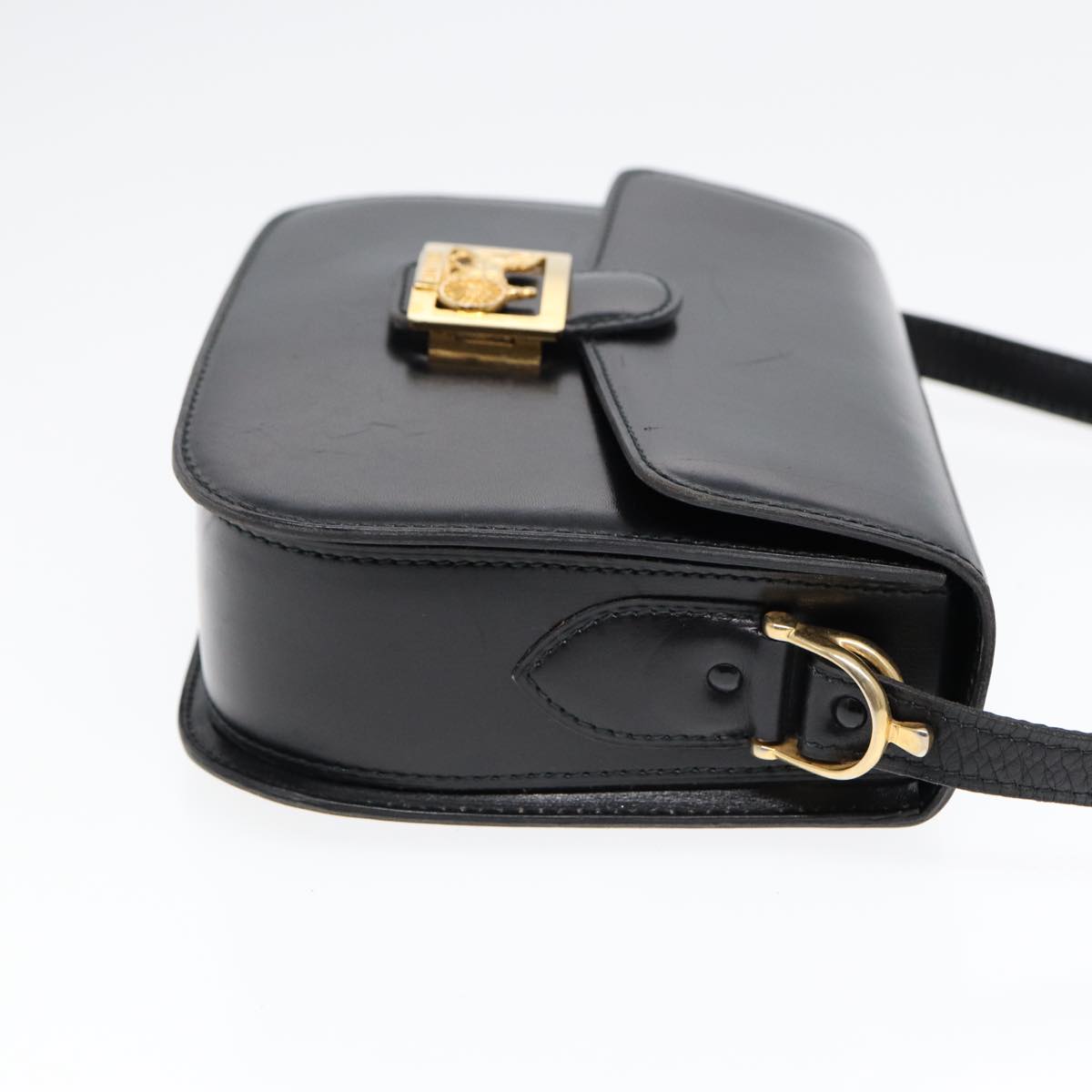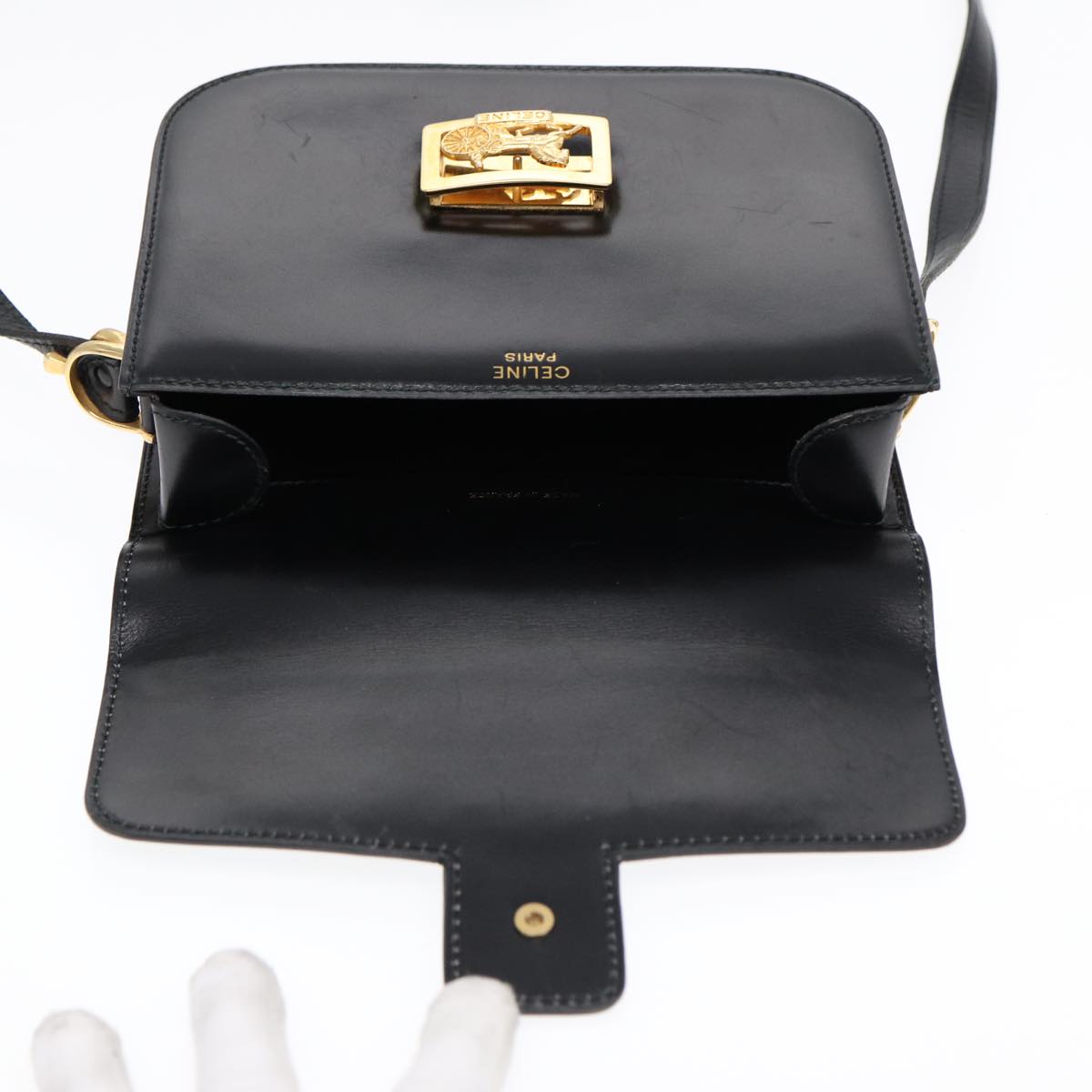 CELINE Shoulder Bag Leather Black Gold Auth 87746