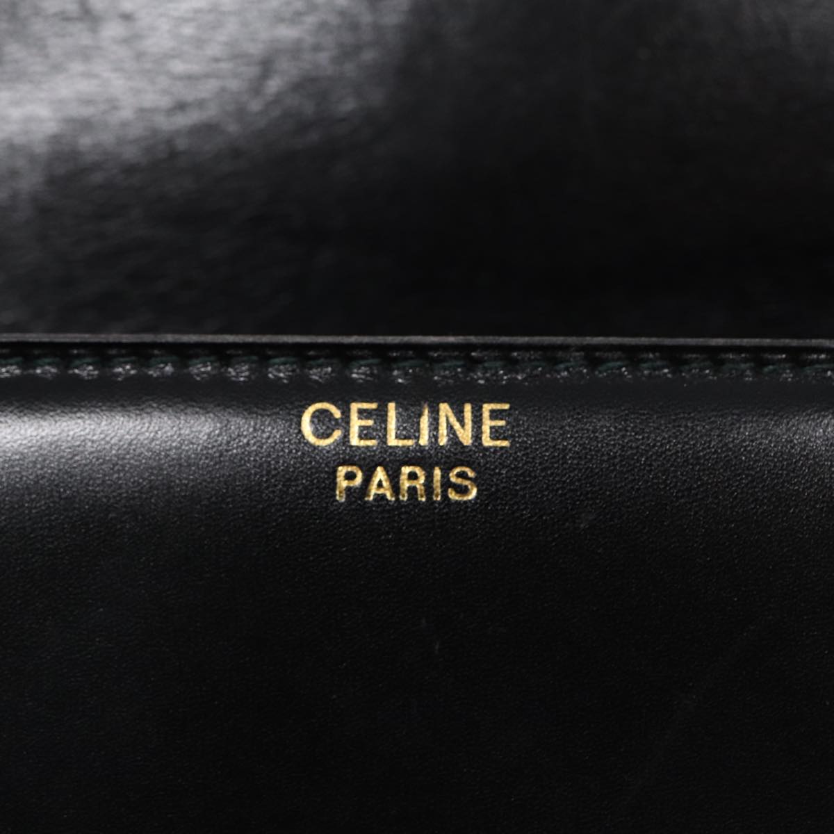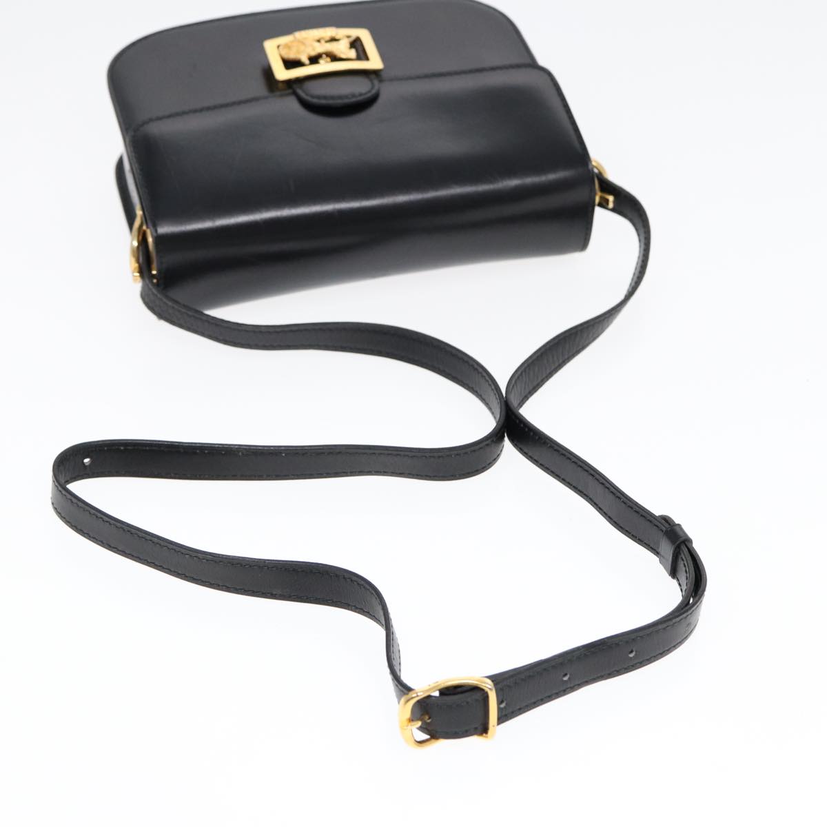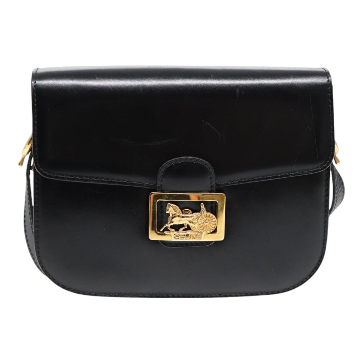 CELINE Shoulder Bag Leather Black Gold Auth 87746