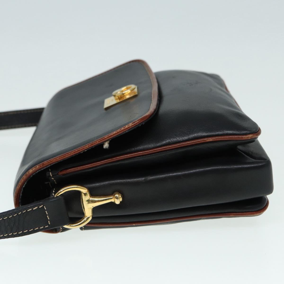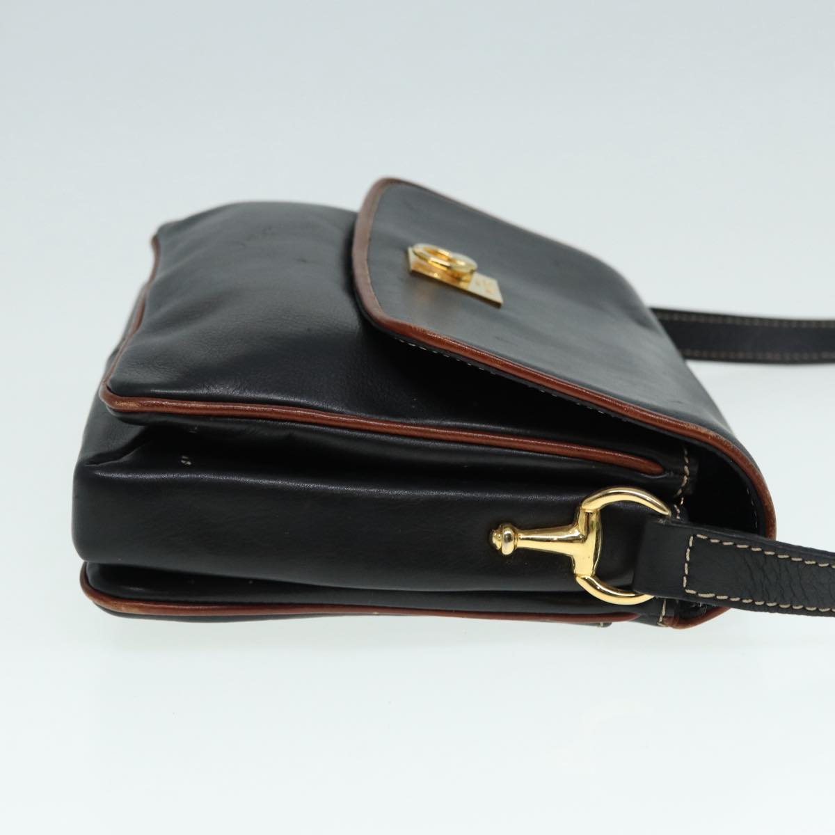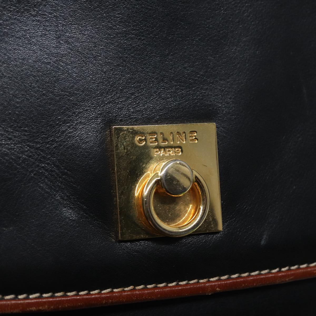 CELINE Shoulder Bag Leather Black Gold Auth bs17772