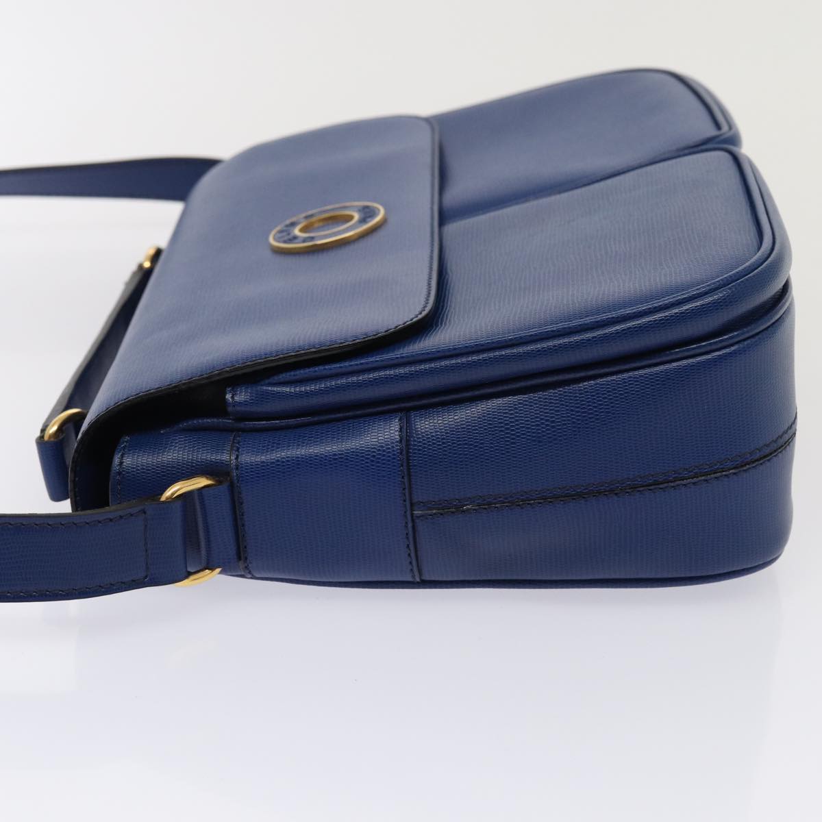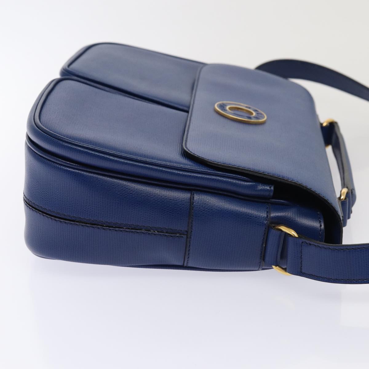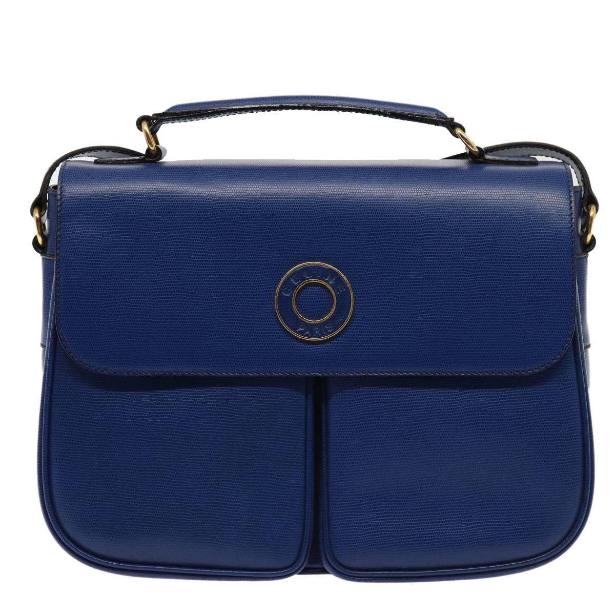CELINE Shoulder Bag Leather Blue Gold Auth 87747