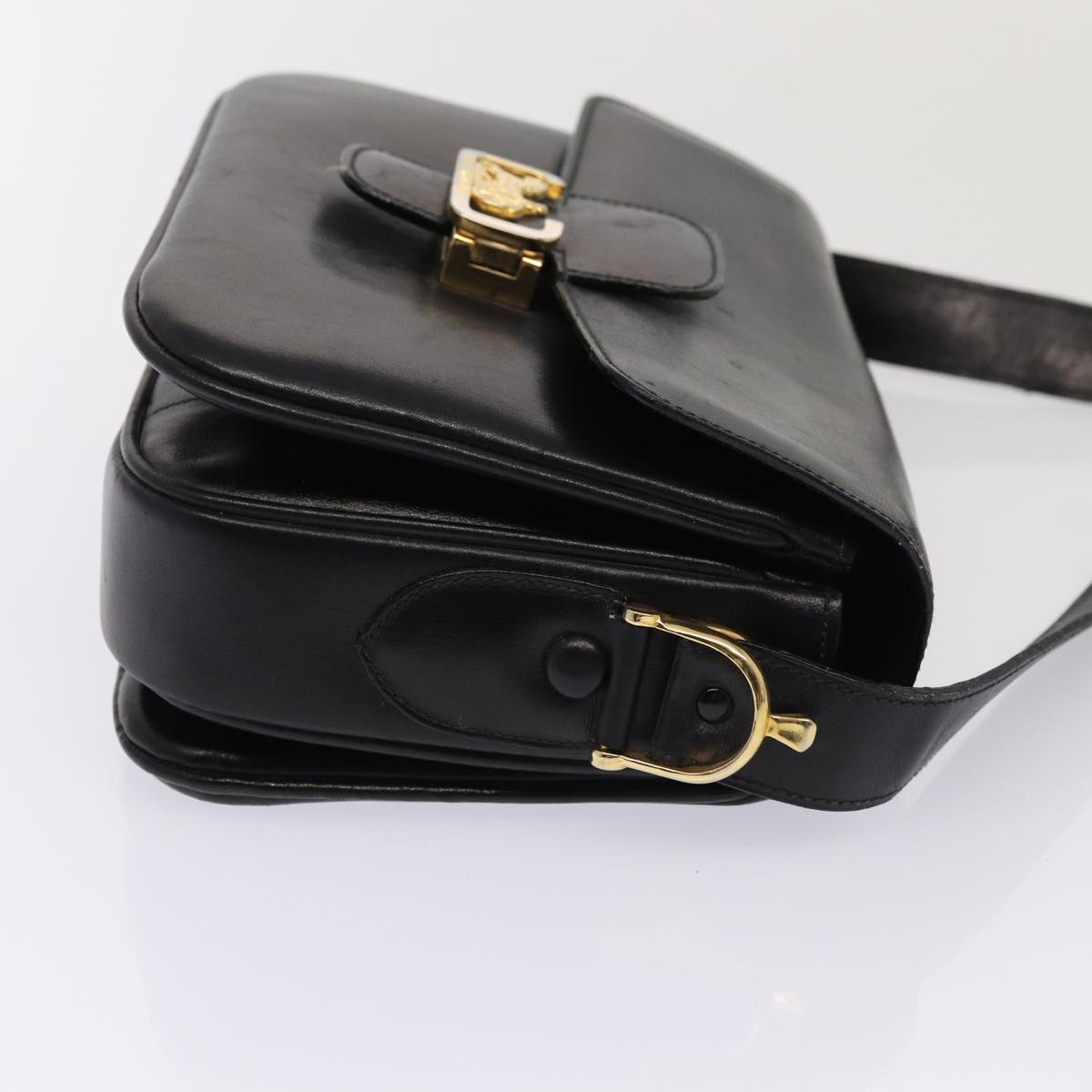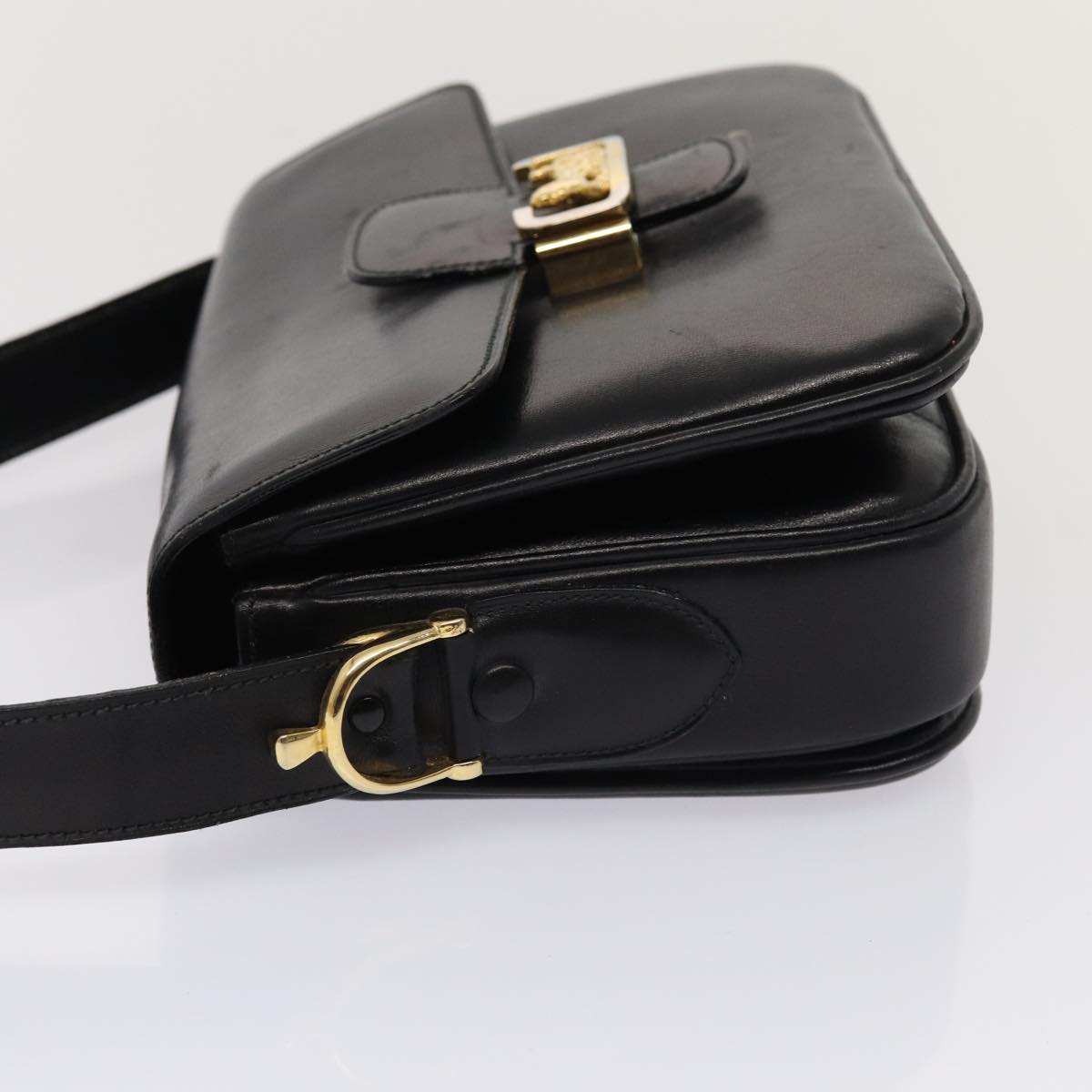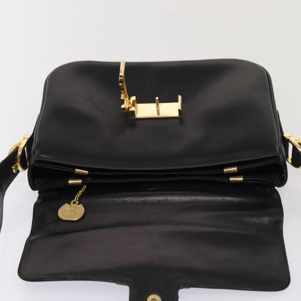 CELINE Shoulder Bag Leather Gold Black Auth 86434