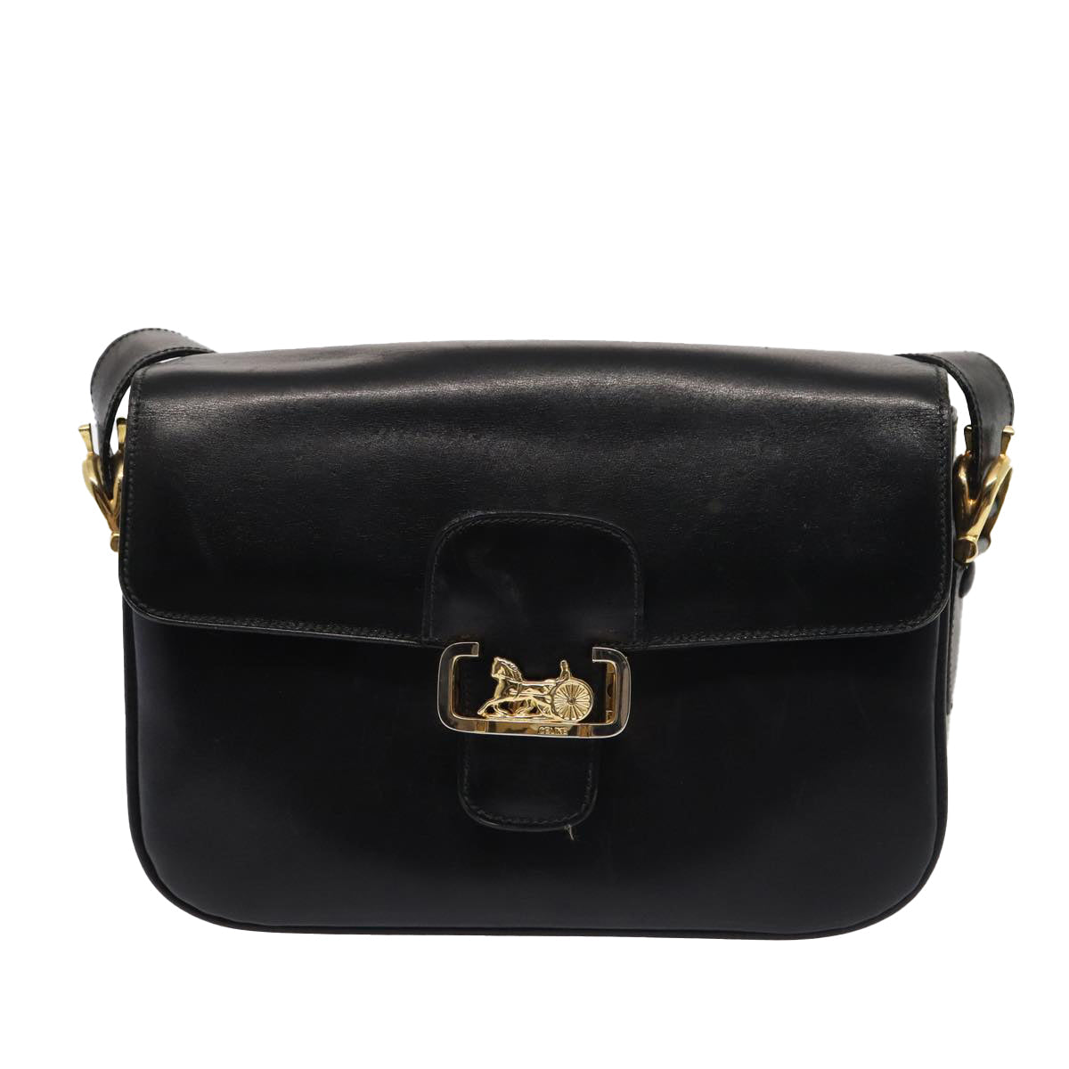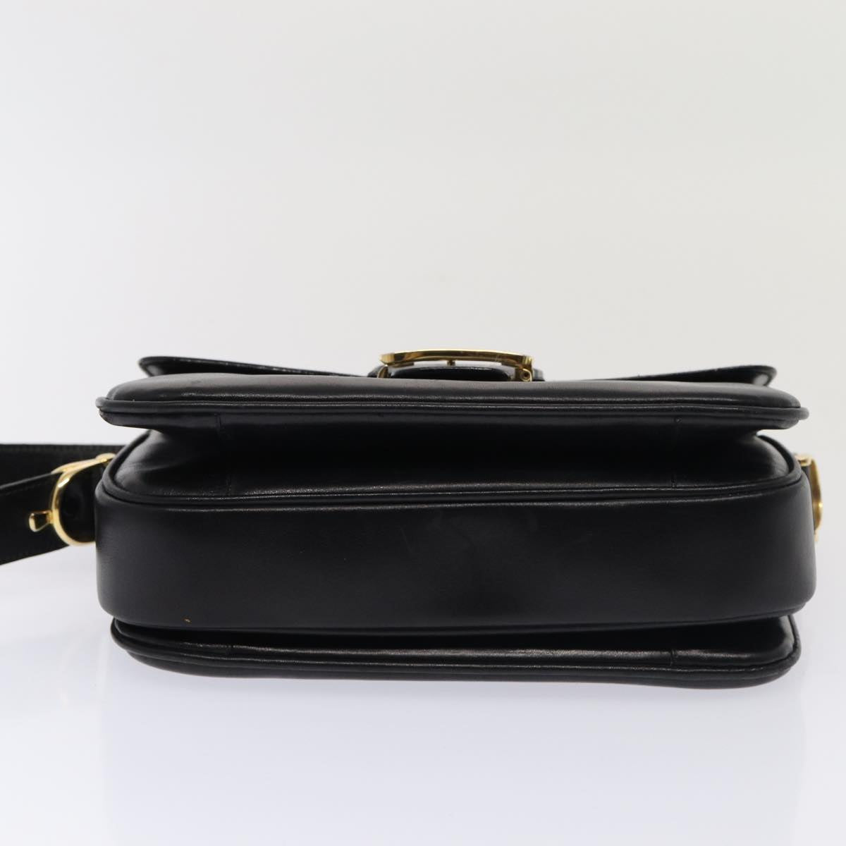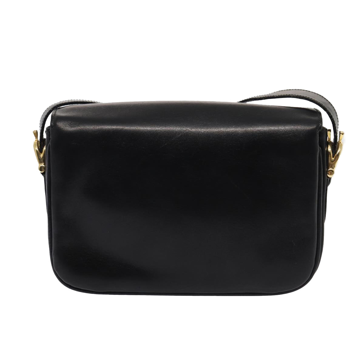 CELINE Shoulder Bag Leather Gold Black Auth 86434