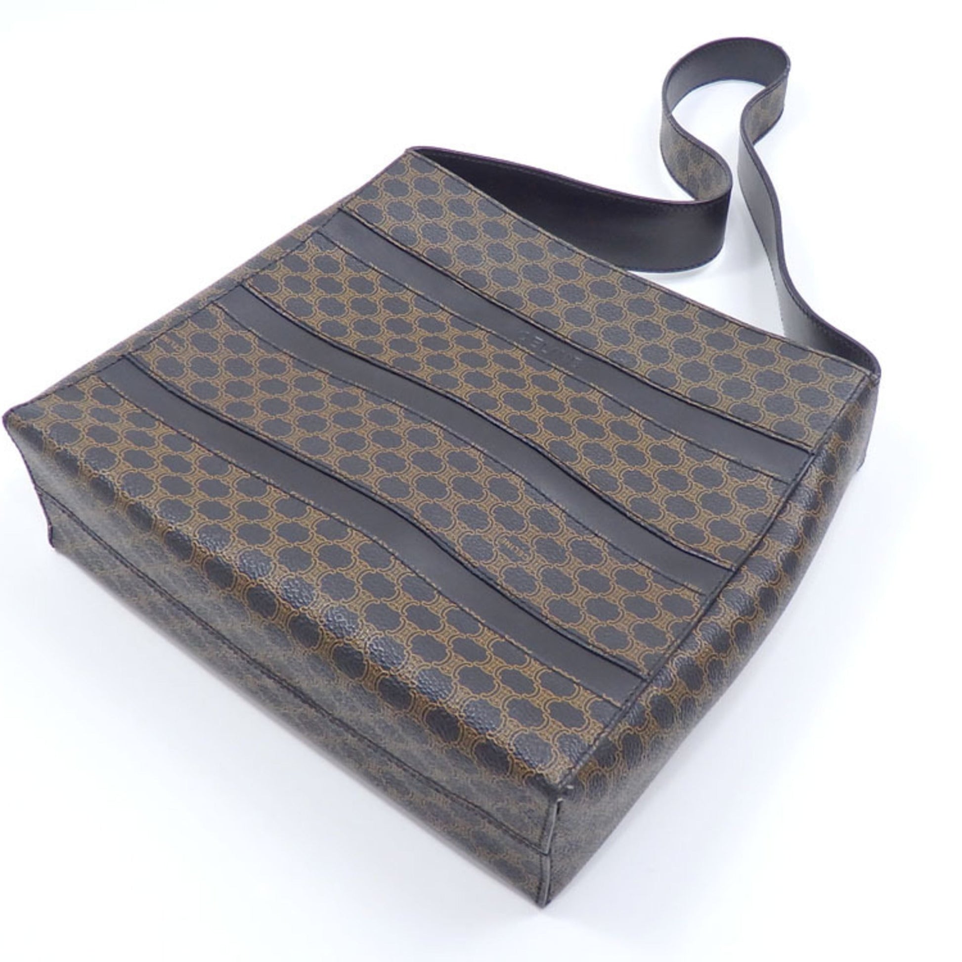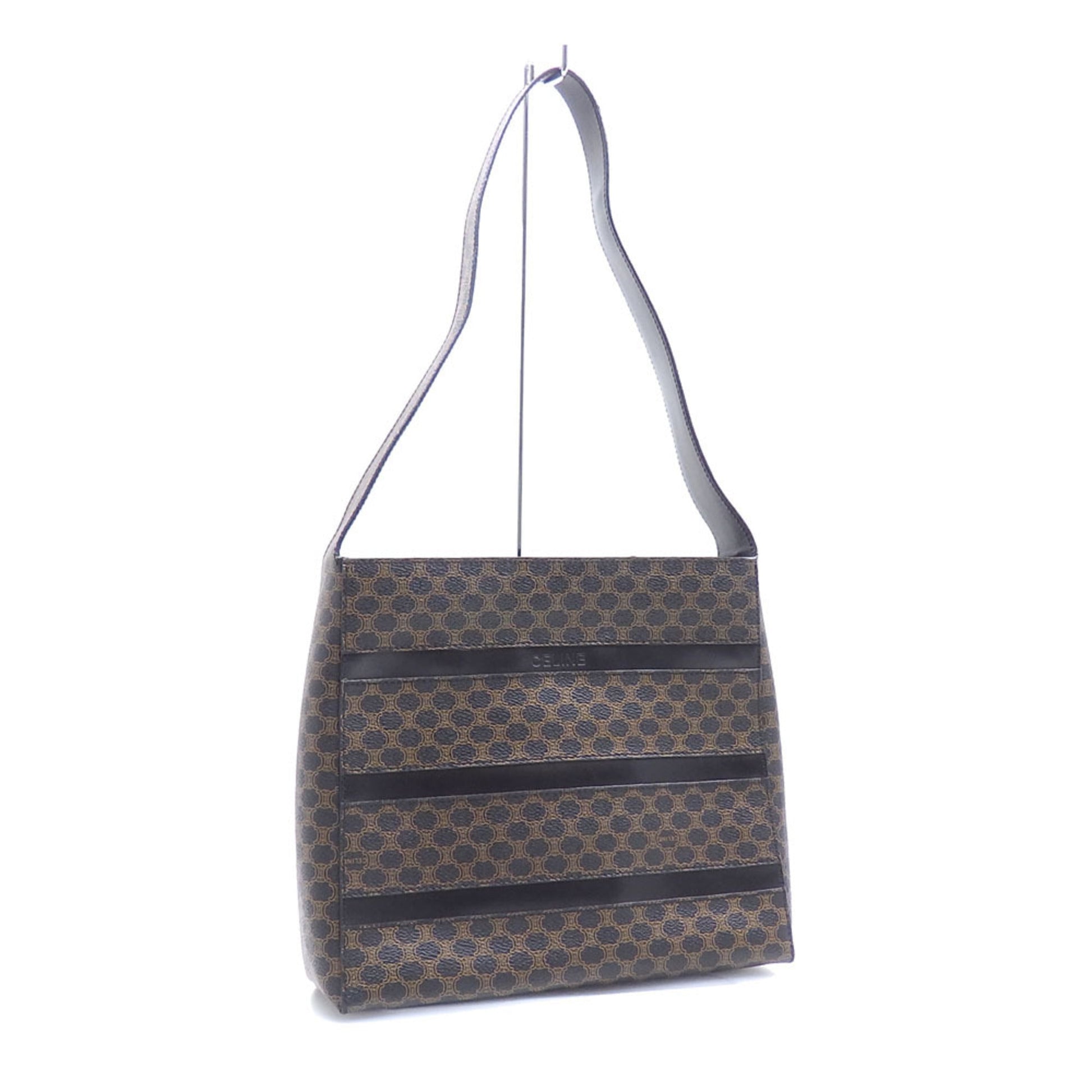Celine Shoulder Bag Macadam Women's Black Brown PVC Leather