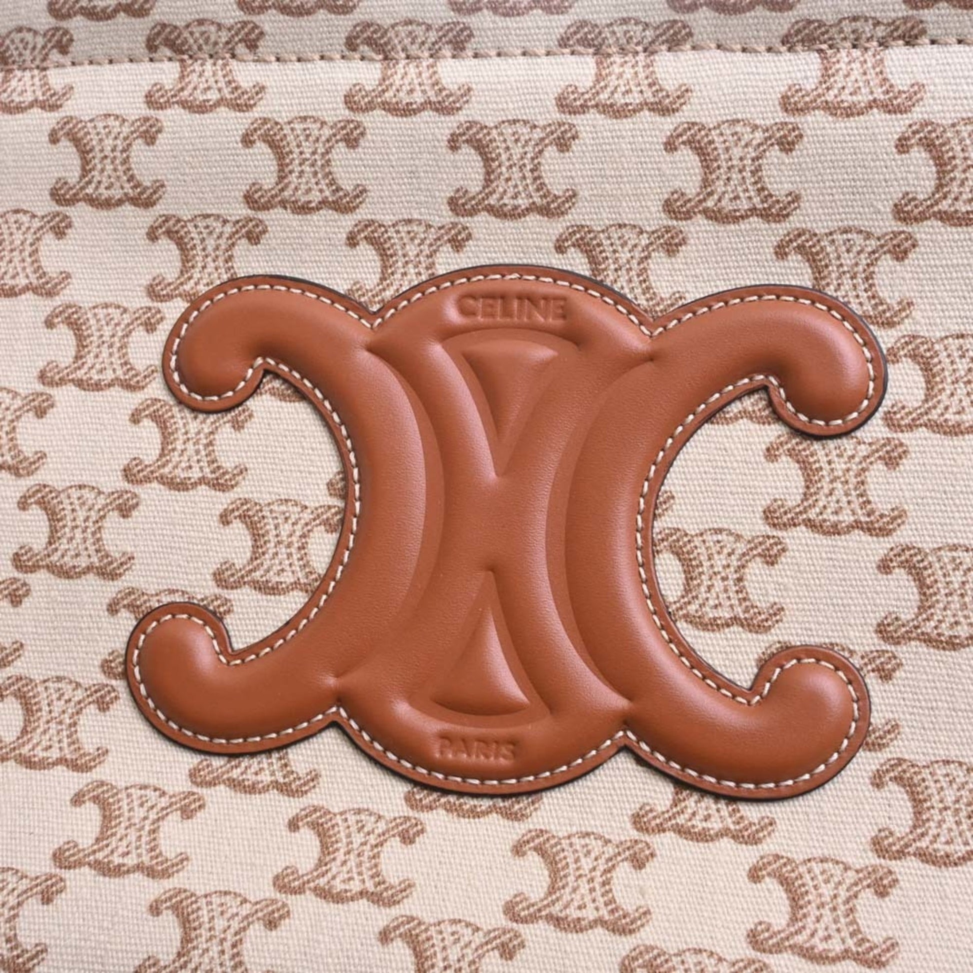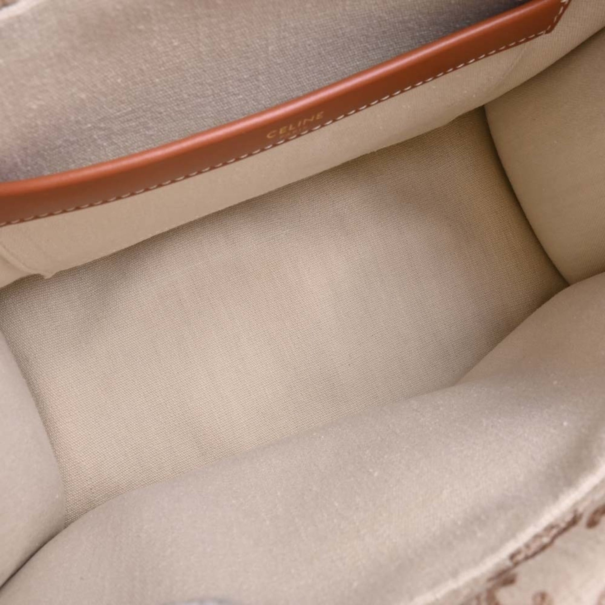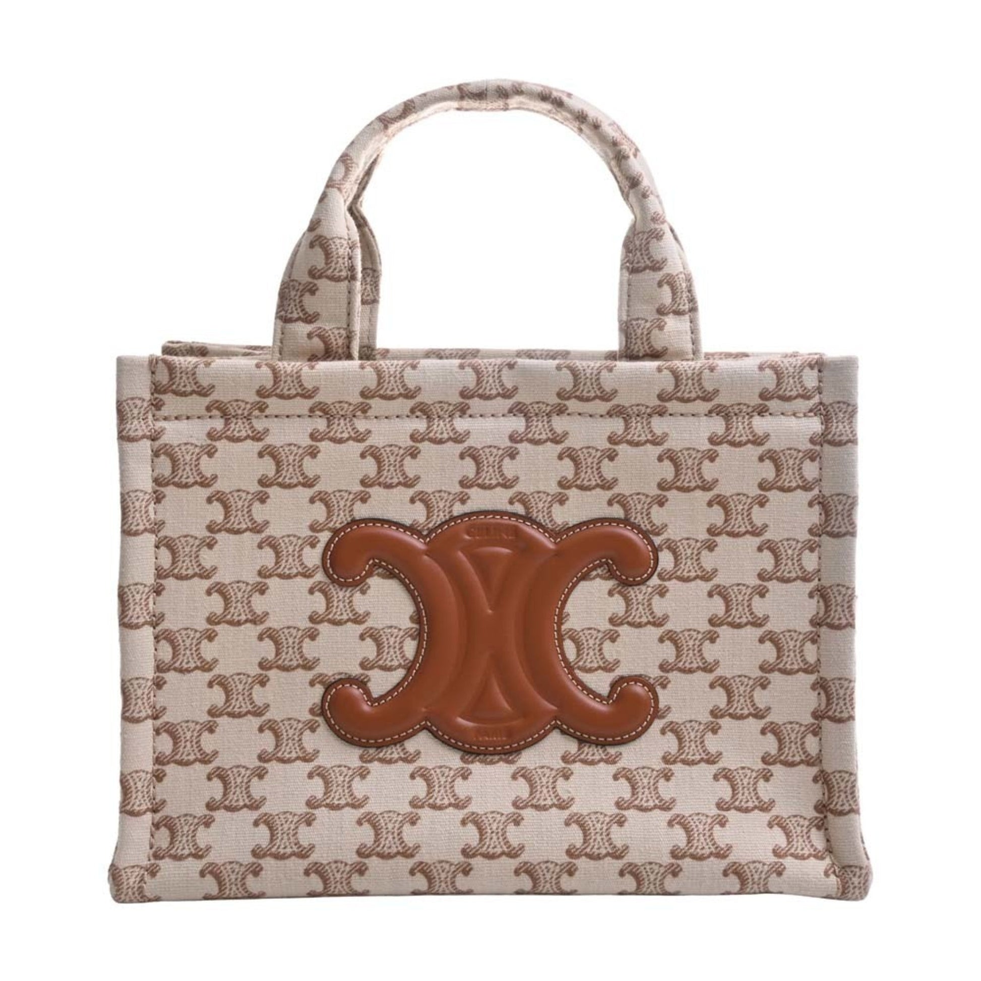 Celine Small Hippo Tice Canvas Leather Triomphe Handbag Beige/Brown Women's