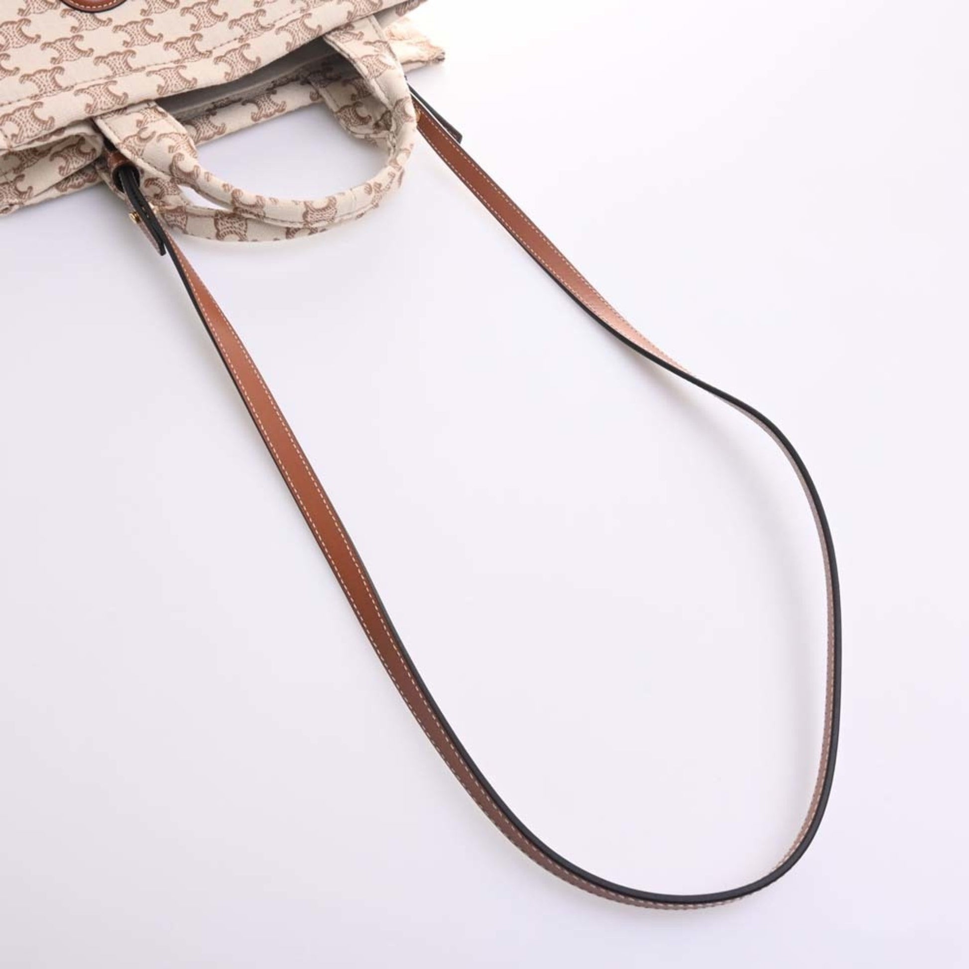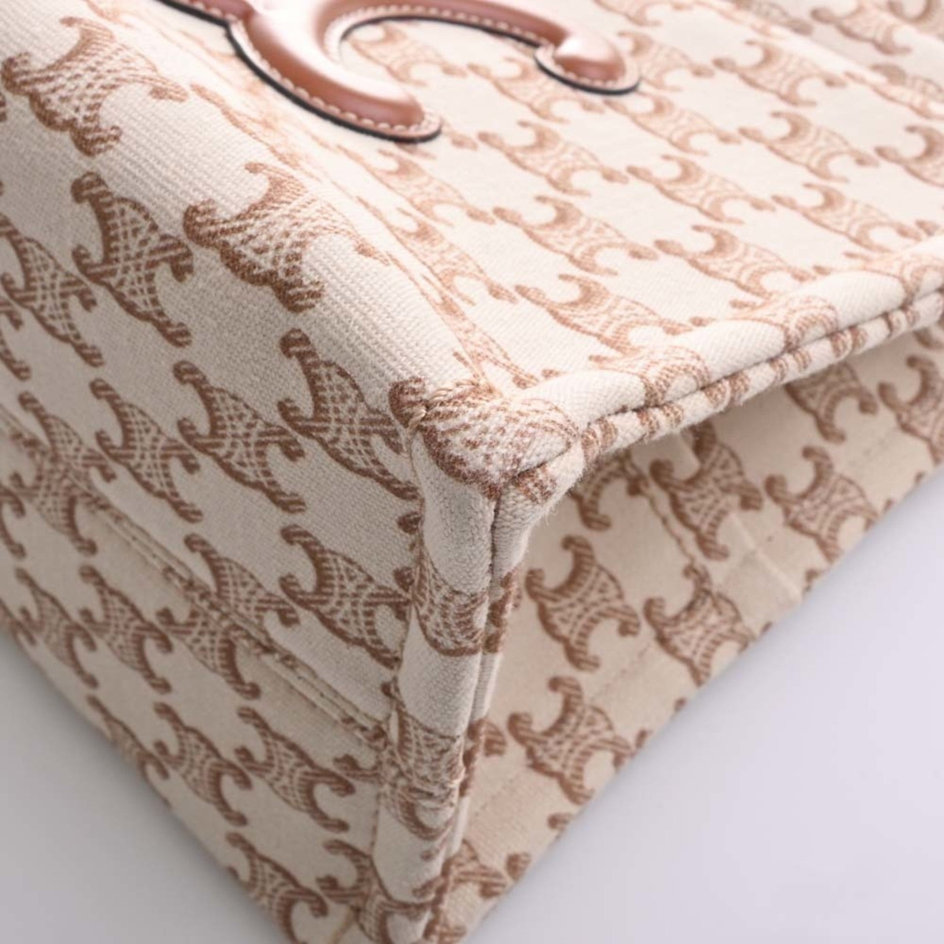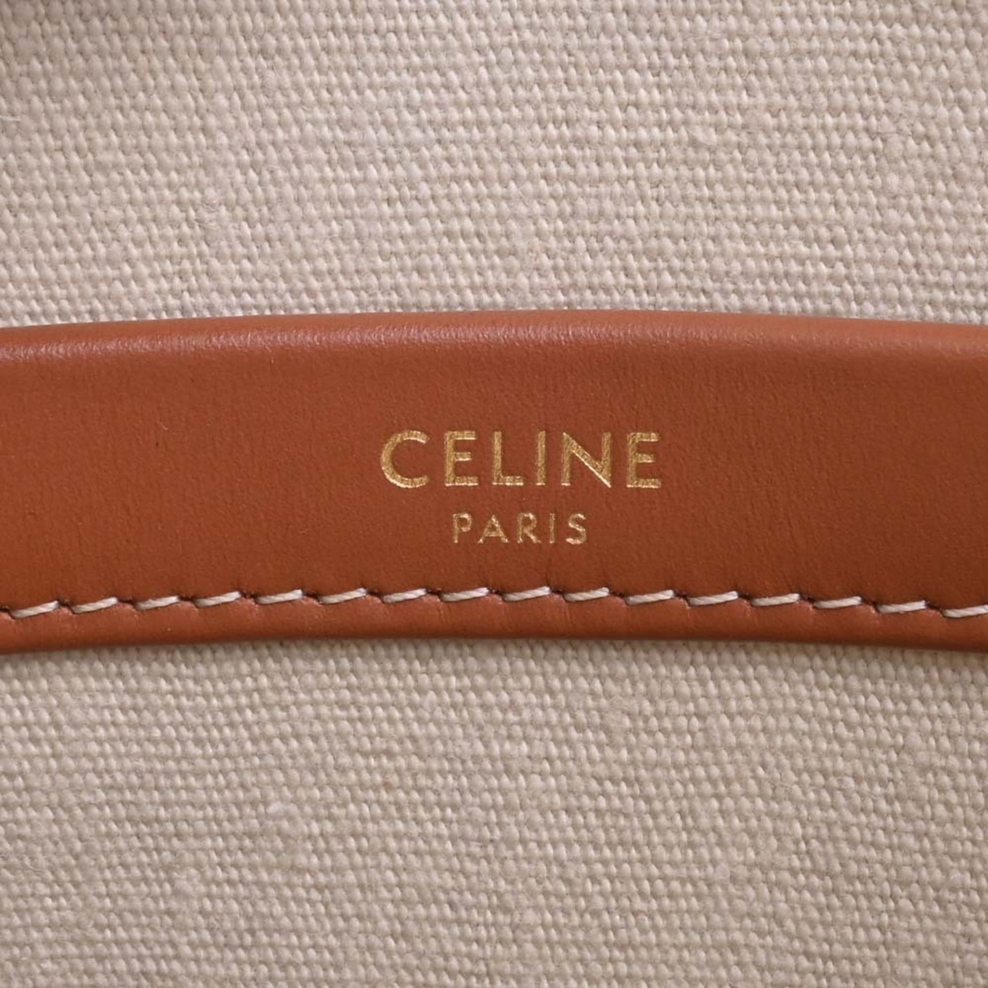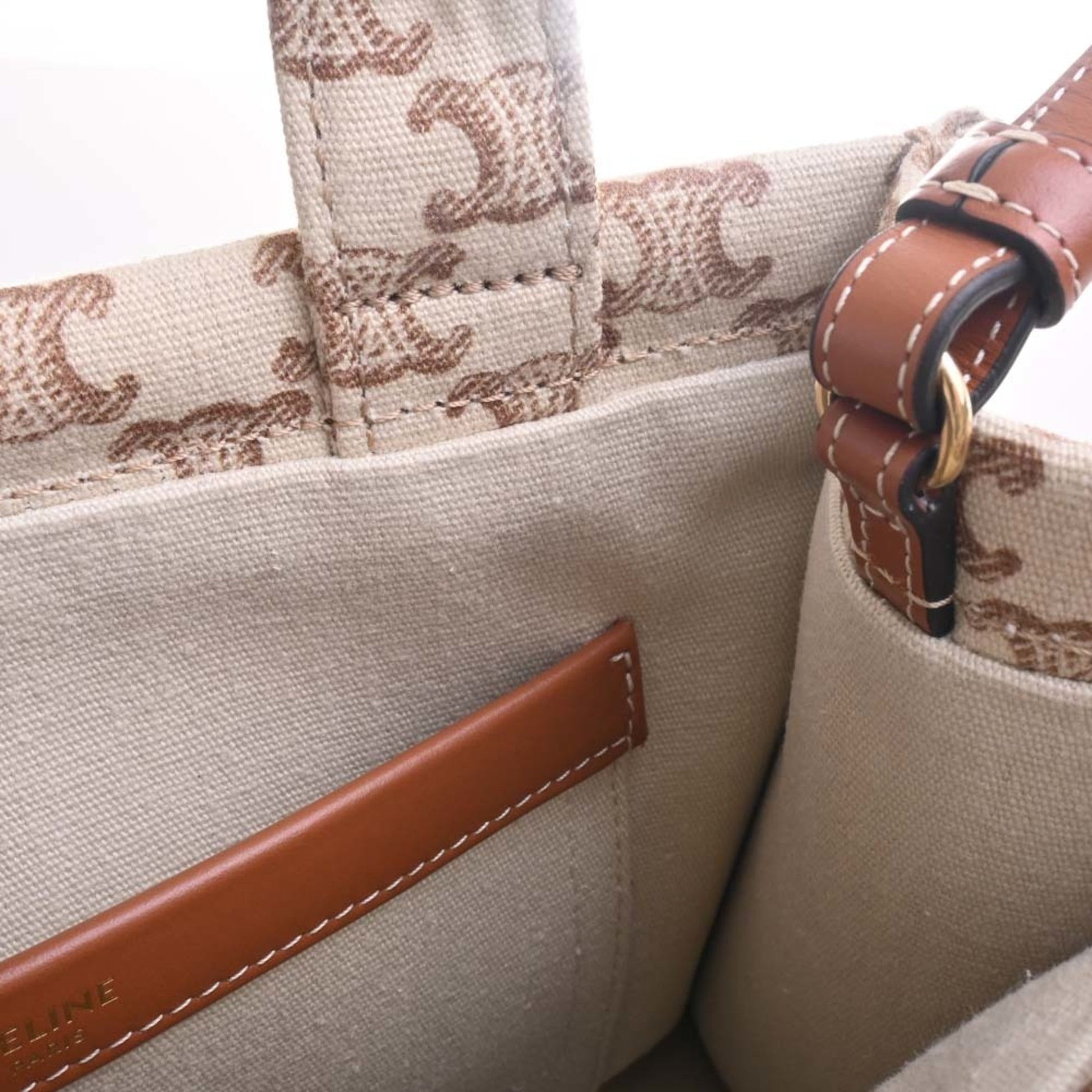Celine Small Hippo Tice Canvas Leather Triomphe Handbag Beige/Brown Women's
