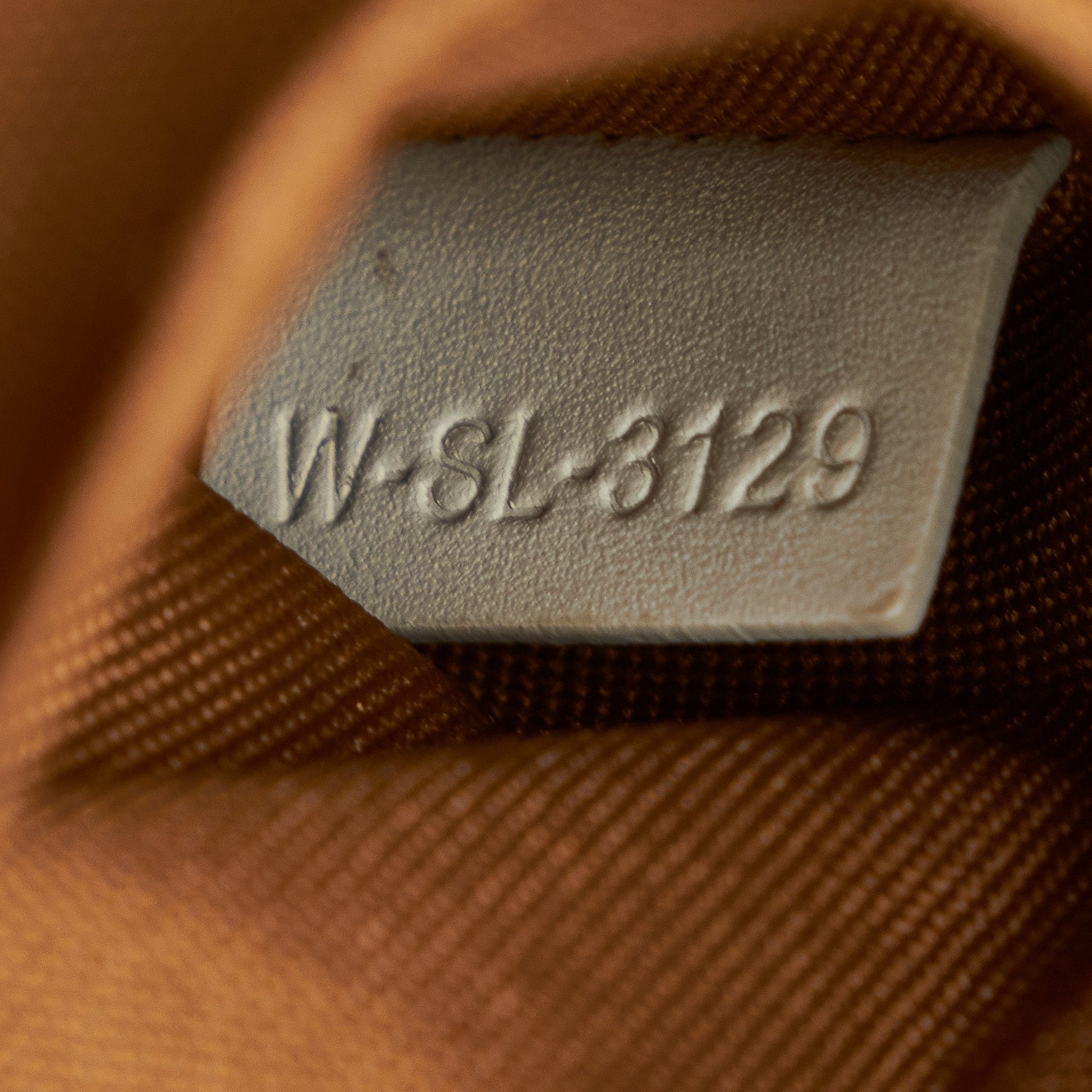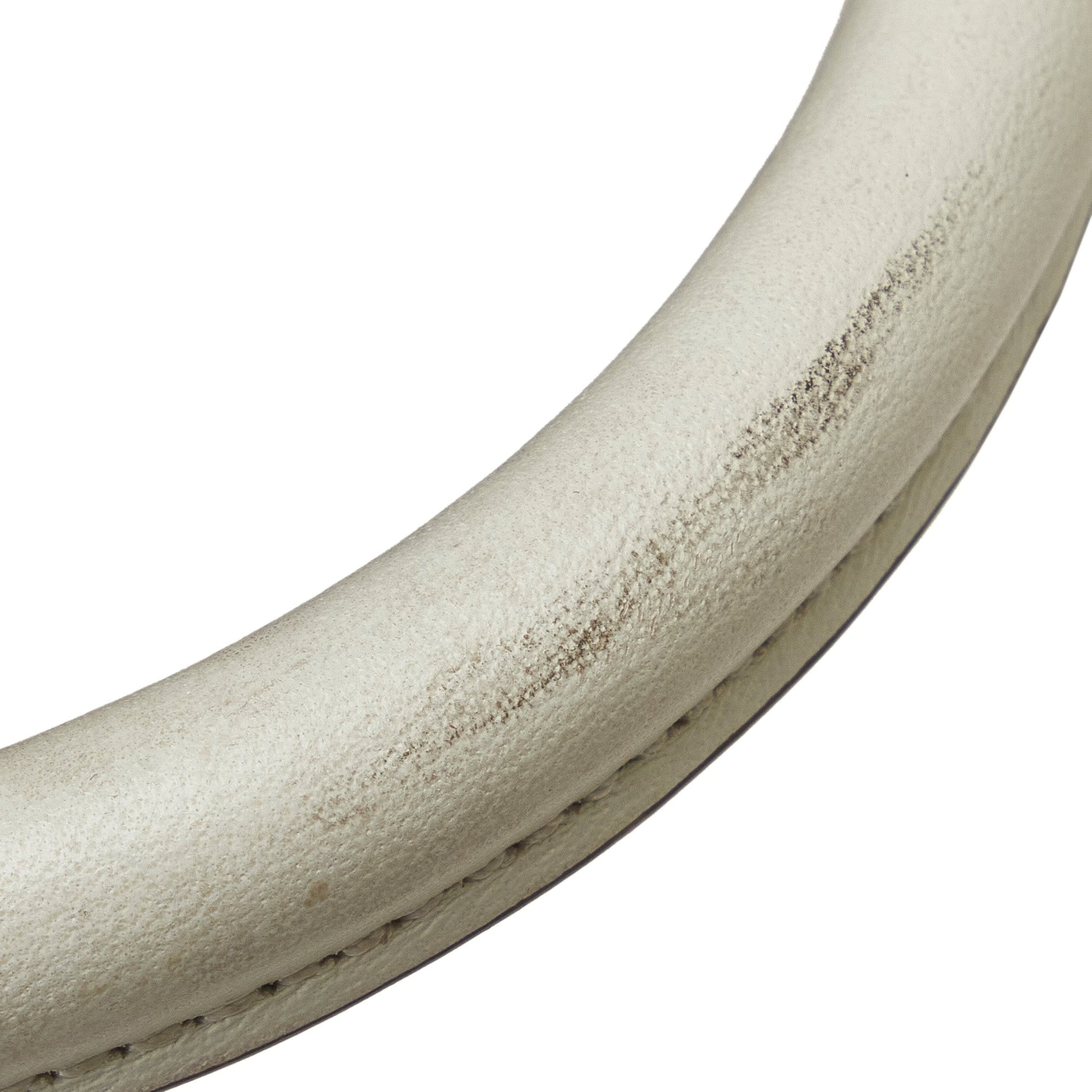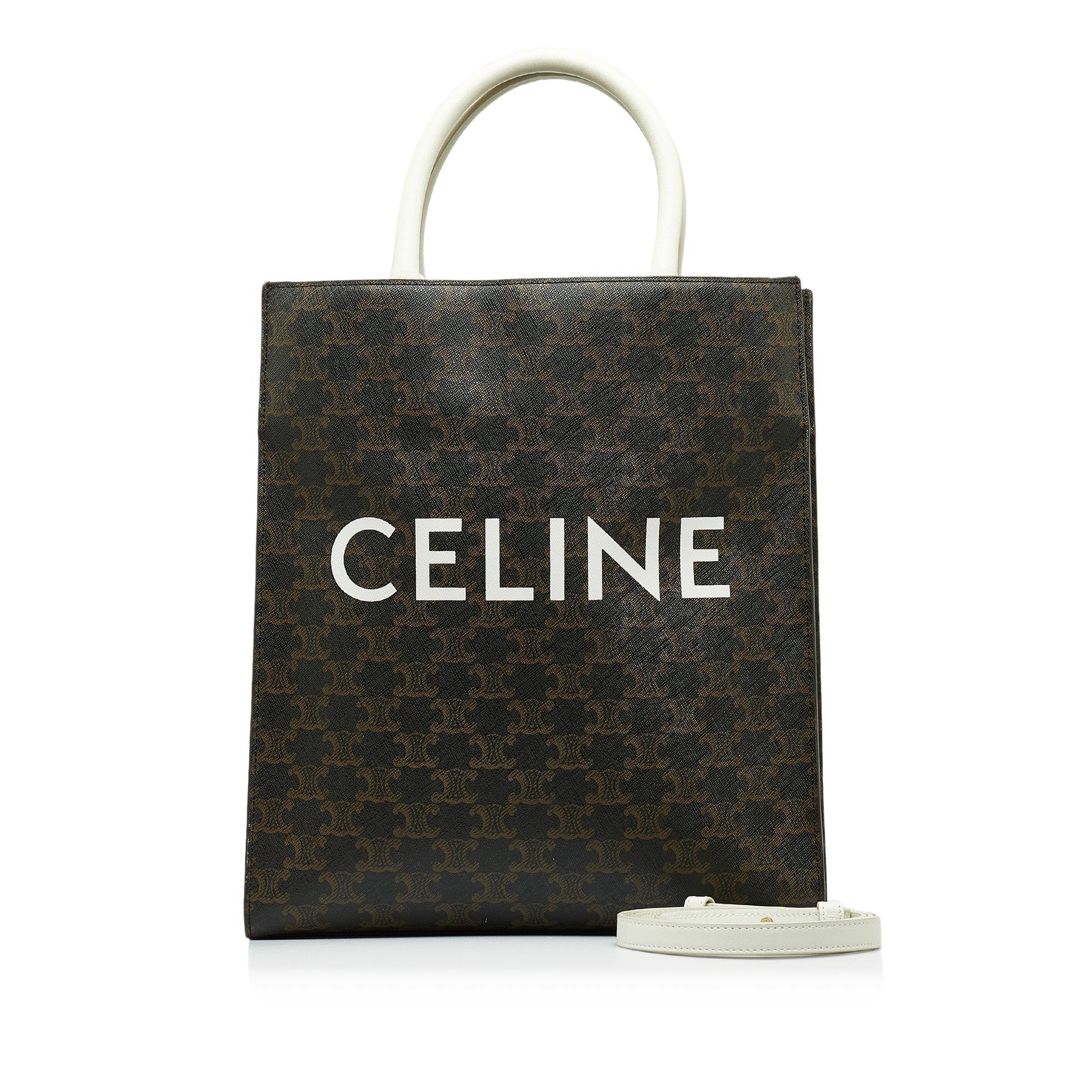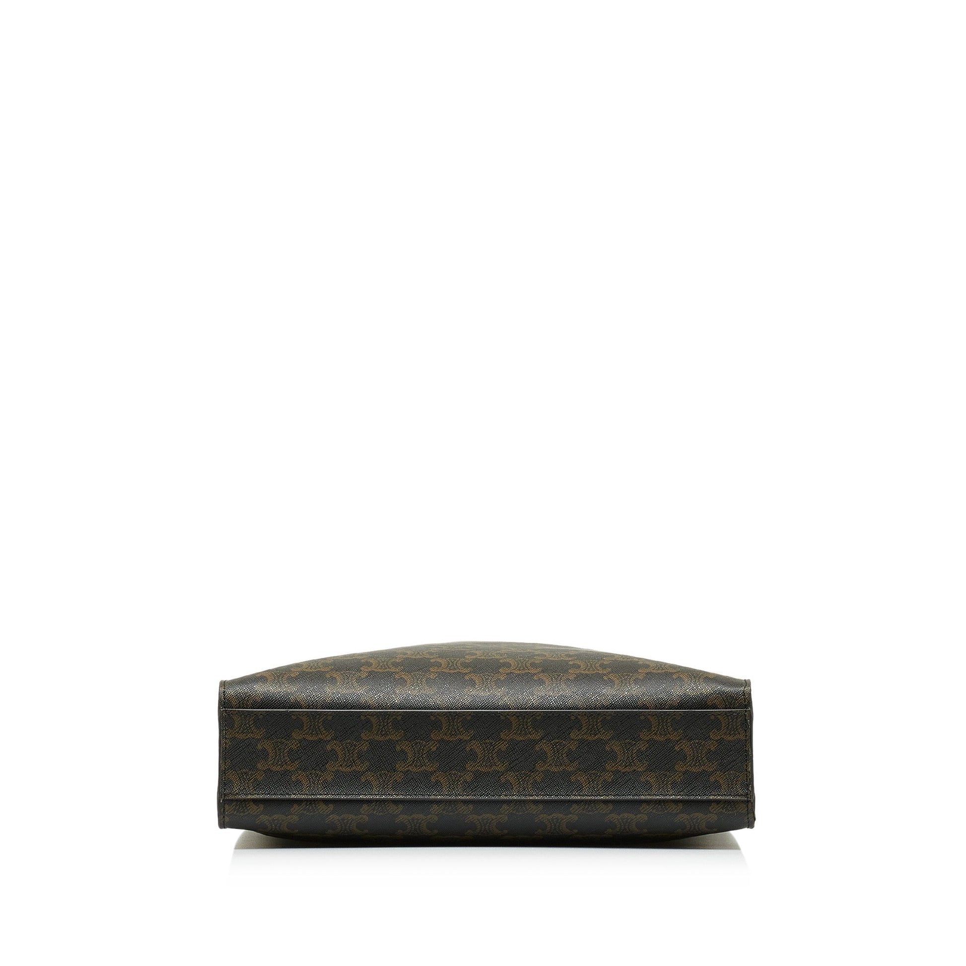 This satchel features a coated canvas body, rolled leather handles, a detachable flat leather strap, an open top, and an interior zip pocket.