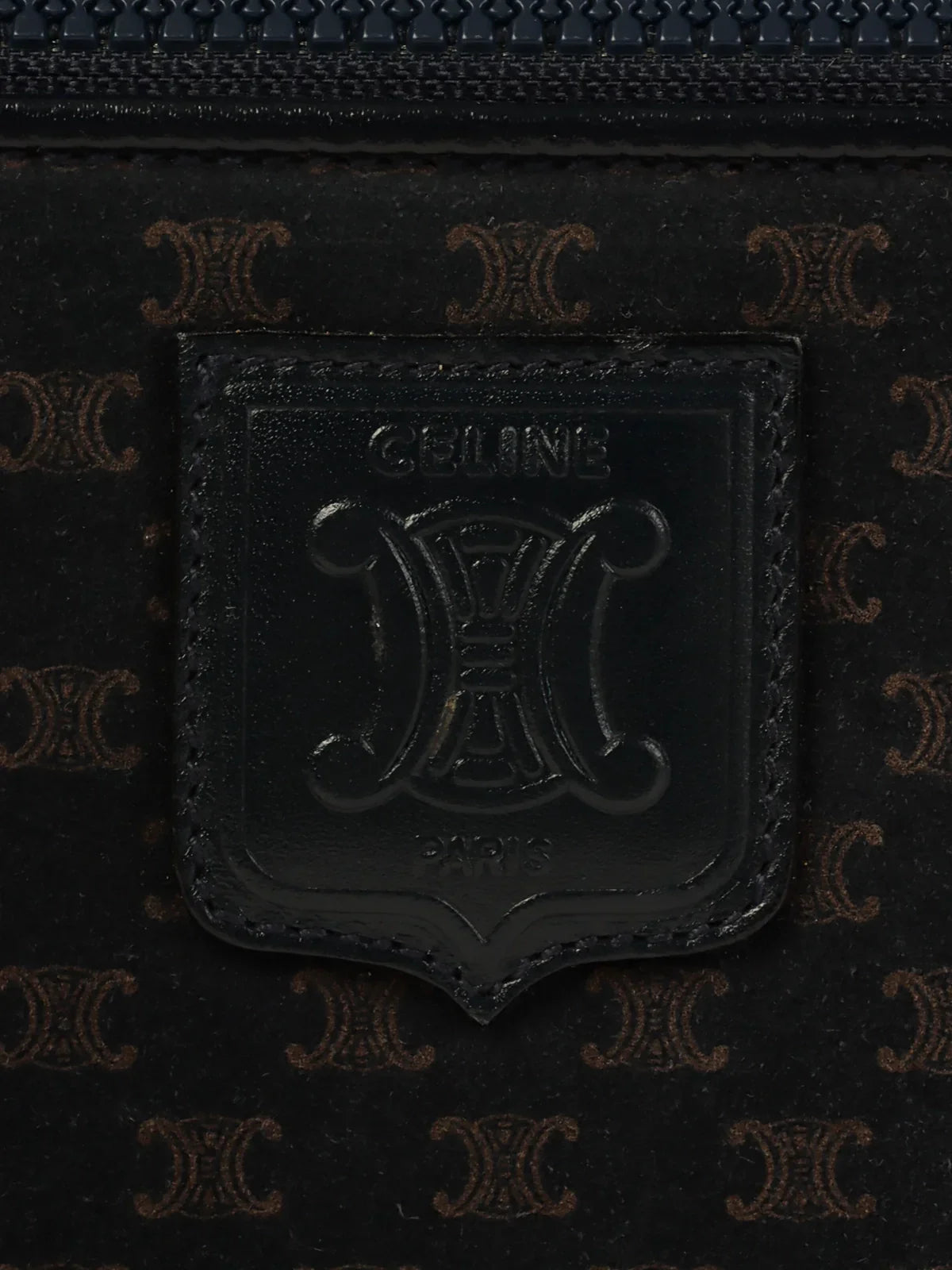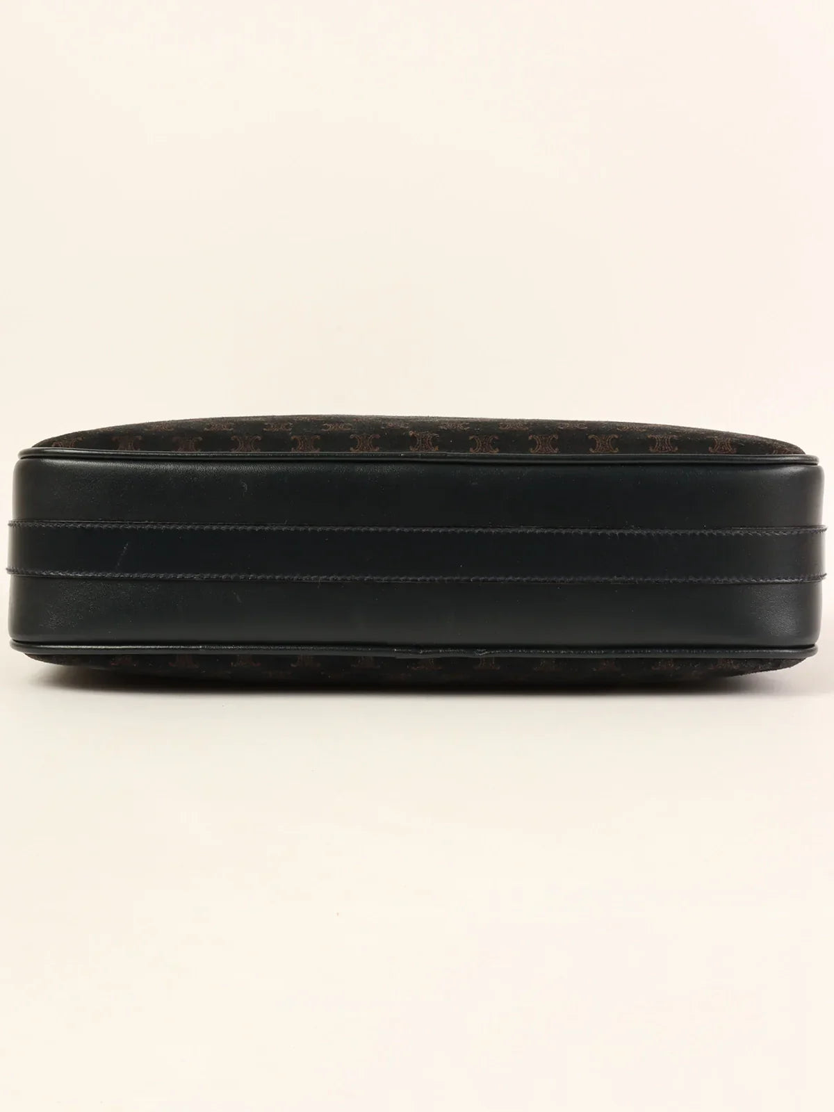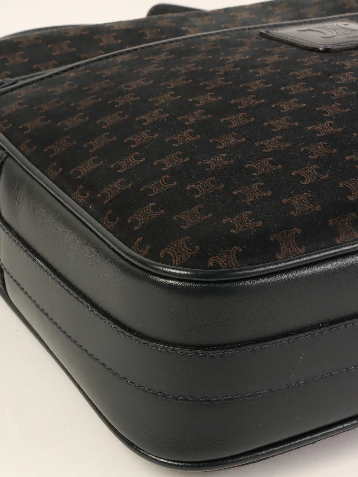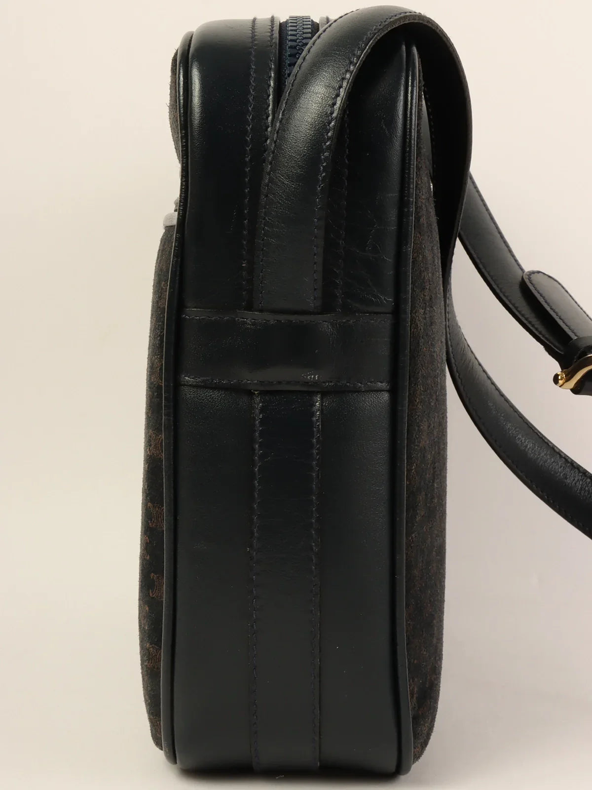 CELINE Suede Macadam Pattern Logo Embossed Shoulder Bag Navy
