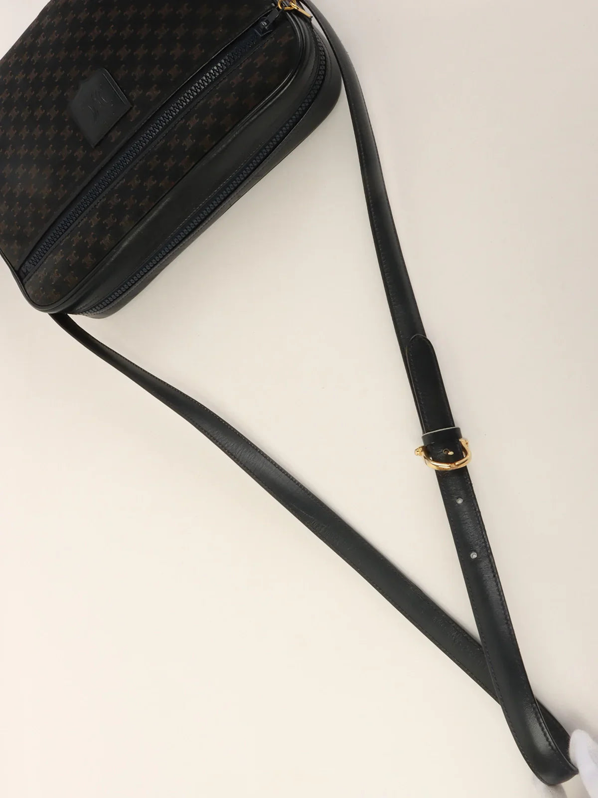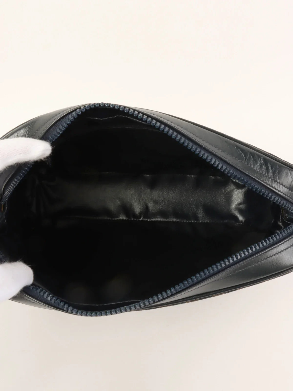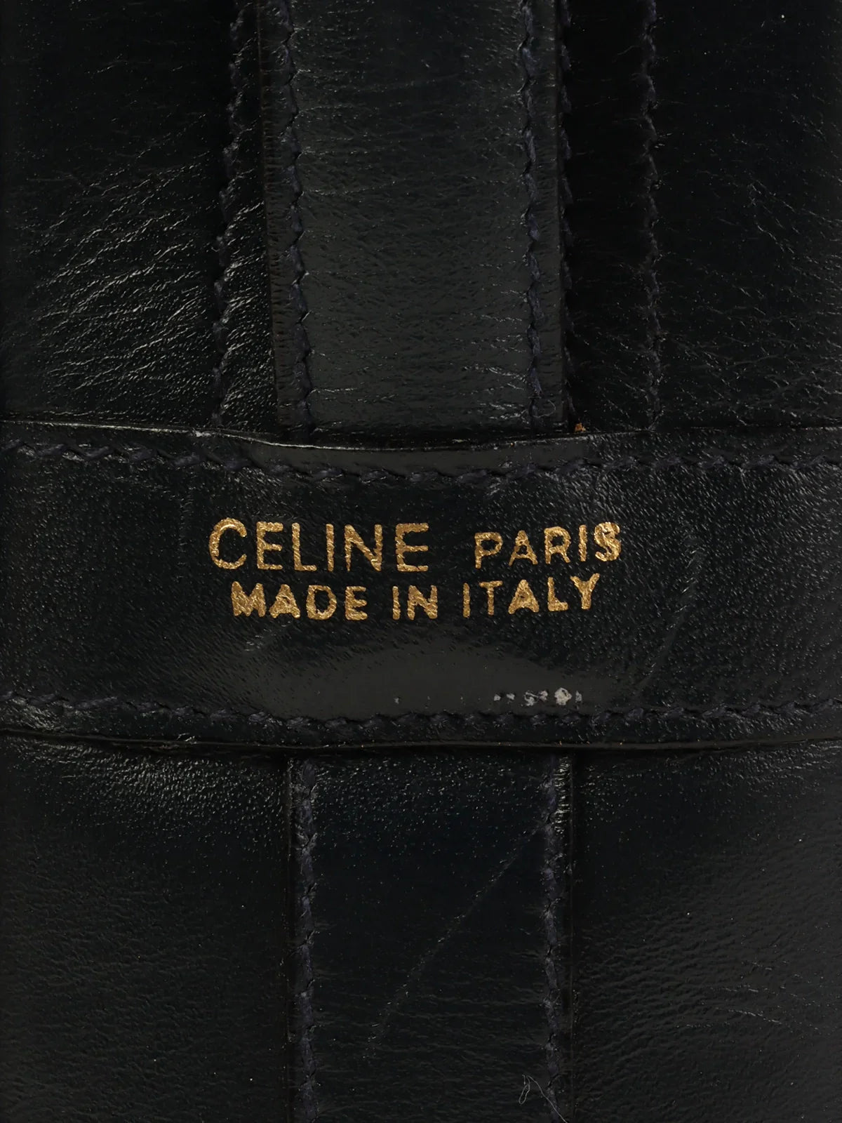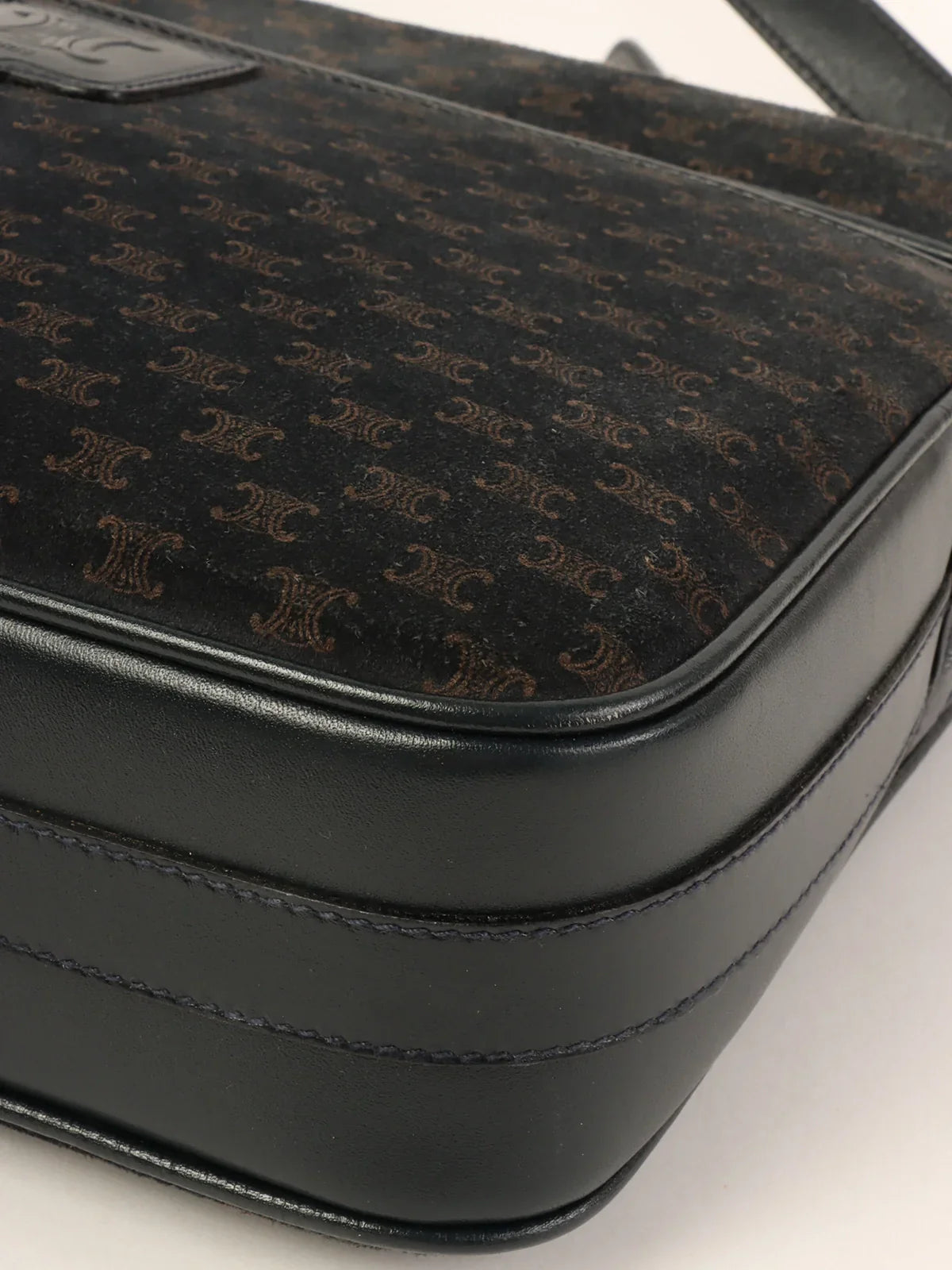 CELINE Suede Macadam Pattern Logo Embossed Shoulder Bag Navy