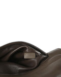 The bag features flap top with flip-turn lock closure , one internal compartment with top zip closure, one rolled leather handle, one snap button on each side, back zipped pocket, interior lined with brown leather, inner flap with two slip pockets, and silver tone hardware.