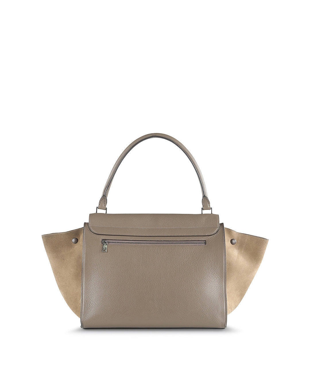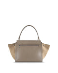 This Celine trapeze bag is crafted from smooth taupe leather body and flap and taupe suede wings.
