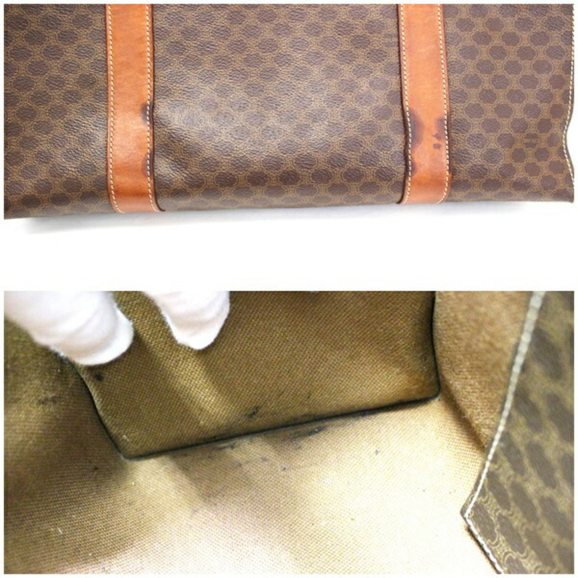 Celine Tote Bag Shoulder PVC x Leather Dark Brown Macadam Pattern Celine Women's Men's Accepted Old