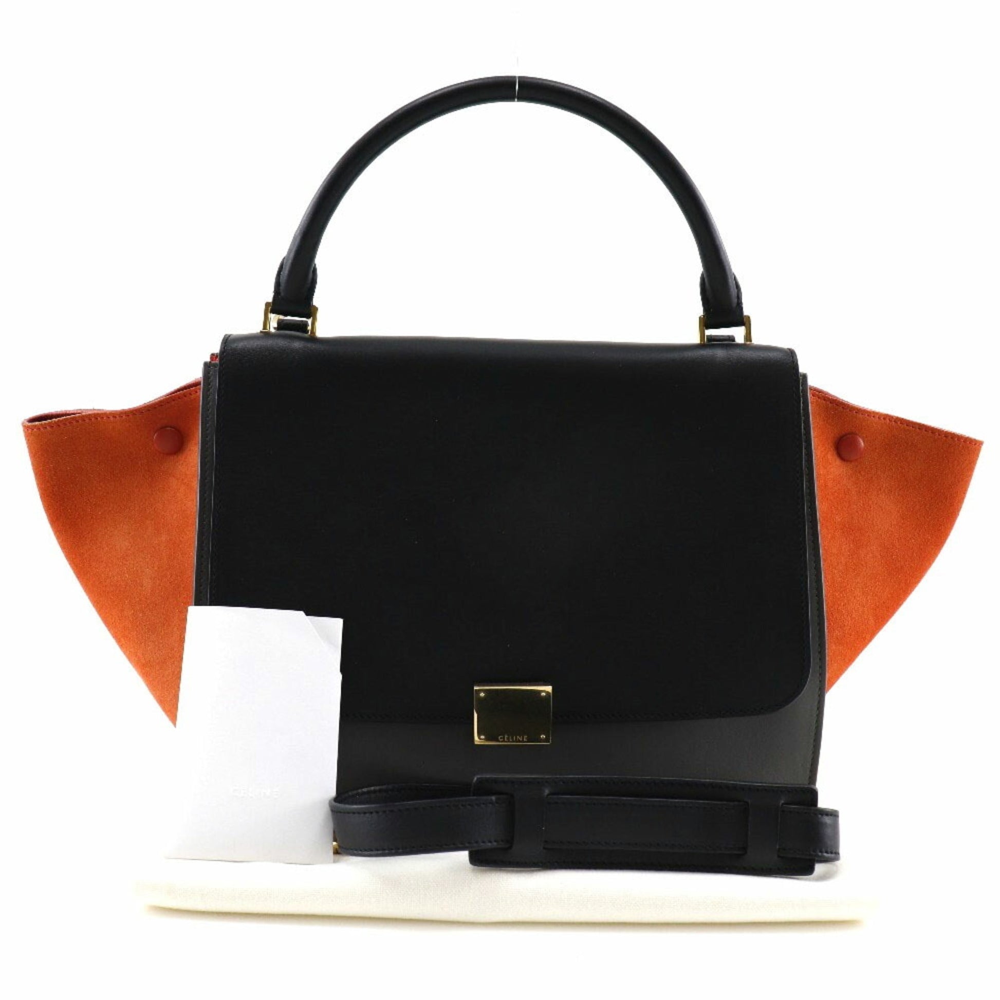 Celine Trapeze Handbag 2WAY Shoulder 169543PTA.25FO Calf x Suede Black/Gray/Orange Ladies