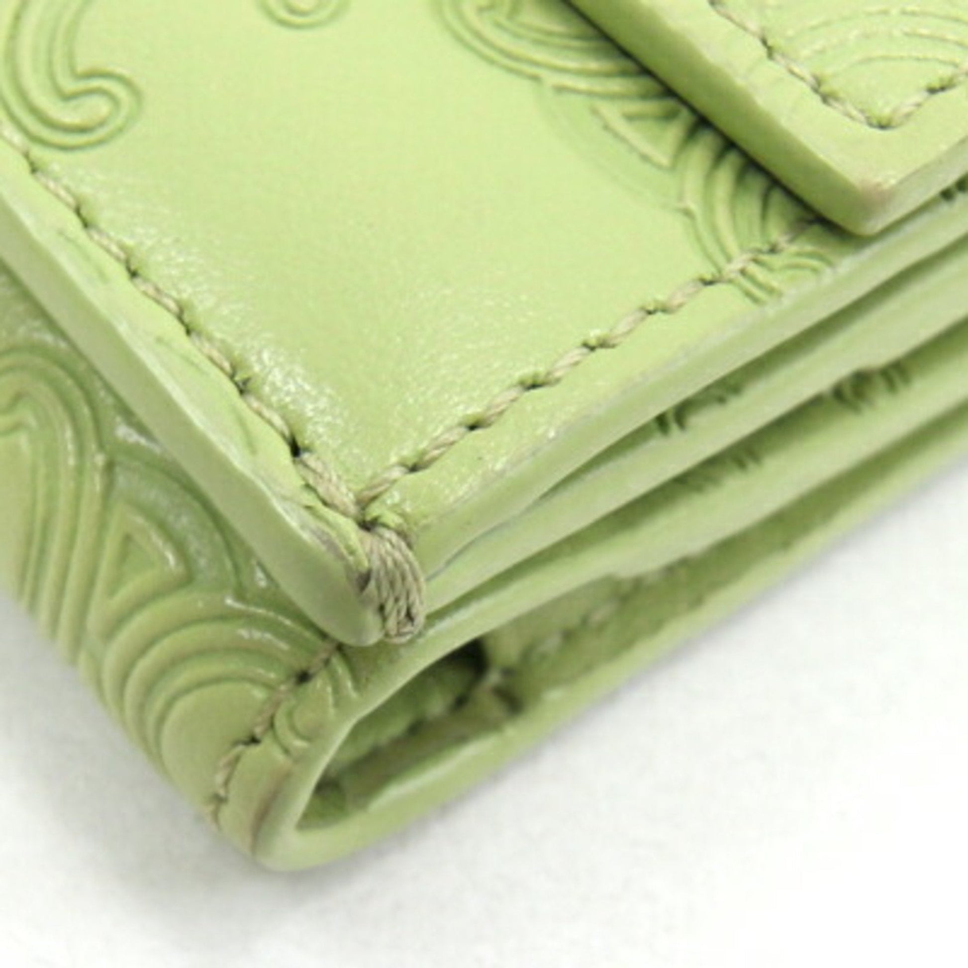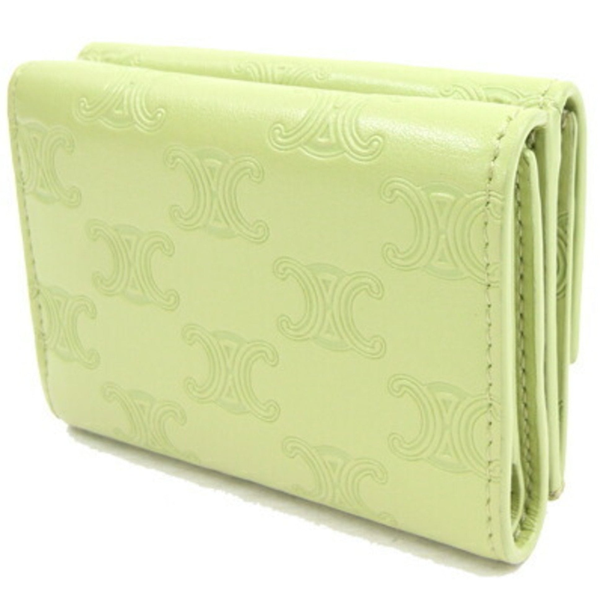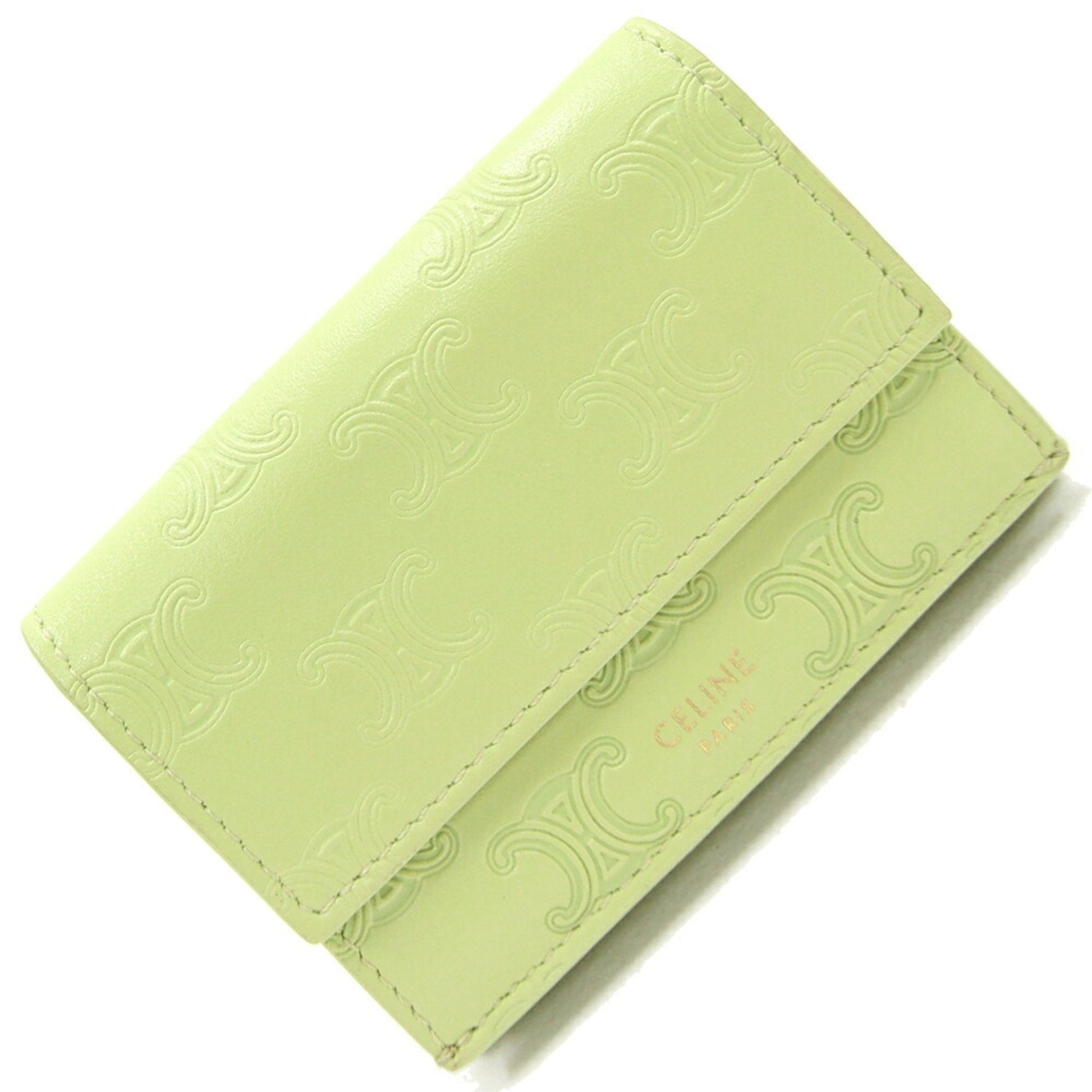 Celine Trifold Wallet Triomphe Embossed Fold 10E603BFU Light Green Leather Women's
