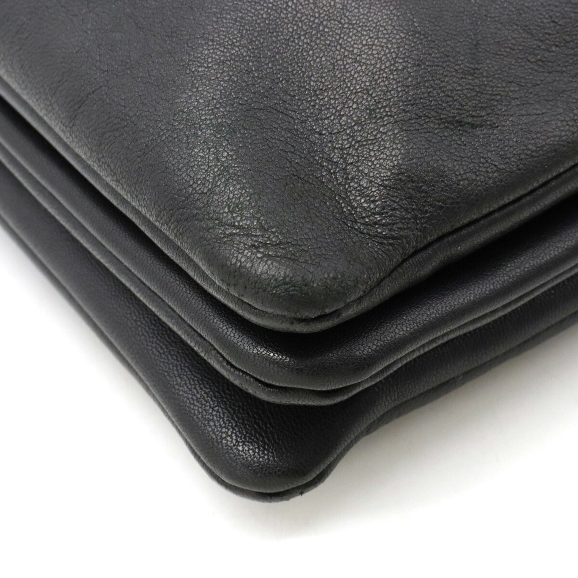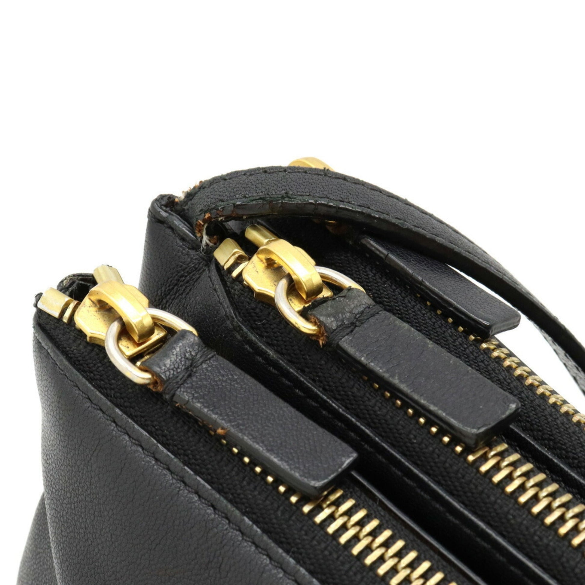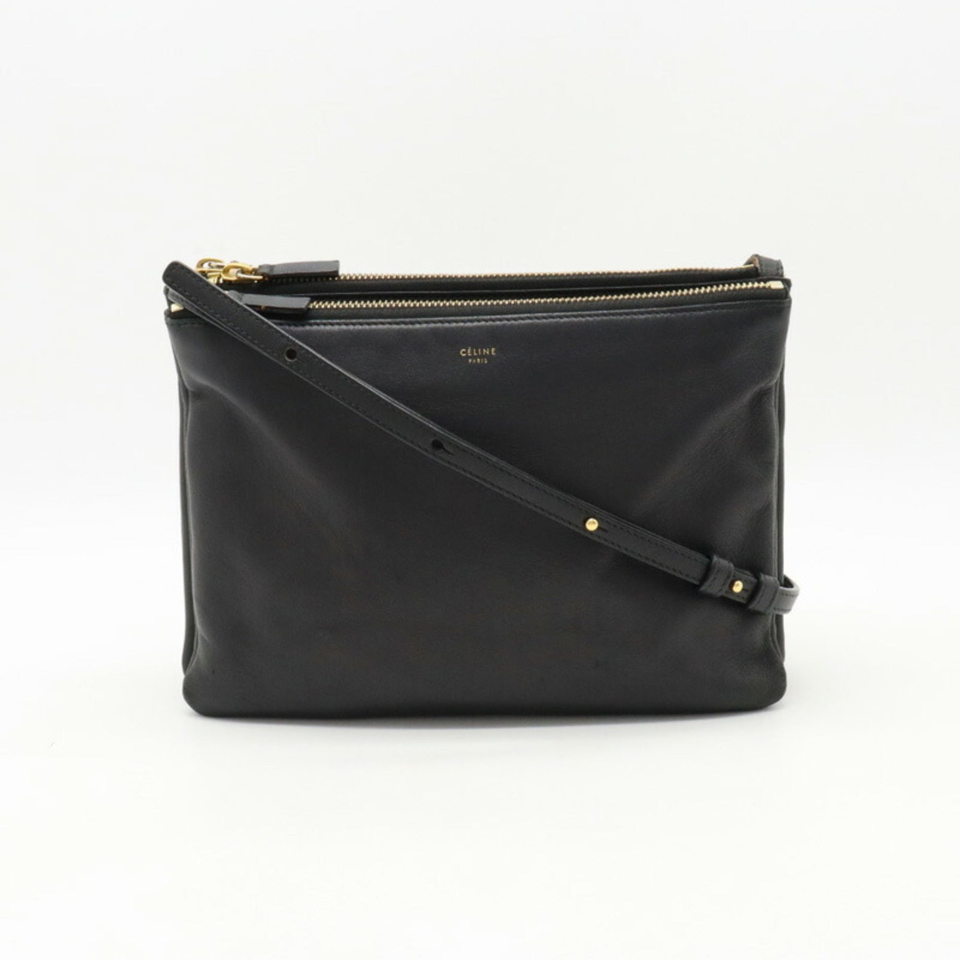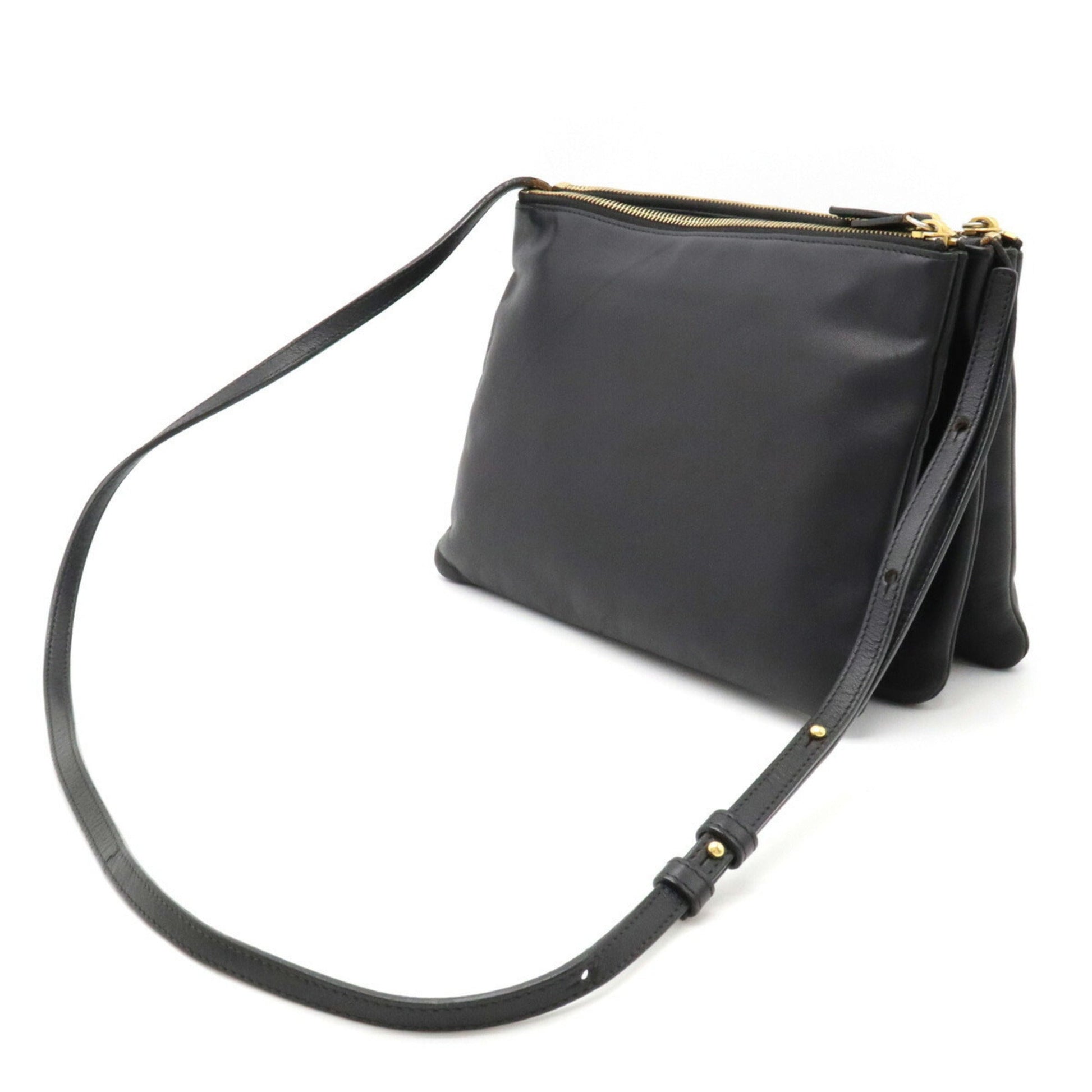 Celine Trio Large Shoulder Bag Pochette Pouch Lambskin Leather Black 171453