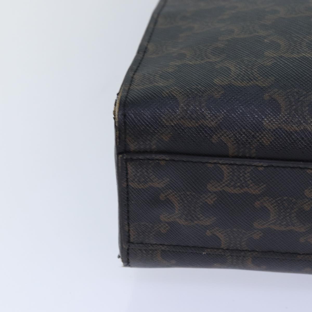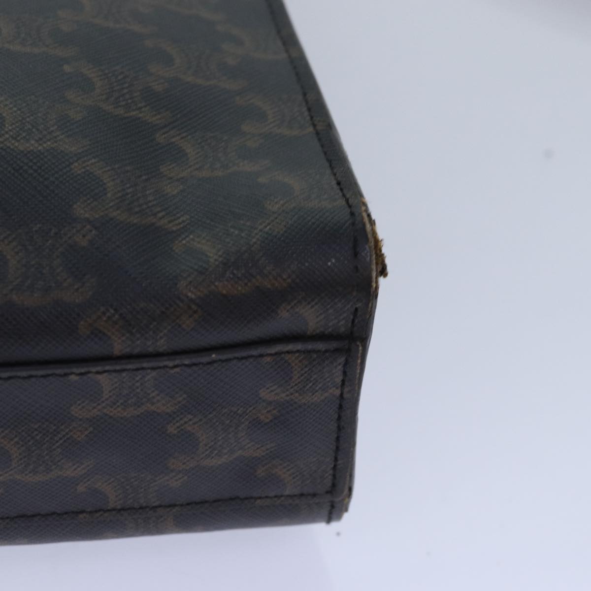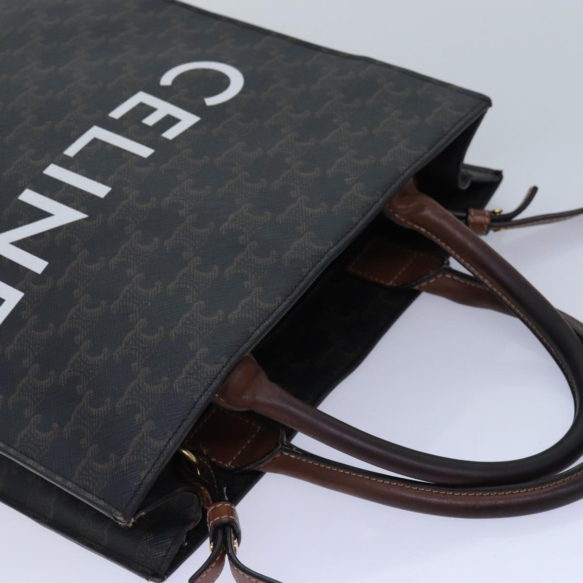 CELINE Triomphe Canvas Hand Bag PVC 2way Black Gold Auth 85281