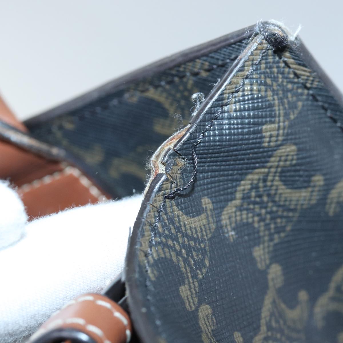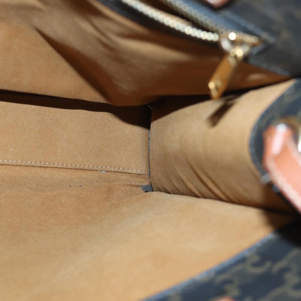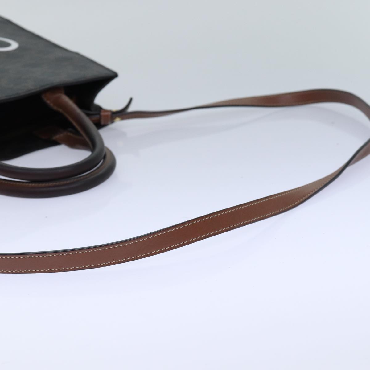 CELINE Triomphe Canvas Hand Bag PVC 2way Black Gold Auth 85281
