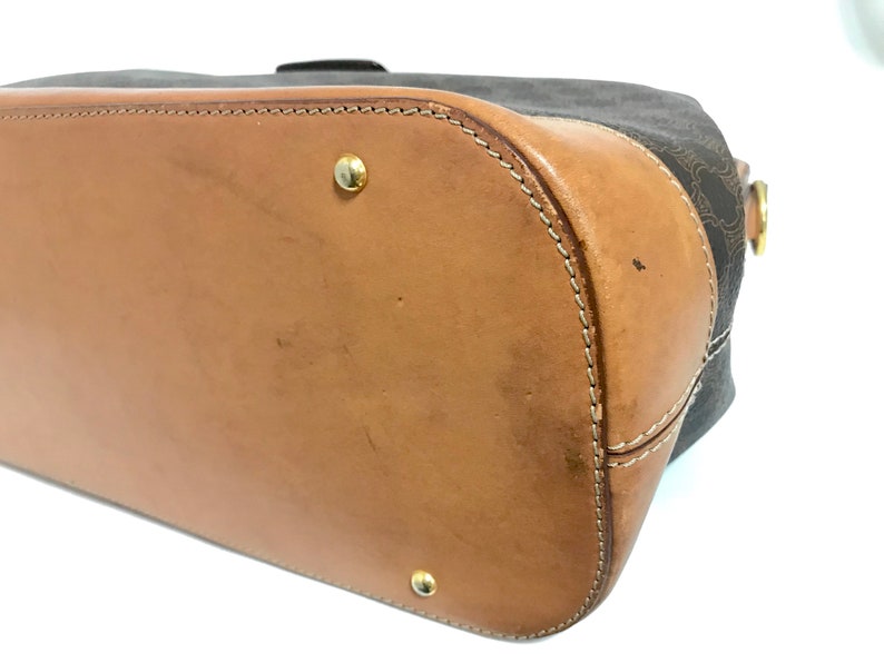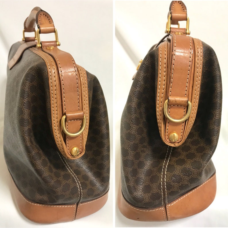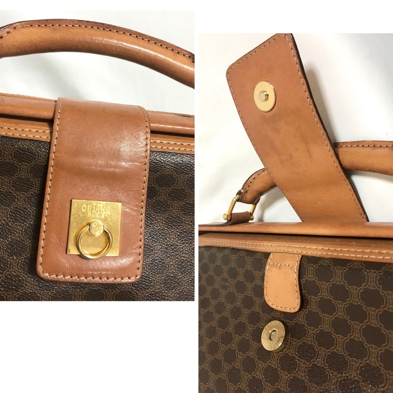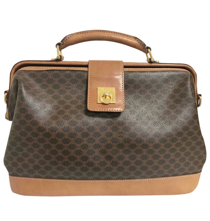 Celine Vintage brown macadam blaison doctor bag with tanned brown leather trimming