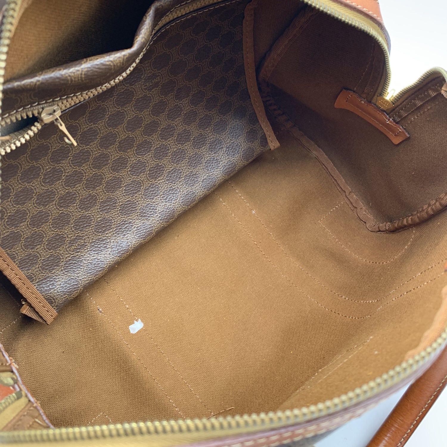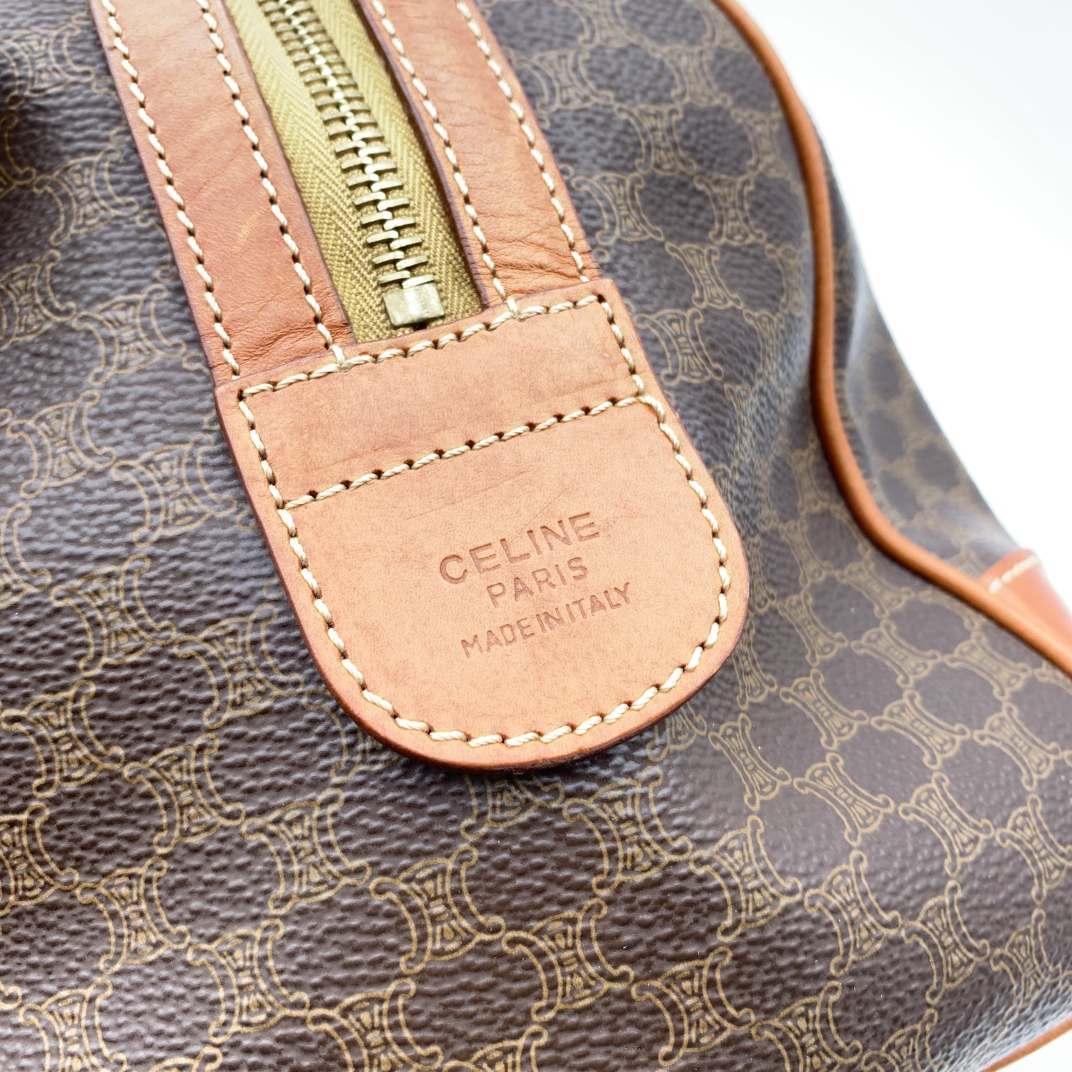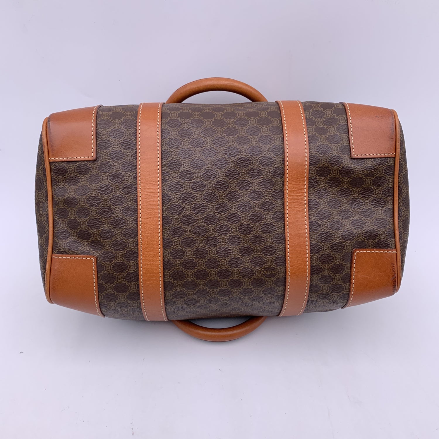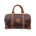 Celine Brown 'Macadam' Canvas Duffel Bag/Boston Bag With Genuine Leather Handles And Trim.