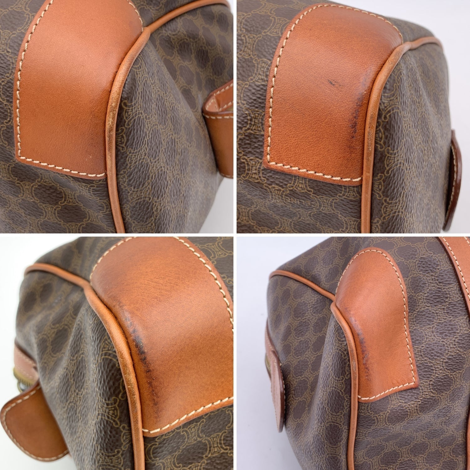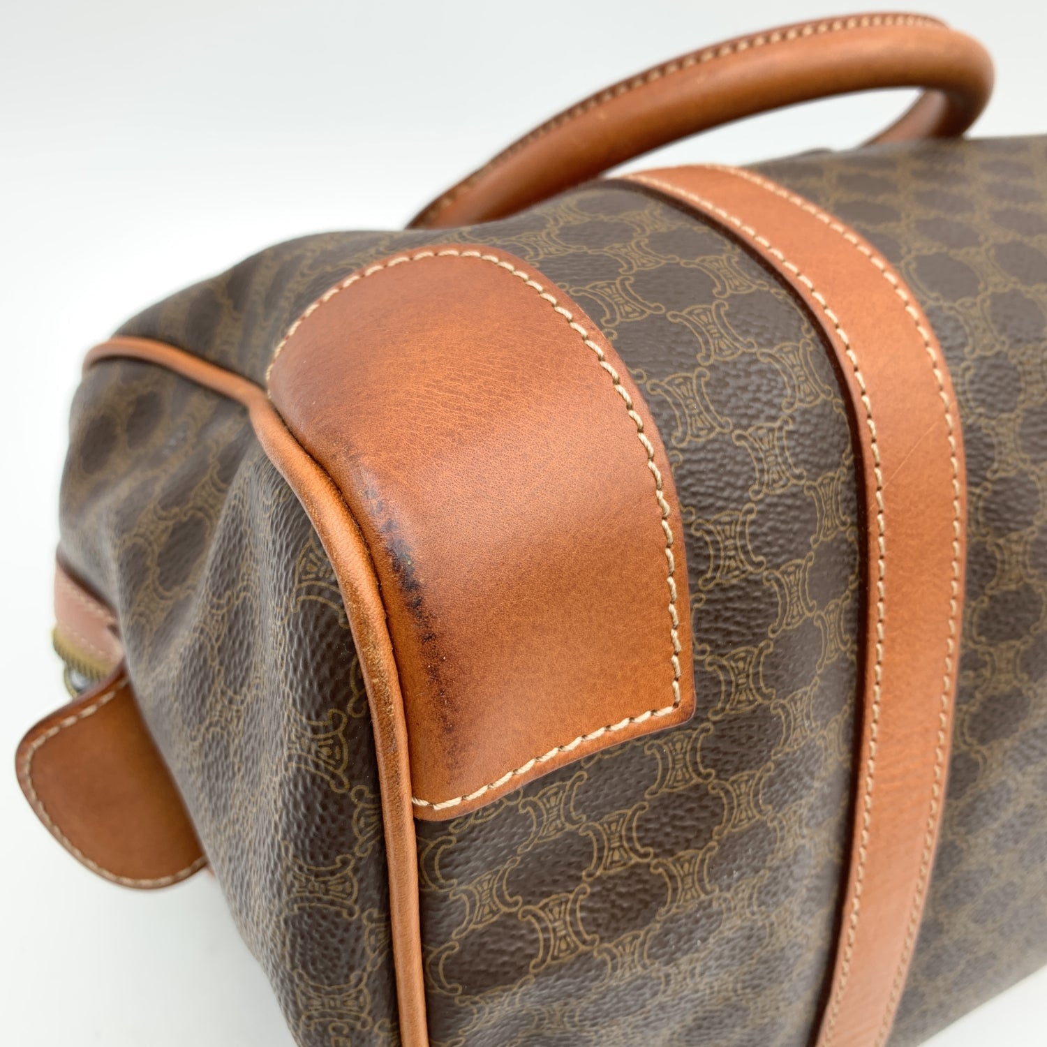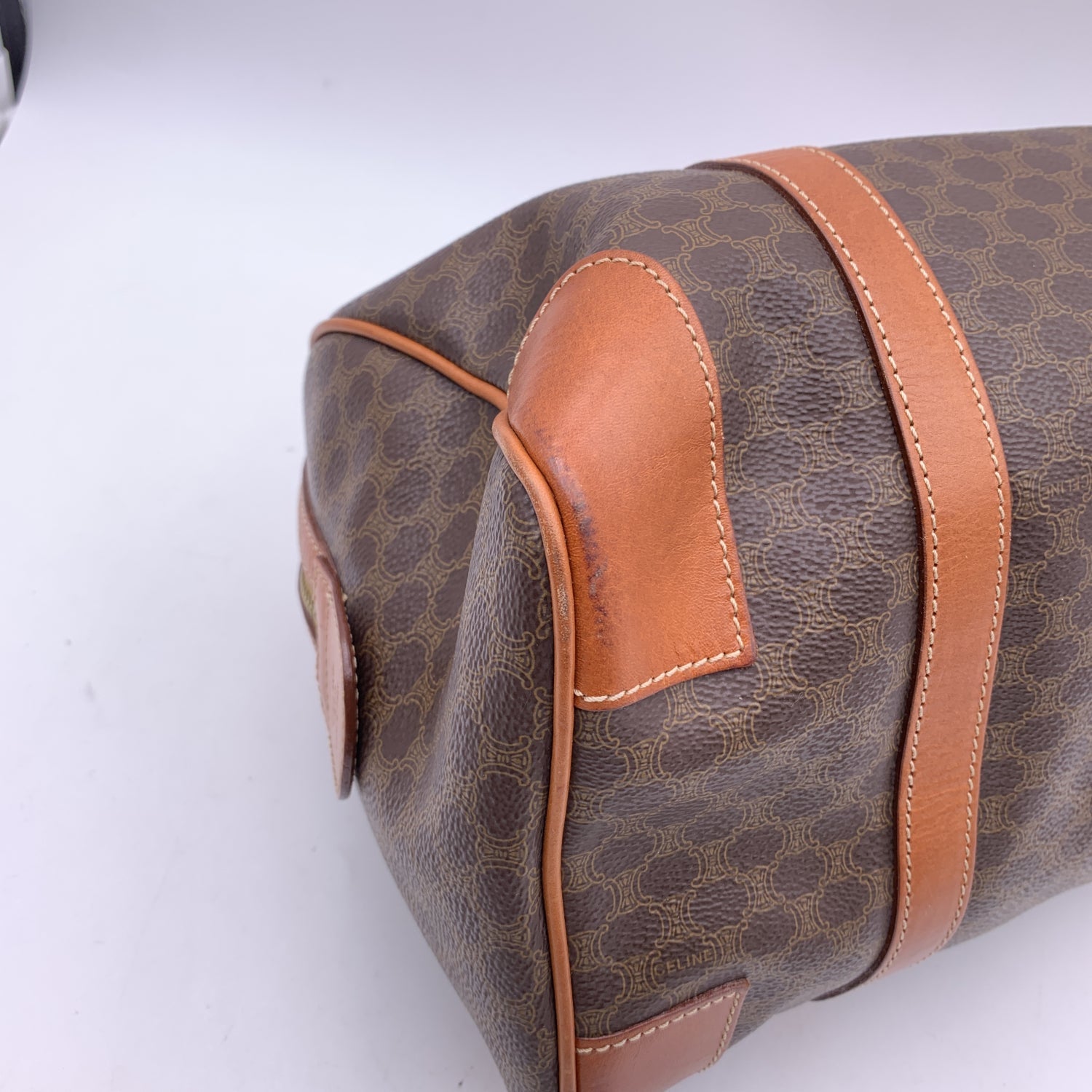 Celine Brown 'Macadam' Canvas Duffel Bag/Boston Bag With Genuine Leather Handles And Trim.