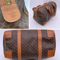 Celine Vintage Brown Macadam Canvas Handbag Boston Bag