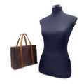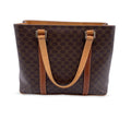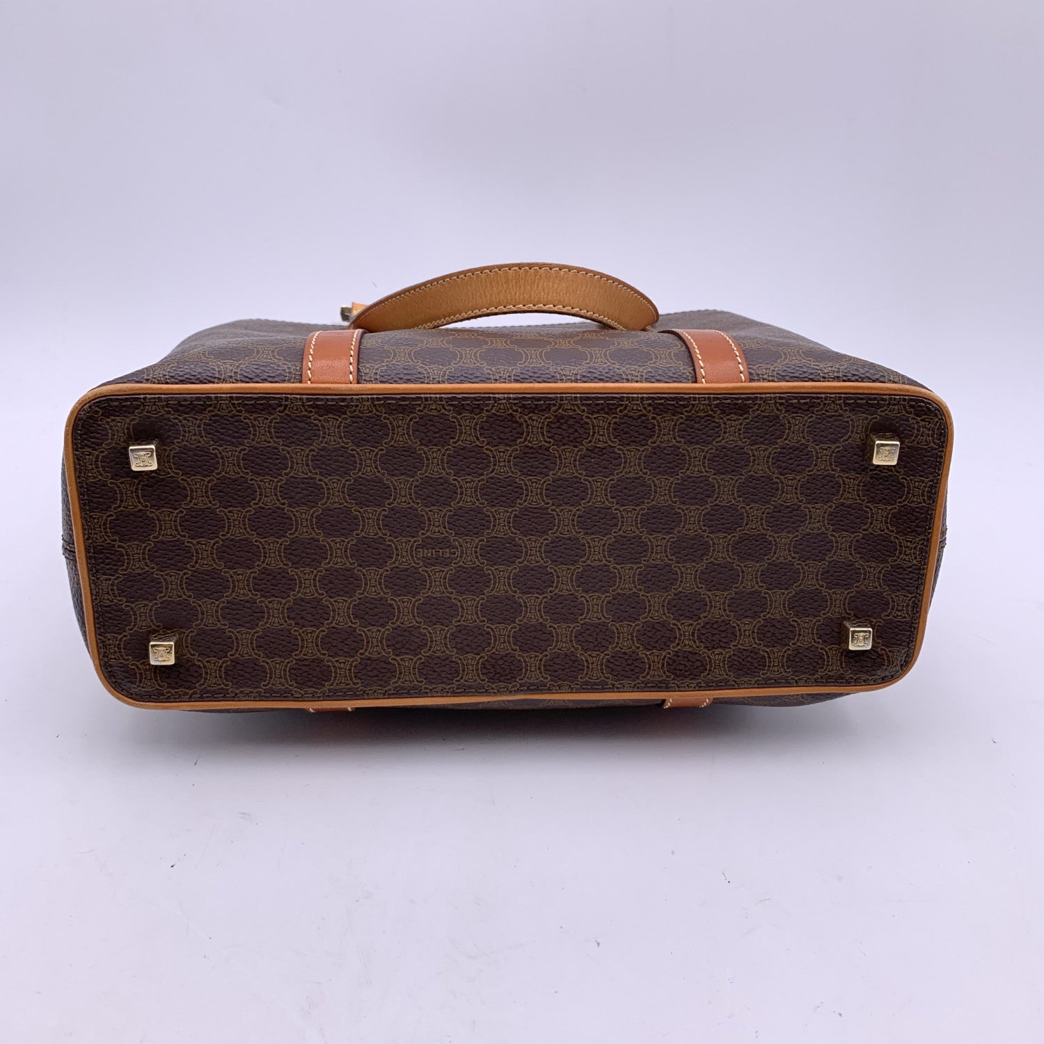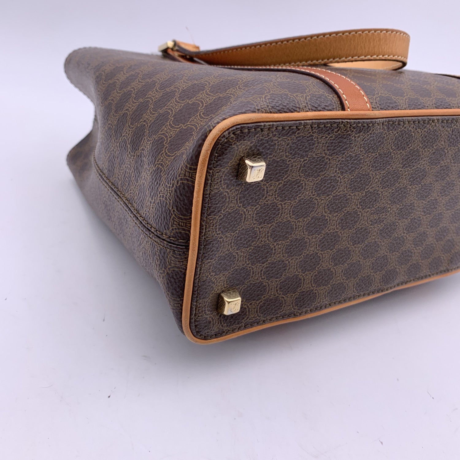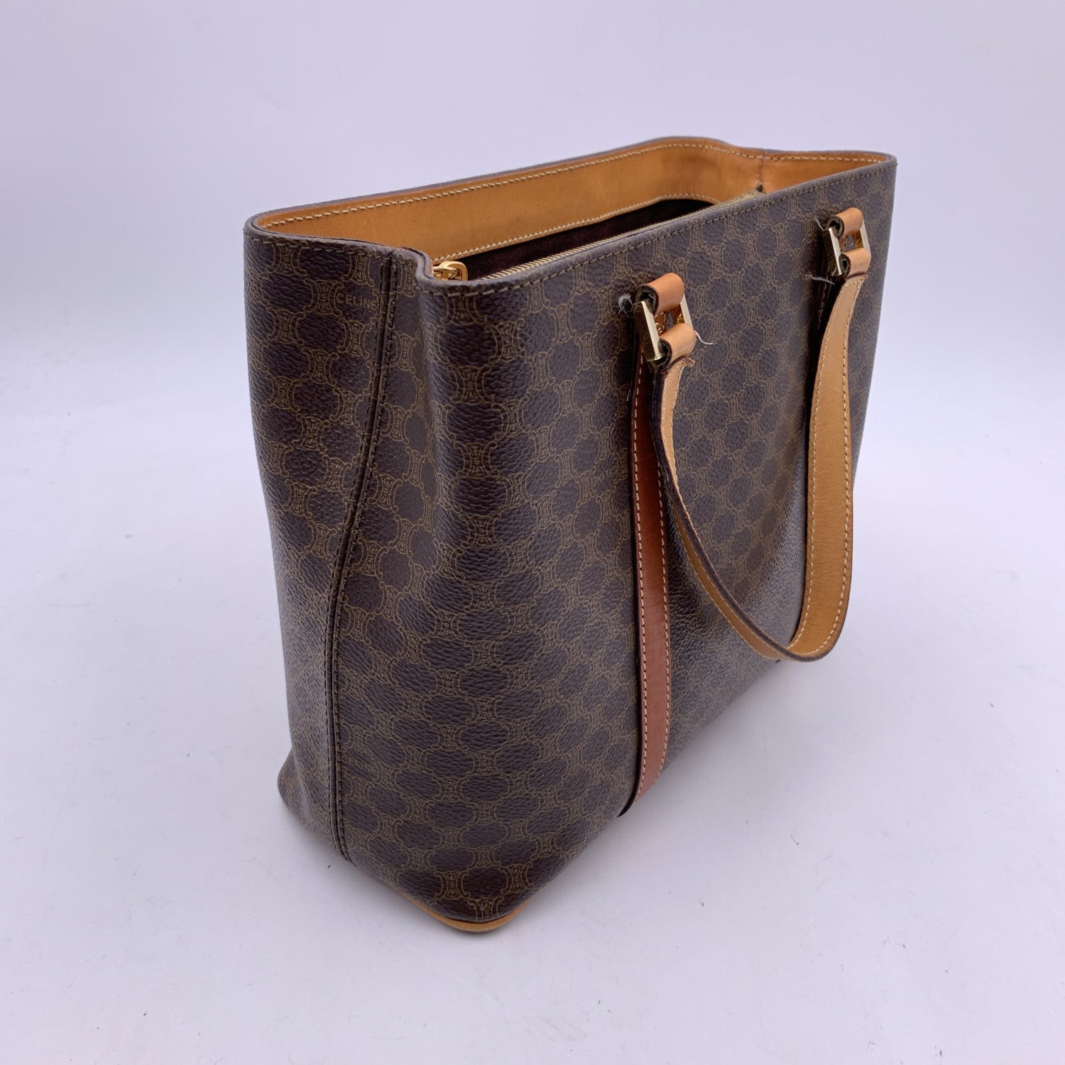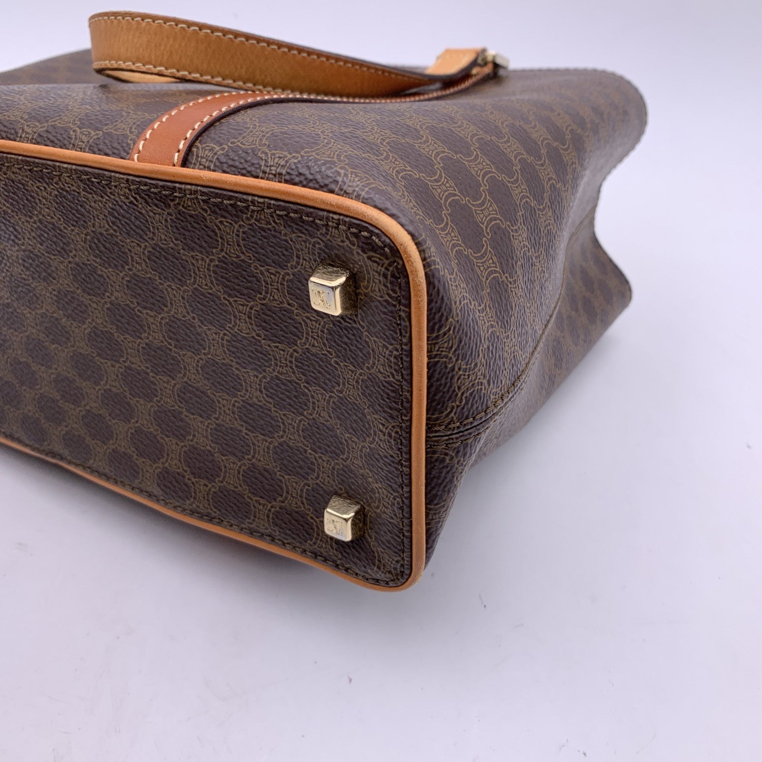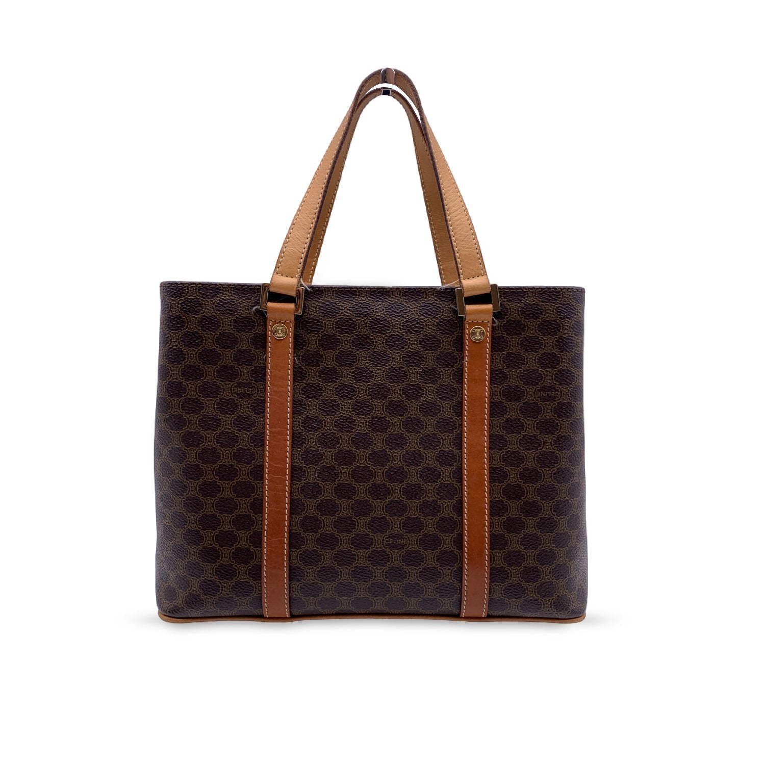 Celine Brown 'Macadam' Canvas Small Tote Bag With Genuine Leather Handles And Trim.