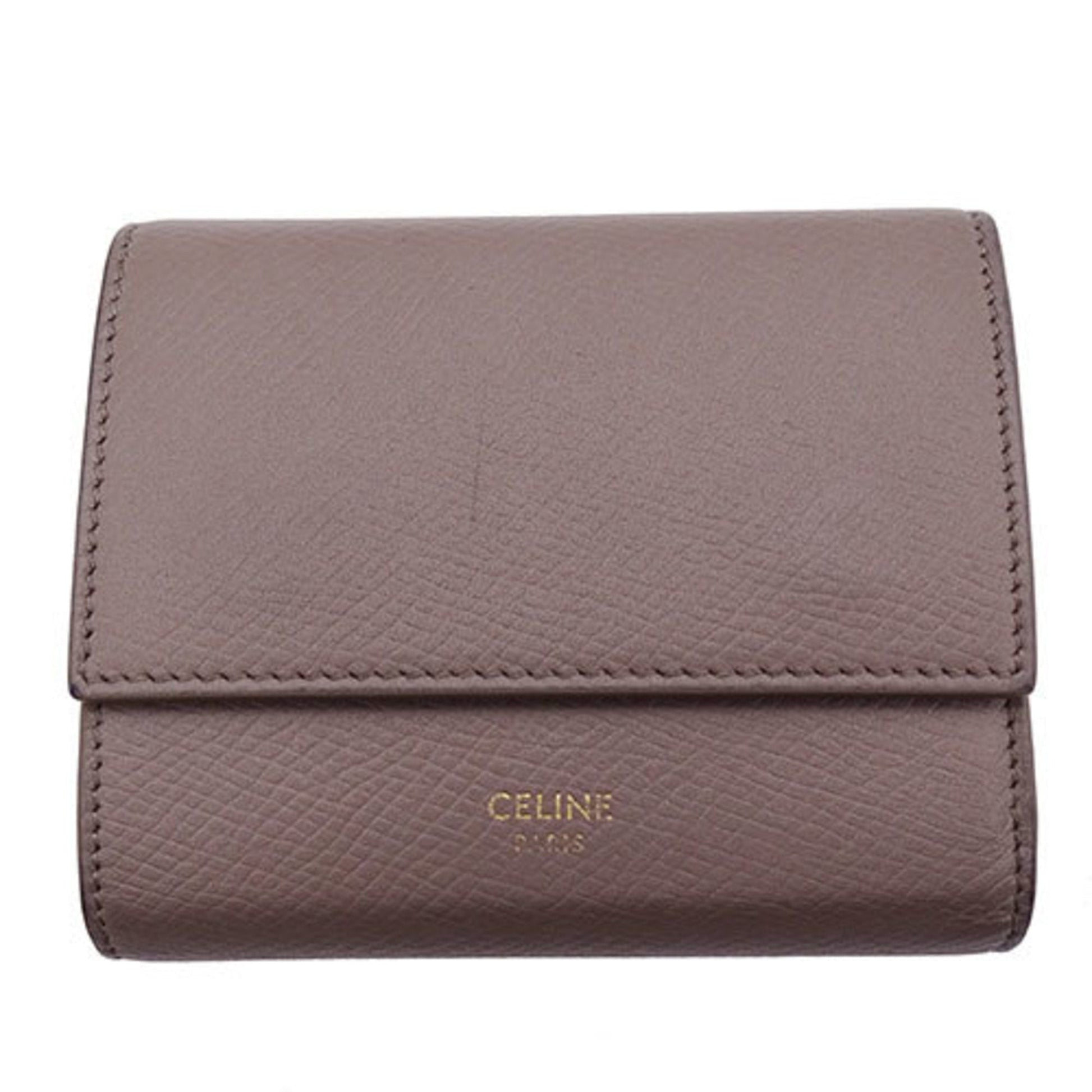 Celine Wallet Women's Bifold Leather Small Trifold Greige