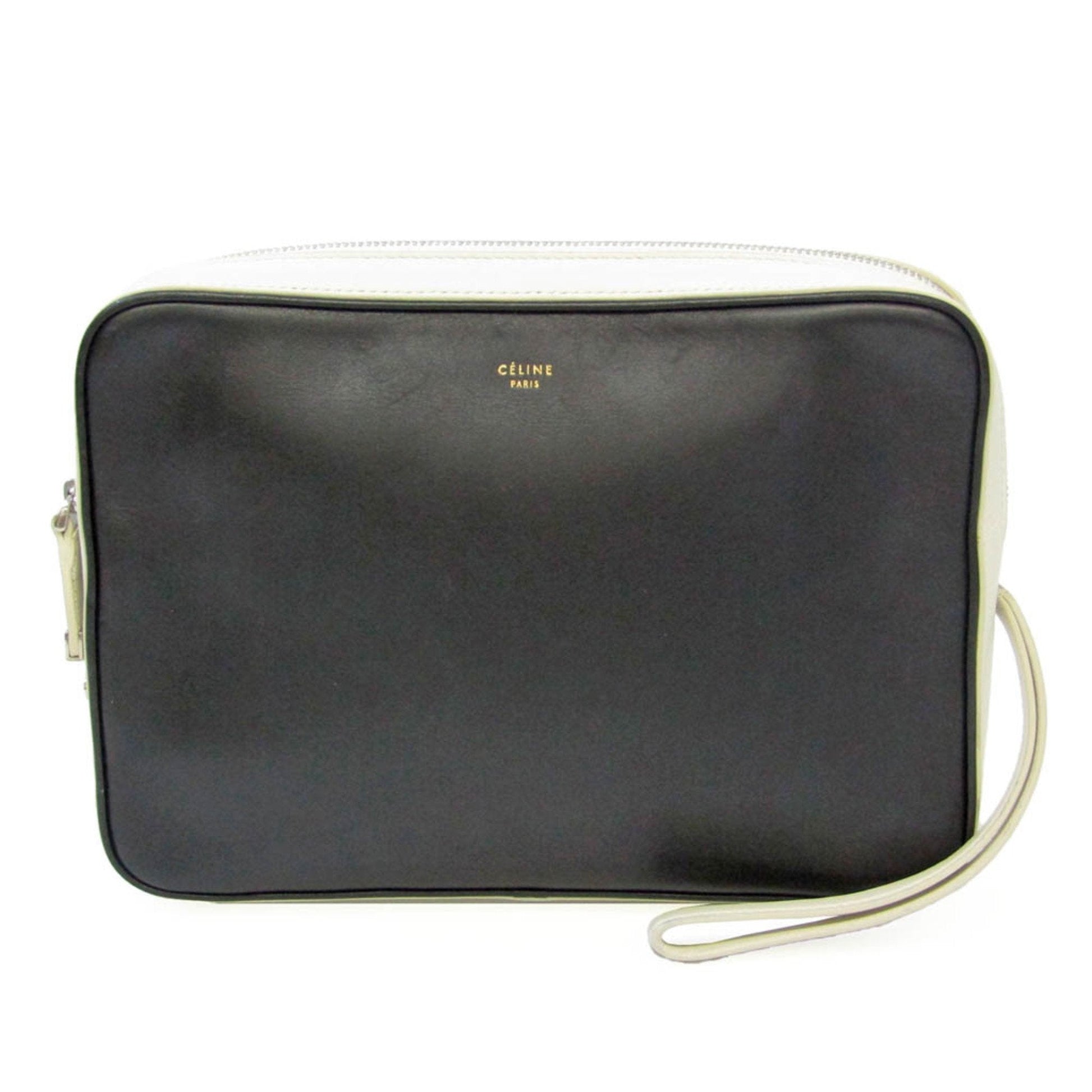 Celine Women's Leather Clutch Bag Black,Off-white