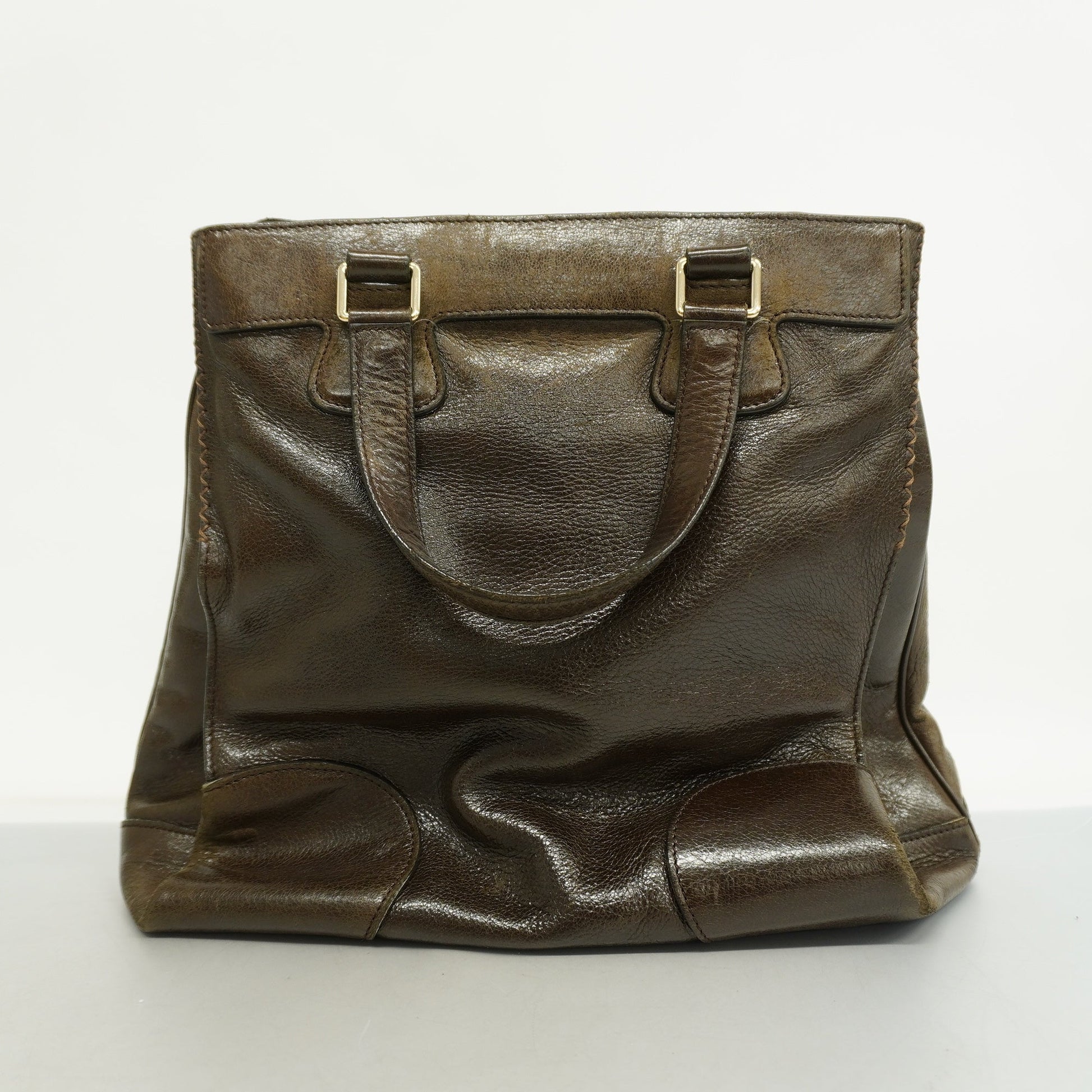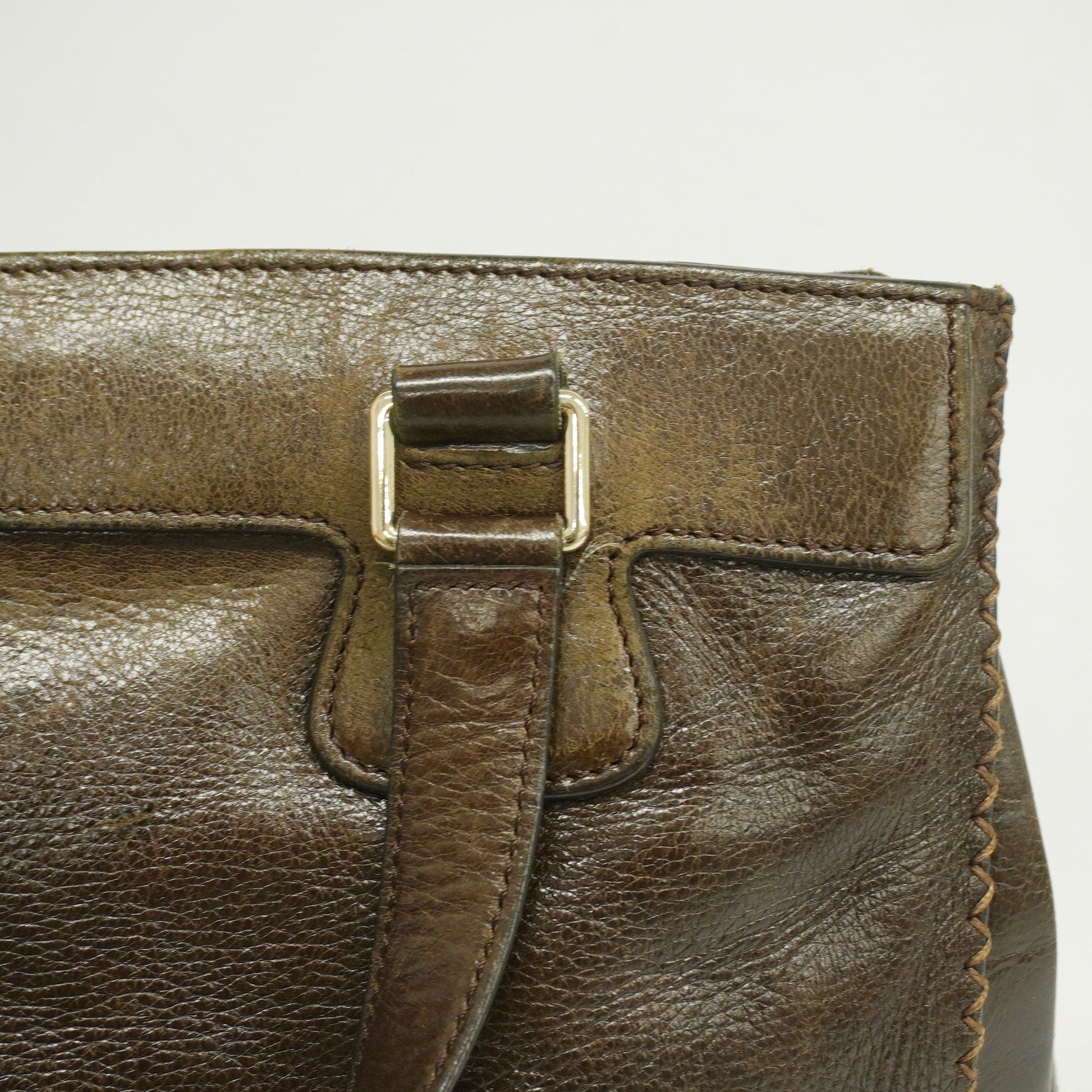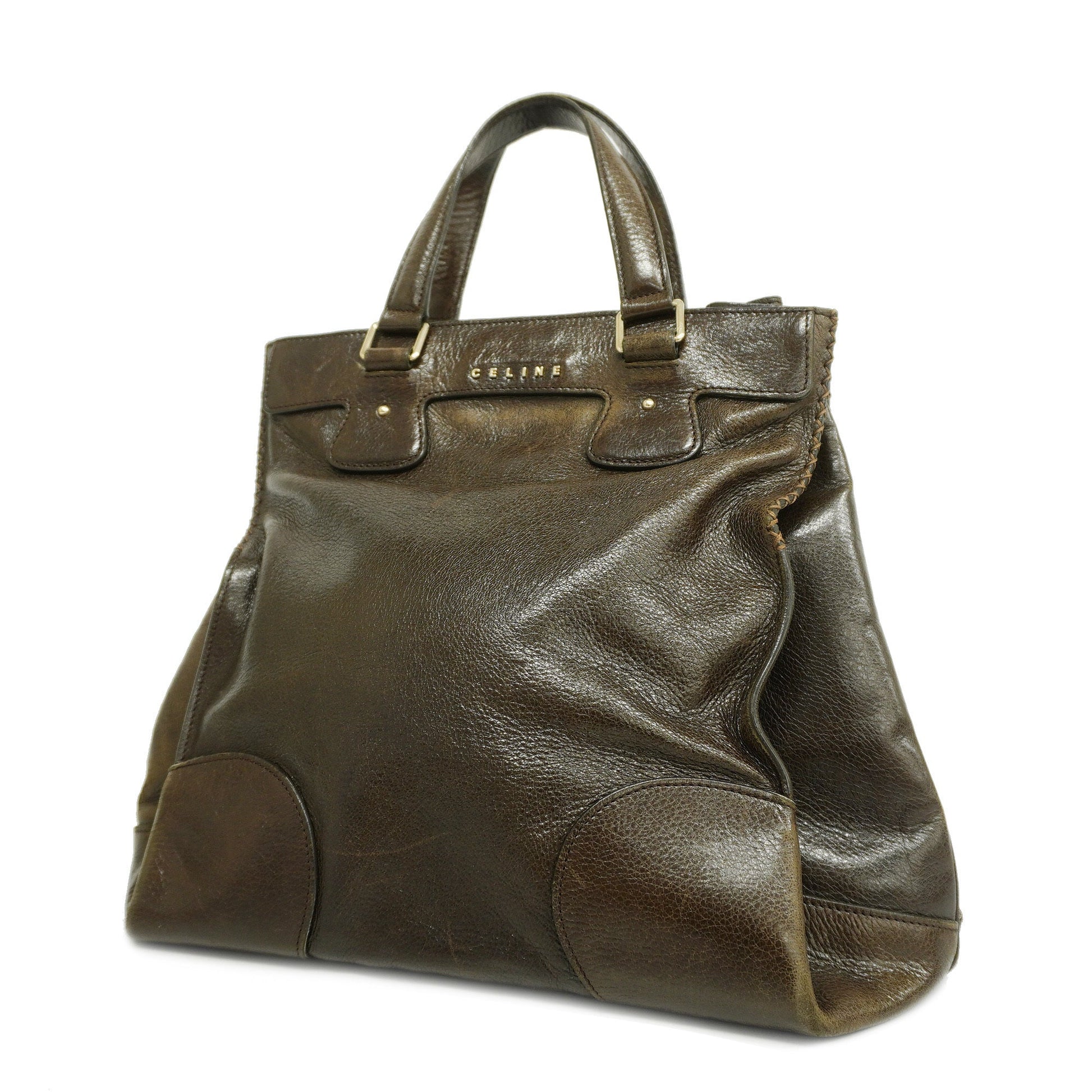 Celine[3cc2365] tote bag leather dark brown gold metal