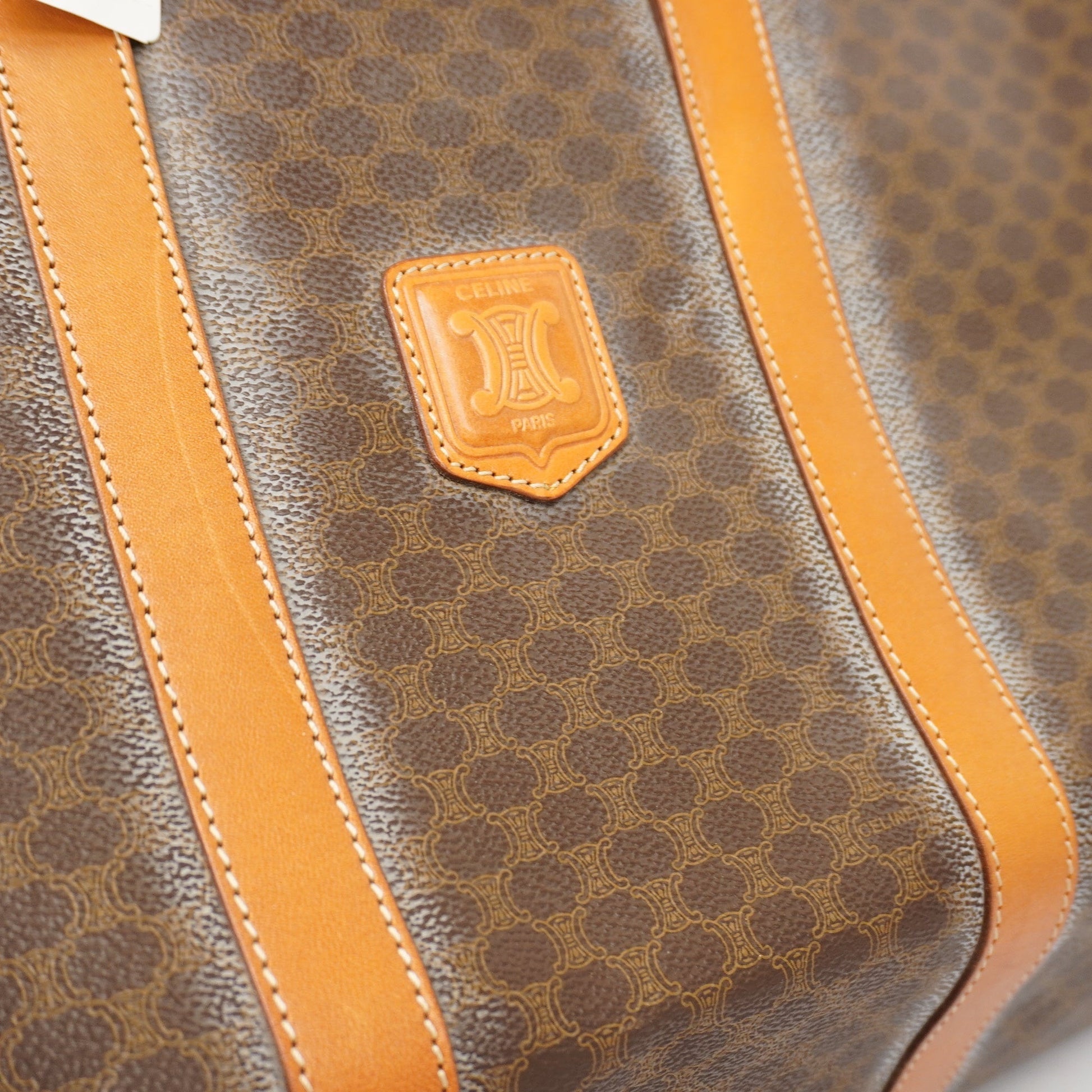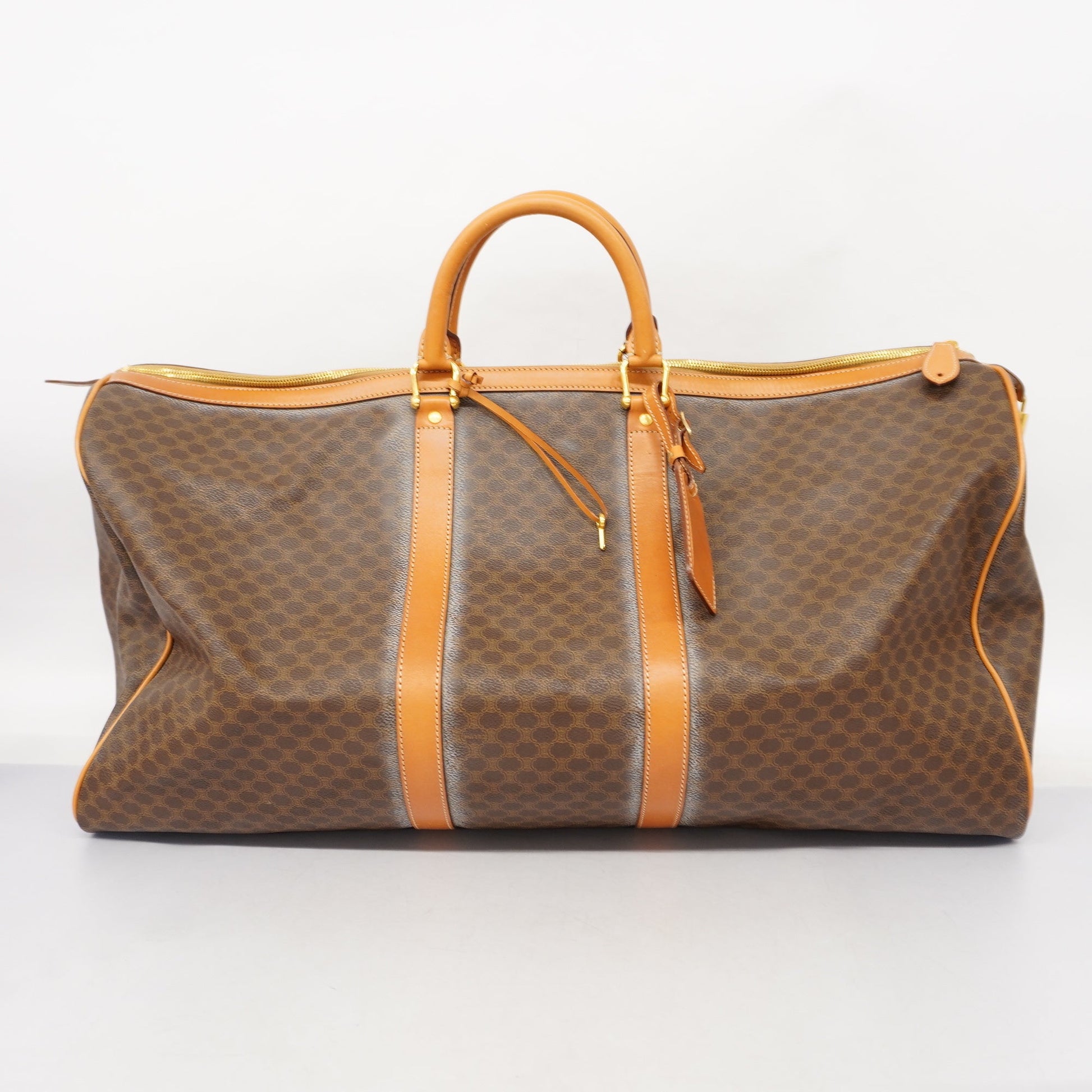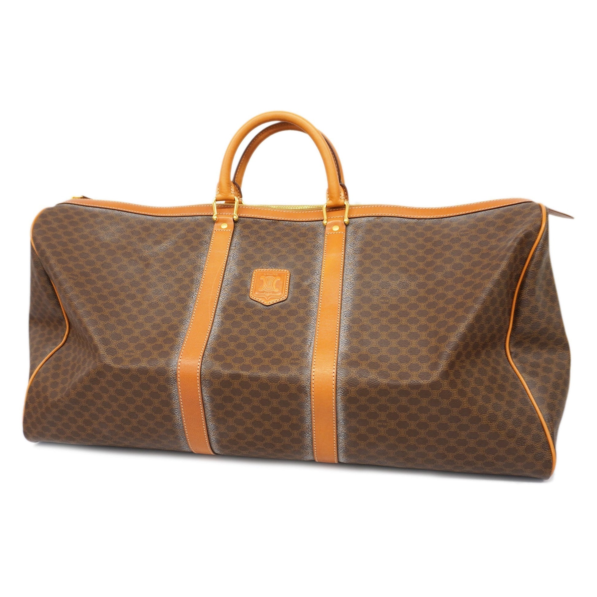 Celine Macadam Boston Bag Men,Women,Unisex PVC,Leather Brown