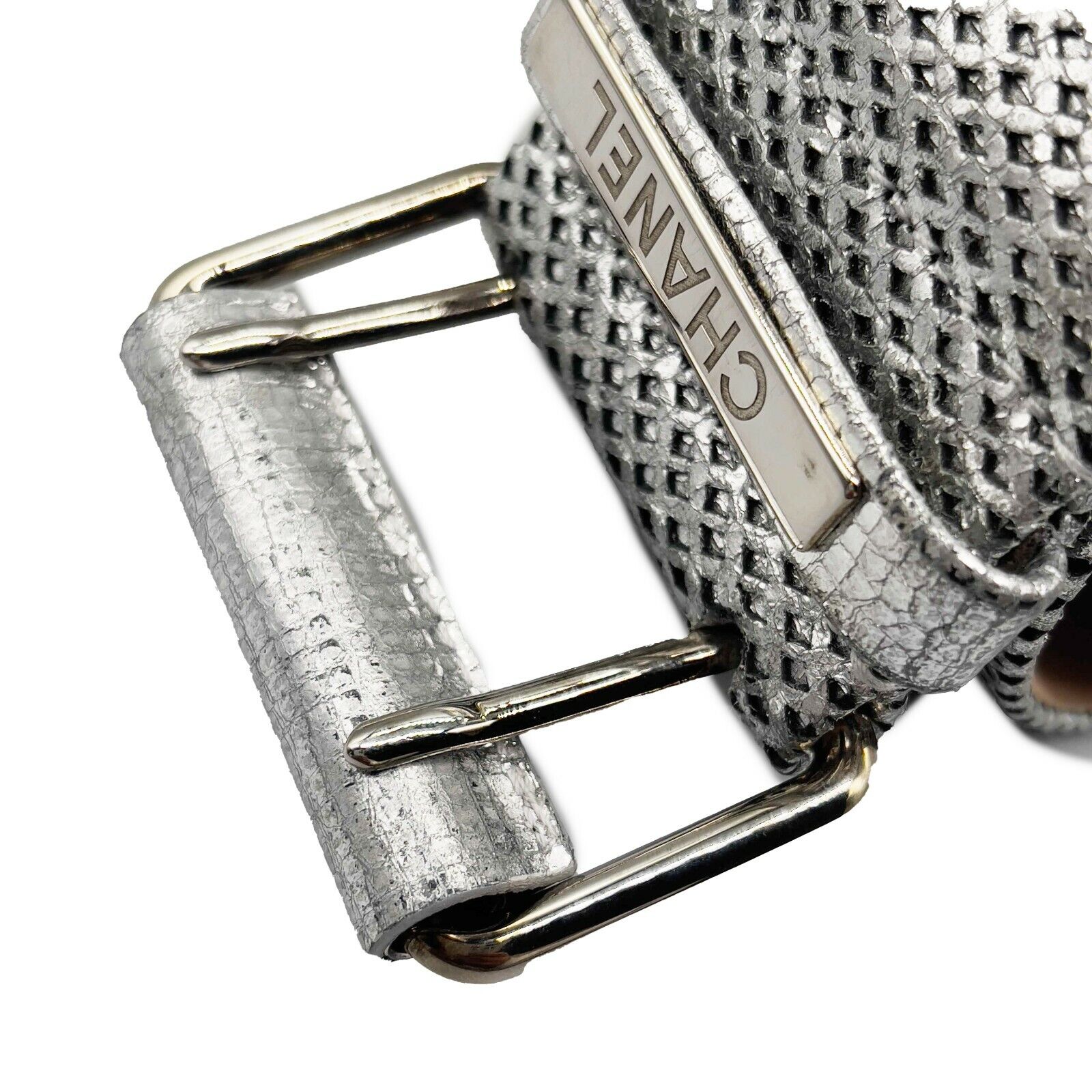 CHANEL - 08P Belt - Metallic Silver Diamond Perforated Logo Stamped - 80/32