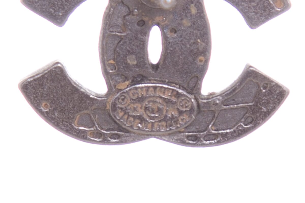 Chanel '13 CC Globe Gunmetal Earrings. This item is in very good condition.