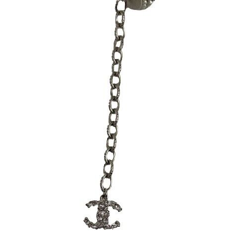 CHANEL - 17K CC Rhinestone Crystal Choker Necklace - Black / Silver